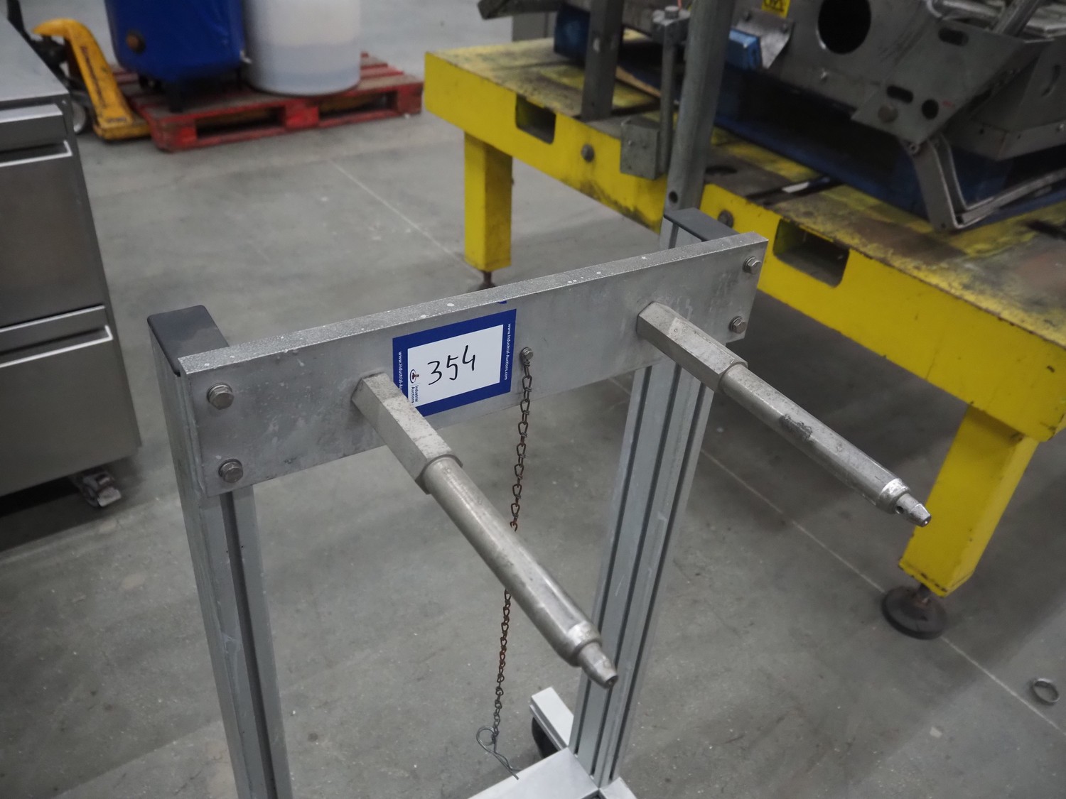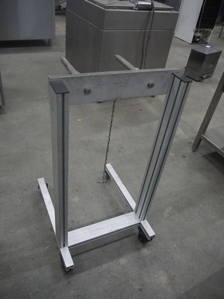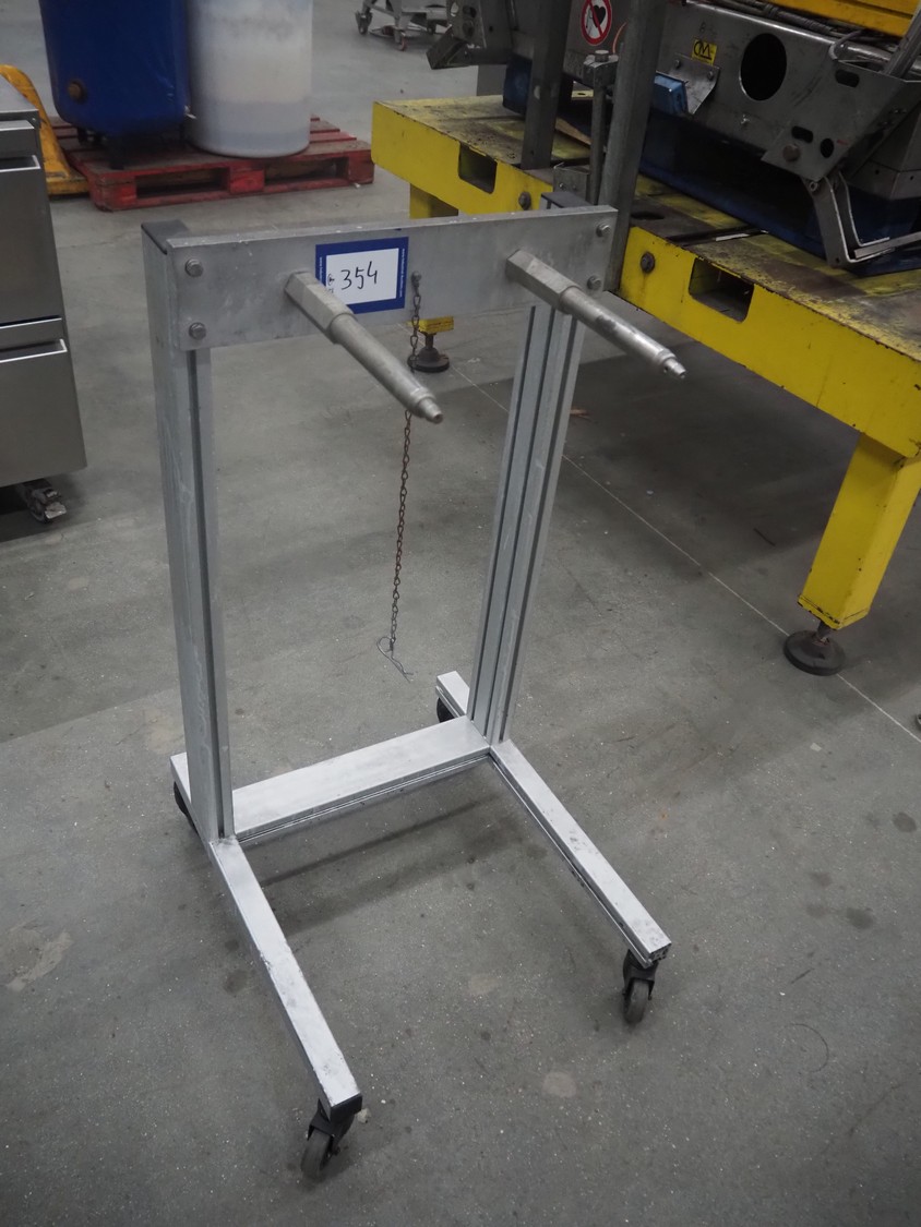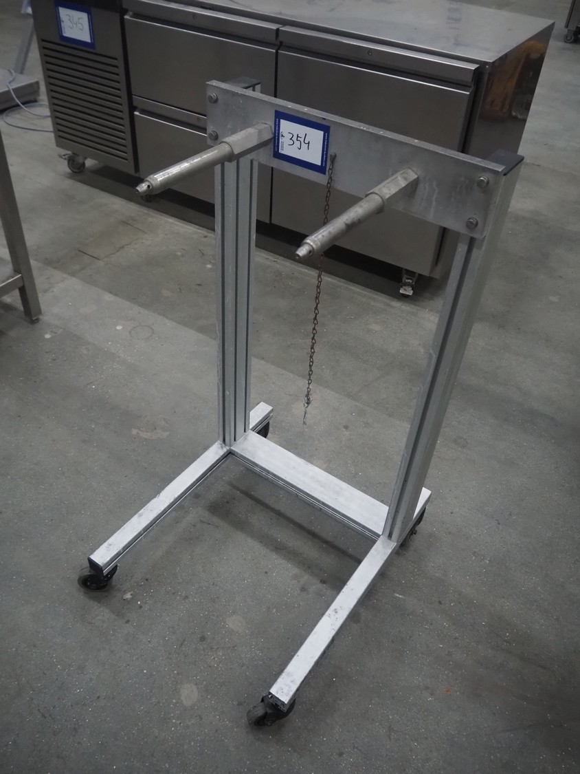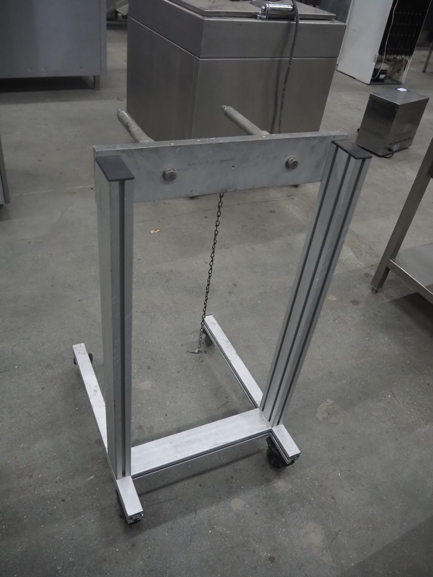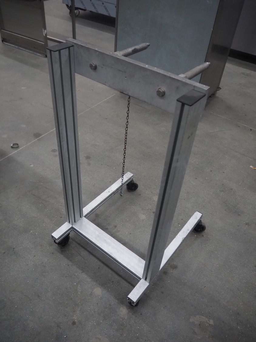 Mobile film roll holder, arm length: 280 mm, total dimensions: 630 mm x 500 mm x 980 mm.