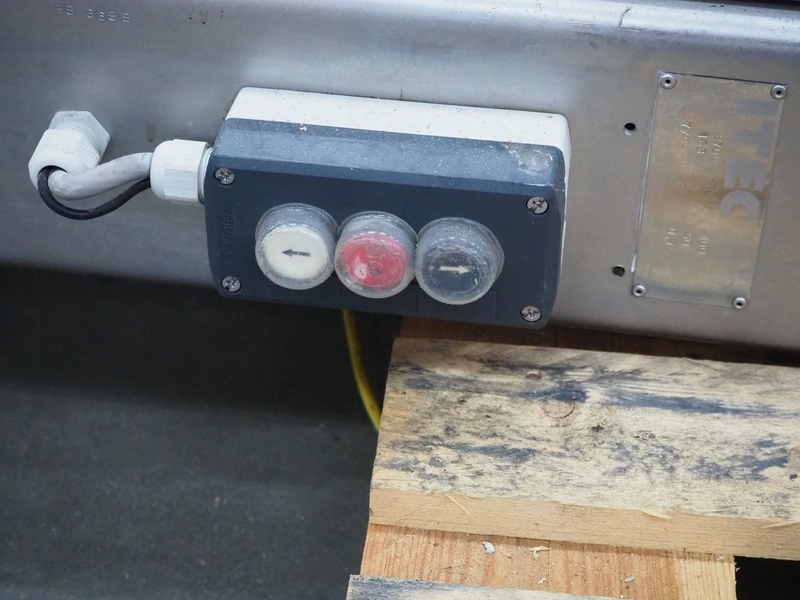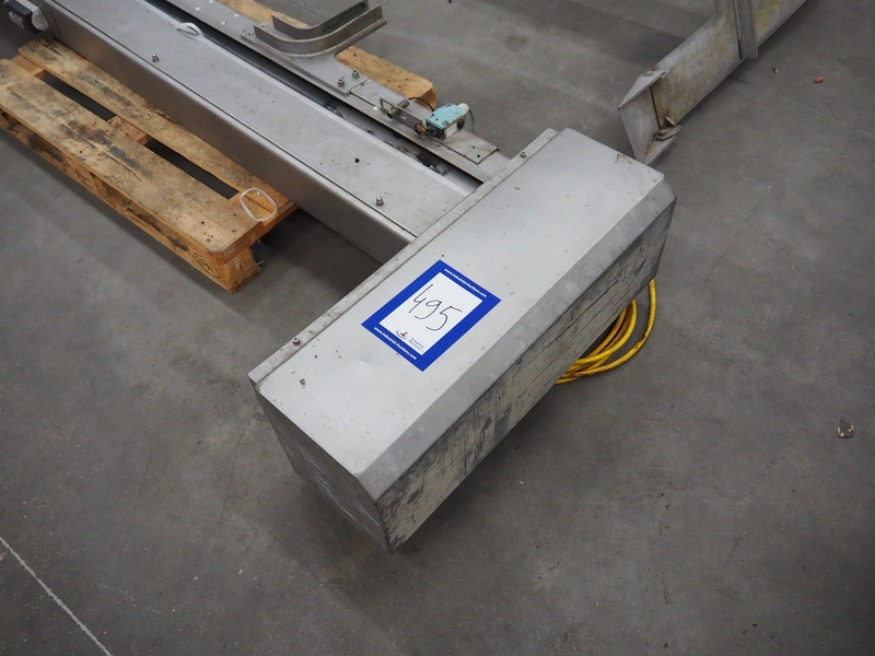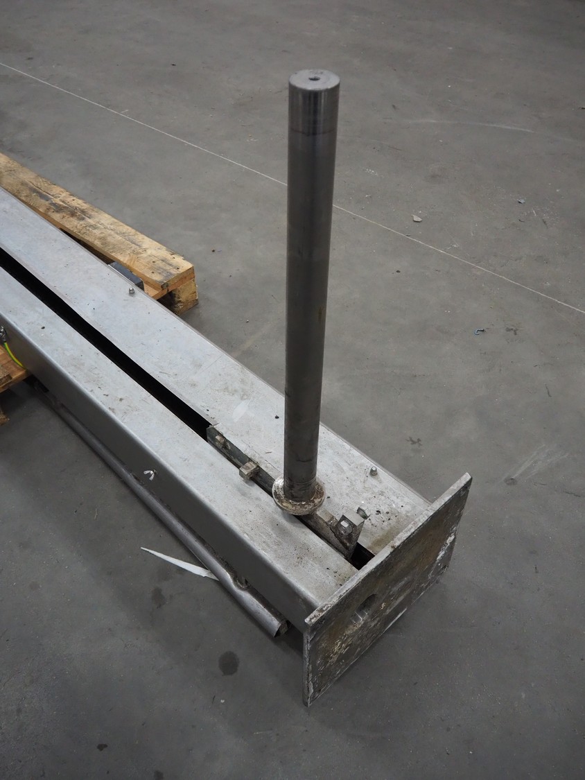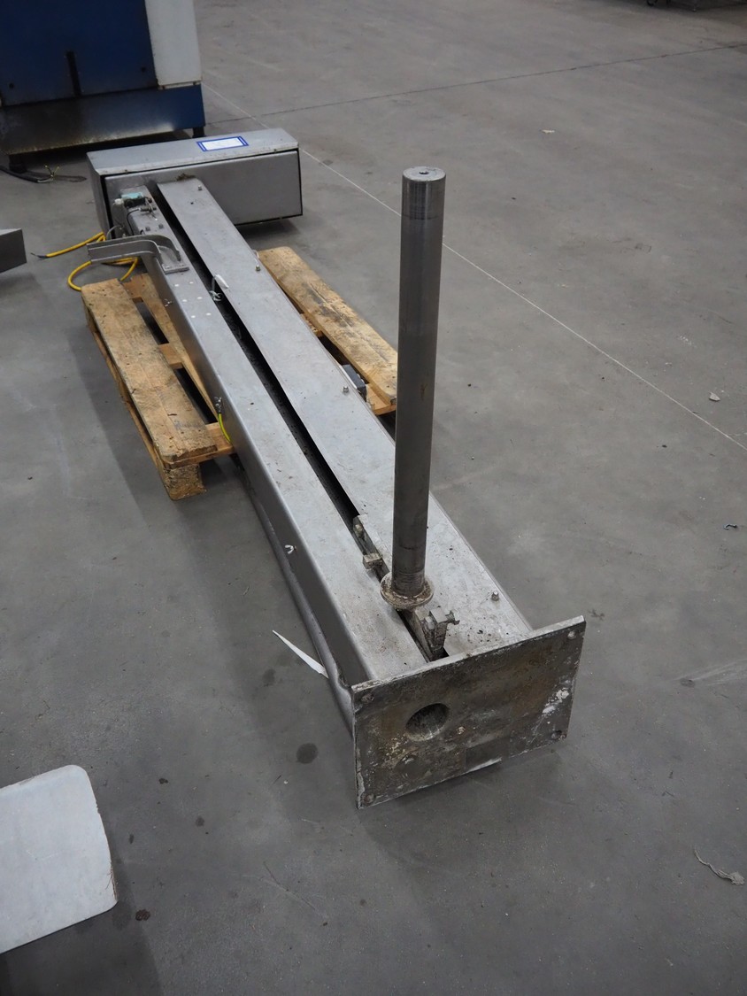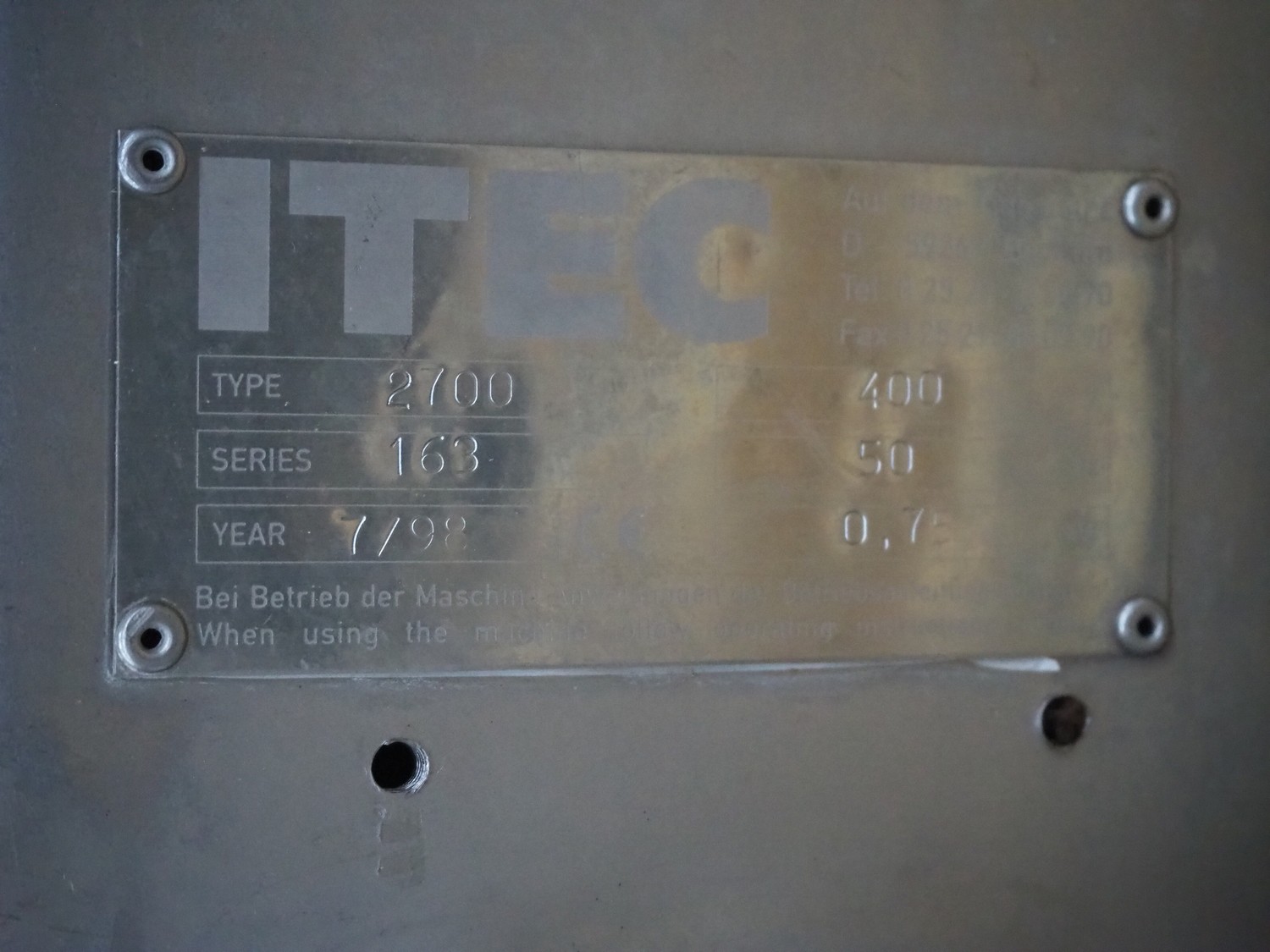 Itec lifter for 200 liter meat bins, type: 2700, series: 163, year of construction: 7/98, 400 V, 50 Hz, lifting height: 2130 mm, total dimensions: 3150 mm x 1000 mm x 1150 mm. Incomplete.