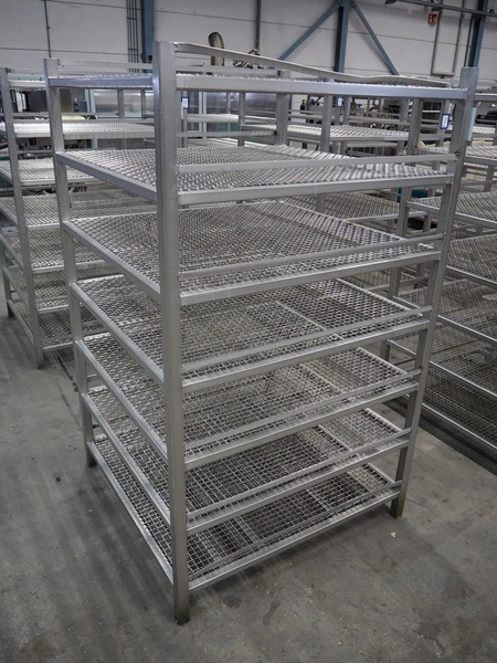 7 s/s racks, 7 floors, floor dimensions: 1550 mm x 1030 mm, total dimensions: (7x) 1070 mm x 1040 mm x 1770 mm.