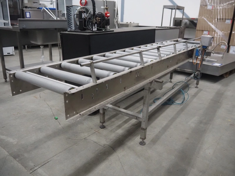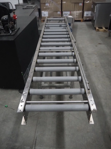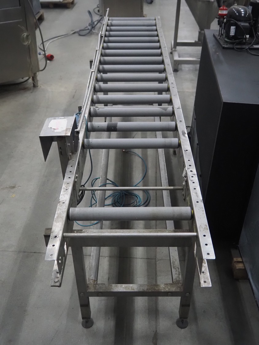 S/s roller conveyor, plastic rollers, roller width: 450 mm, total dimensions: 3100 mm x 660 mm x 900 mm.
