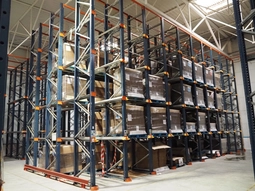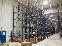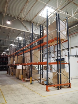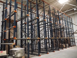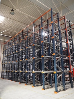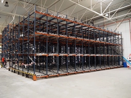 Mecalux drive-in steel pallet rack system, 10 lanes, 5 levels, lane width: 1200 mm, depth: 6000 mm, height uprights: 7750 mm.€ 2.000,000 bids06/11/2025 14:40 -