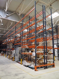 Mecalux drive-in steel pallet rack system, 10 lanes, 5 levels, lane width: 1200 mm, depth: 6000 mm, height uprights: 7750 mm .€ 2.000,000 bids06/11/2025 14:40 -