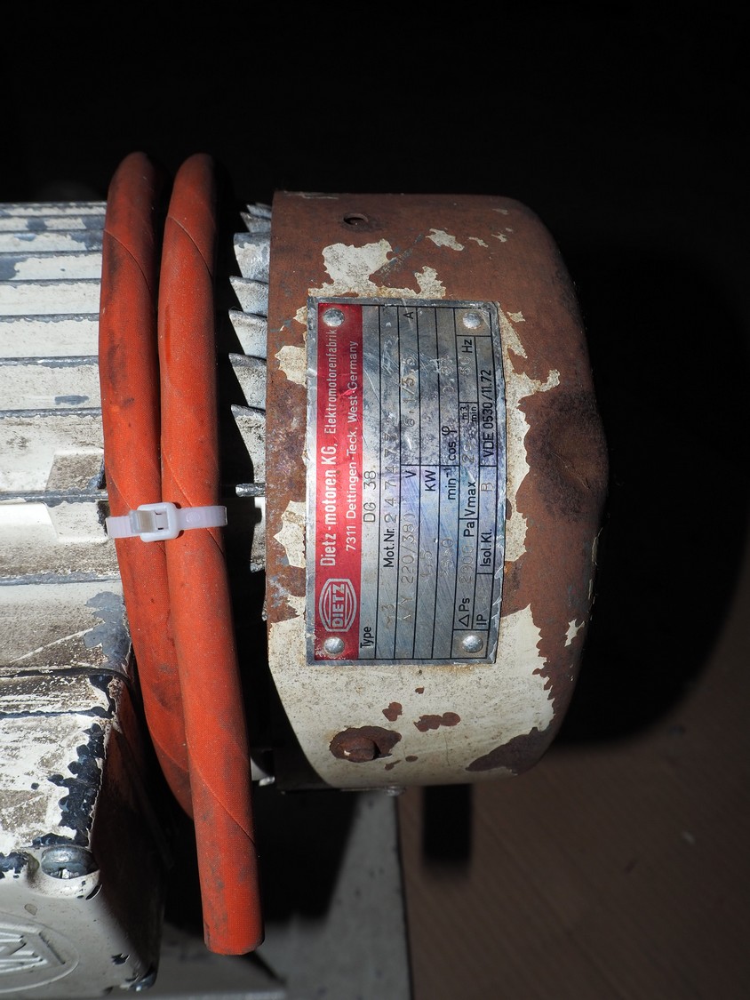 Blower and 2 air filters, dimensions blower: 800 mm x 400 mm x 570 mm, dimensions filters: (2x) Ø 320 mm x 670 mm.