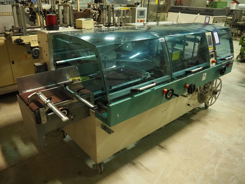 Hugo Beck flowpacker, type: Standard 500 S, serial number: 14 733, year of construction: 04/2008, 400 V, 50 Hz, 5 A, 3 kW, film width: 420 mm, seal width: 480 mm, plastic belt, belt width: 380 mm, total dimensions: 3050 mm x 1500 mm x 1500 mm.