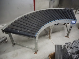 45° curved roller conveyor, steel frame, plastic rollers, roller width: 600 mm, total dimensions: 2050 mm x 900 mm x 630 mm.0 bidsLot is closed -