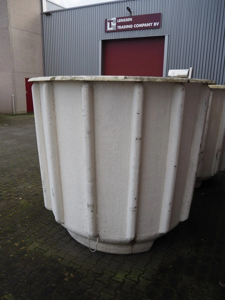 2 plastic tubs with drains, inside dimensions: (2x) 2450 mm x 2450 mm x 2000 mm, total dimensions: (2x) 2455 mm x 2455 mm x 2180 mm.