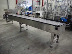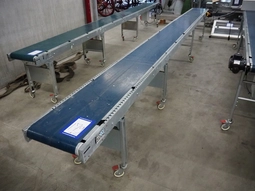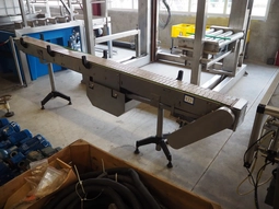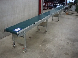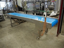Mobile transport belt, s/s frame, plastic belt, belt width: 410 mm, total dimensions: 5950 mm x 1250 mm x 2600 mm.0 bidsLot is closed -
