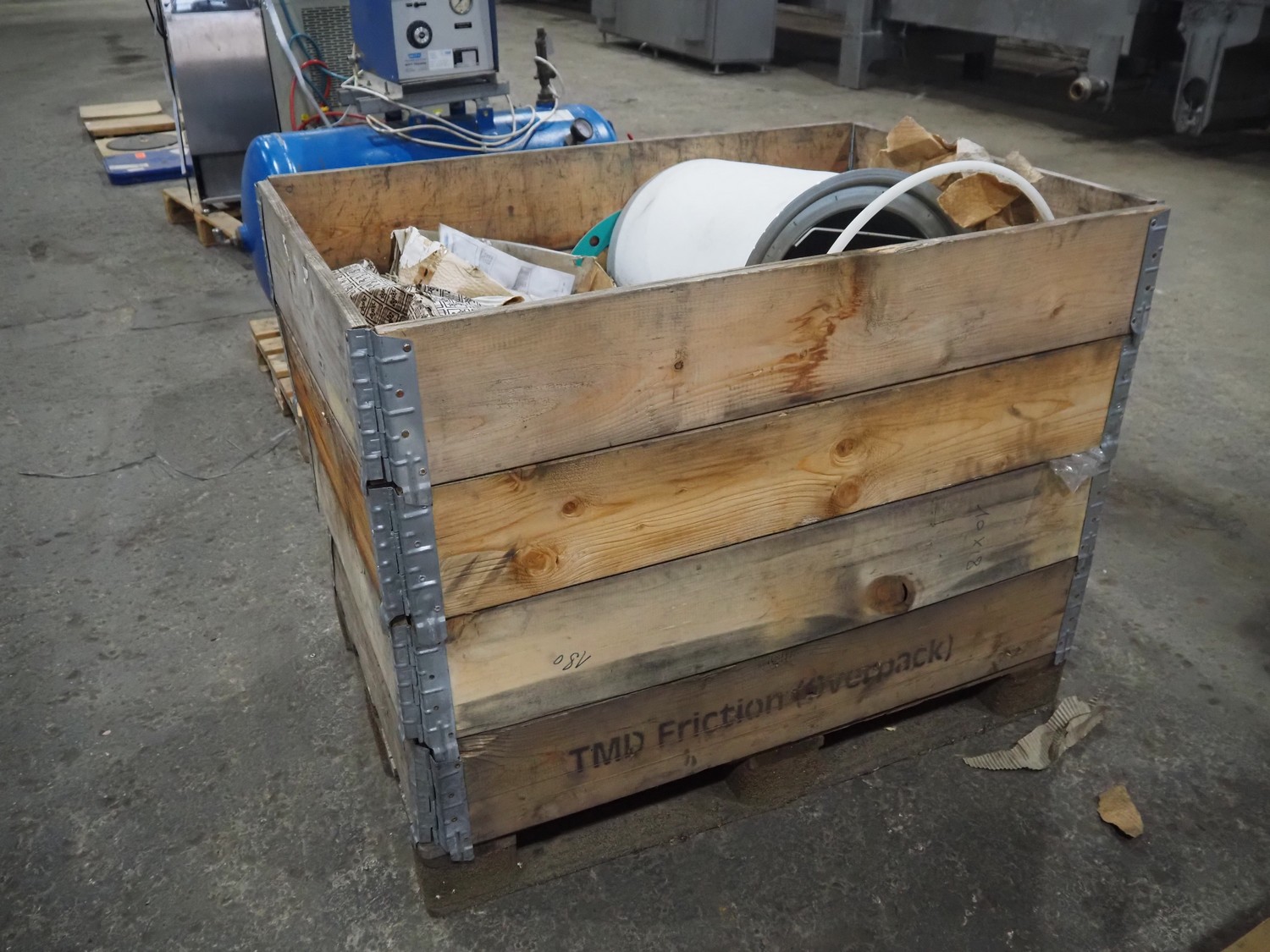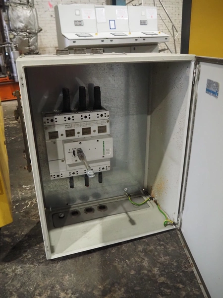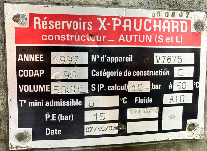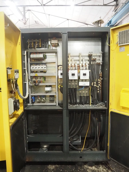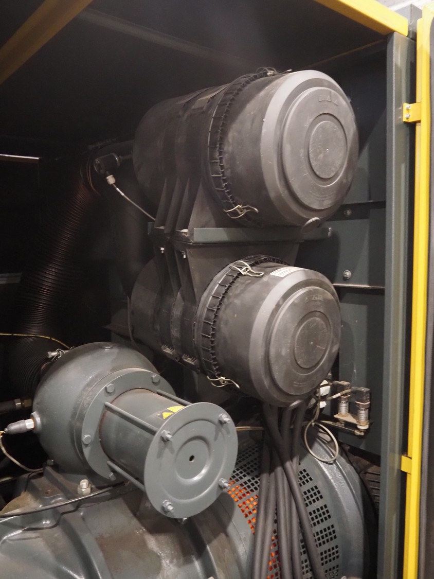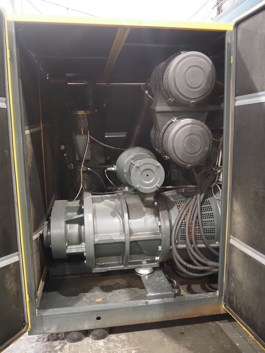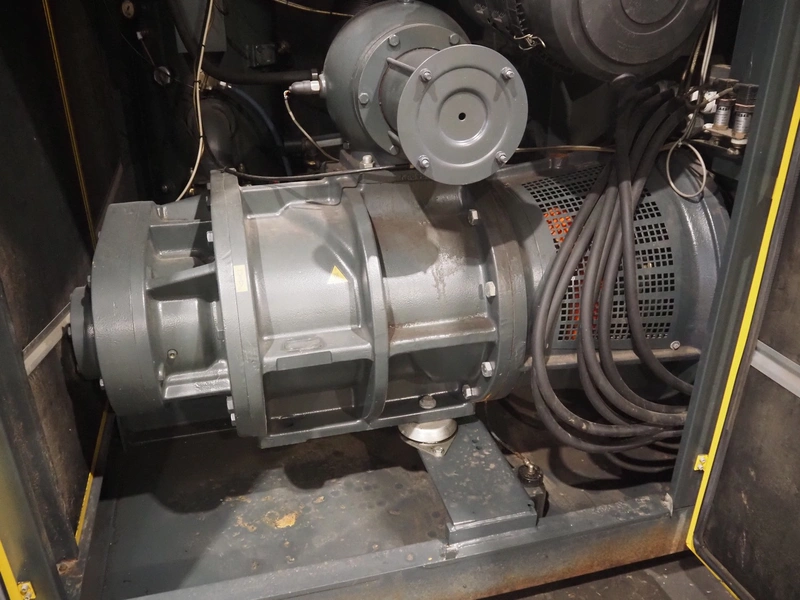 Kaeser kompressoren GmbH screw air compressor, model: ESD 351, serial number: 1073, year of construction: 2007, 400 V, 3 Ph, 50 Hz, 410 A, 200 kW, dimensions: 2650 mm x 2200 mm x 2350 mm. Including steel pressure vessel, number: 136 195, volume: 5000 liter, dimensions: ⌀ 1400 mm x 3900 mm, pallet with parts and switch cabinet, dimensions: 600 mm x 400 mm x 800 mm.