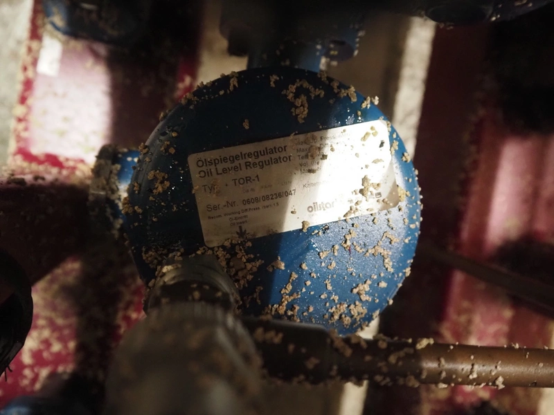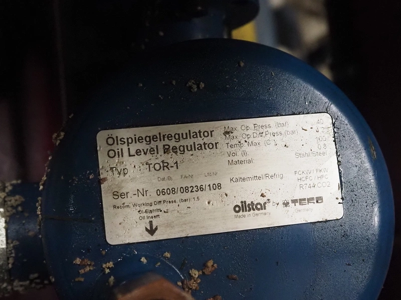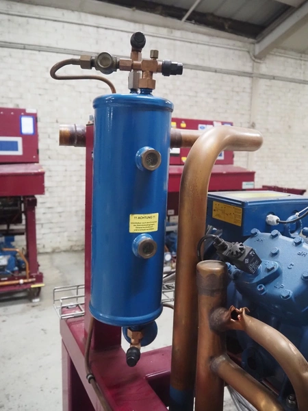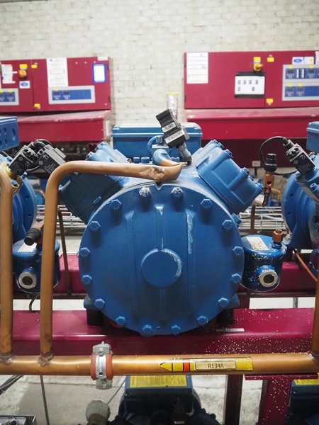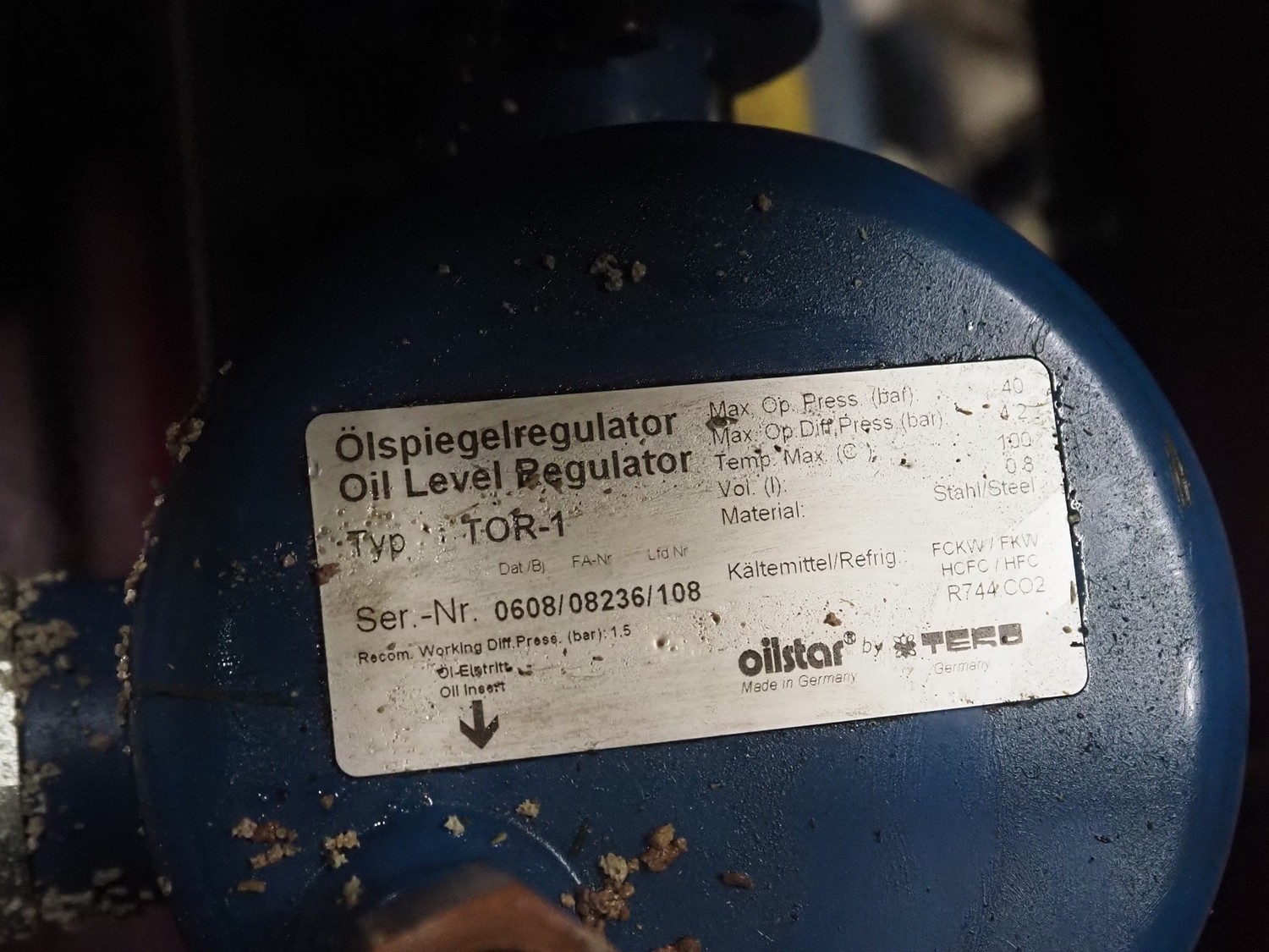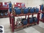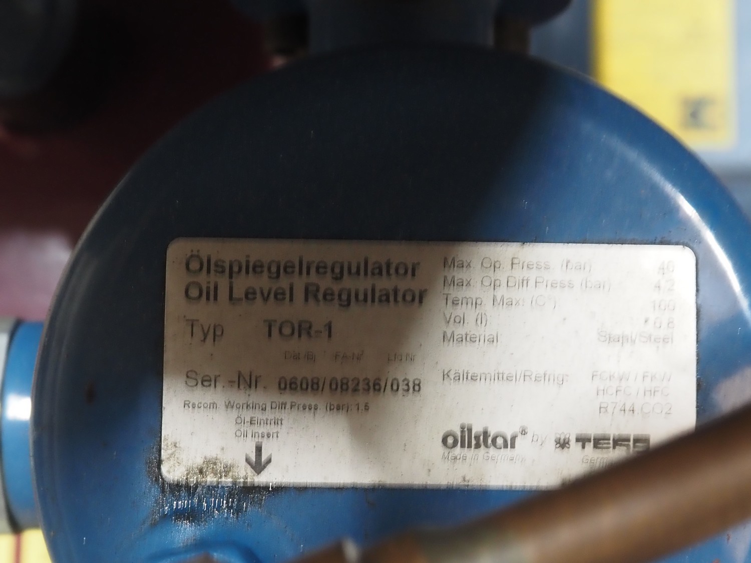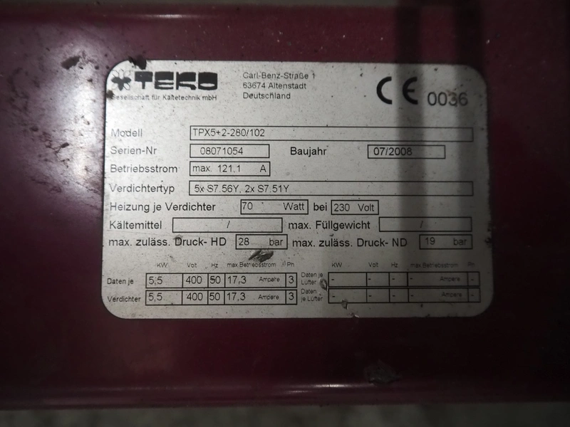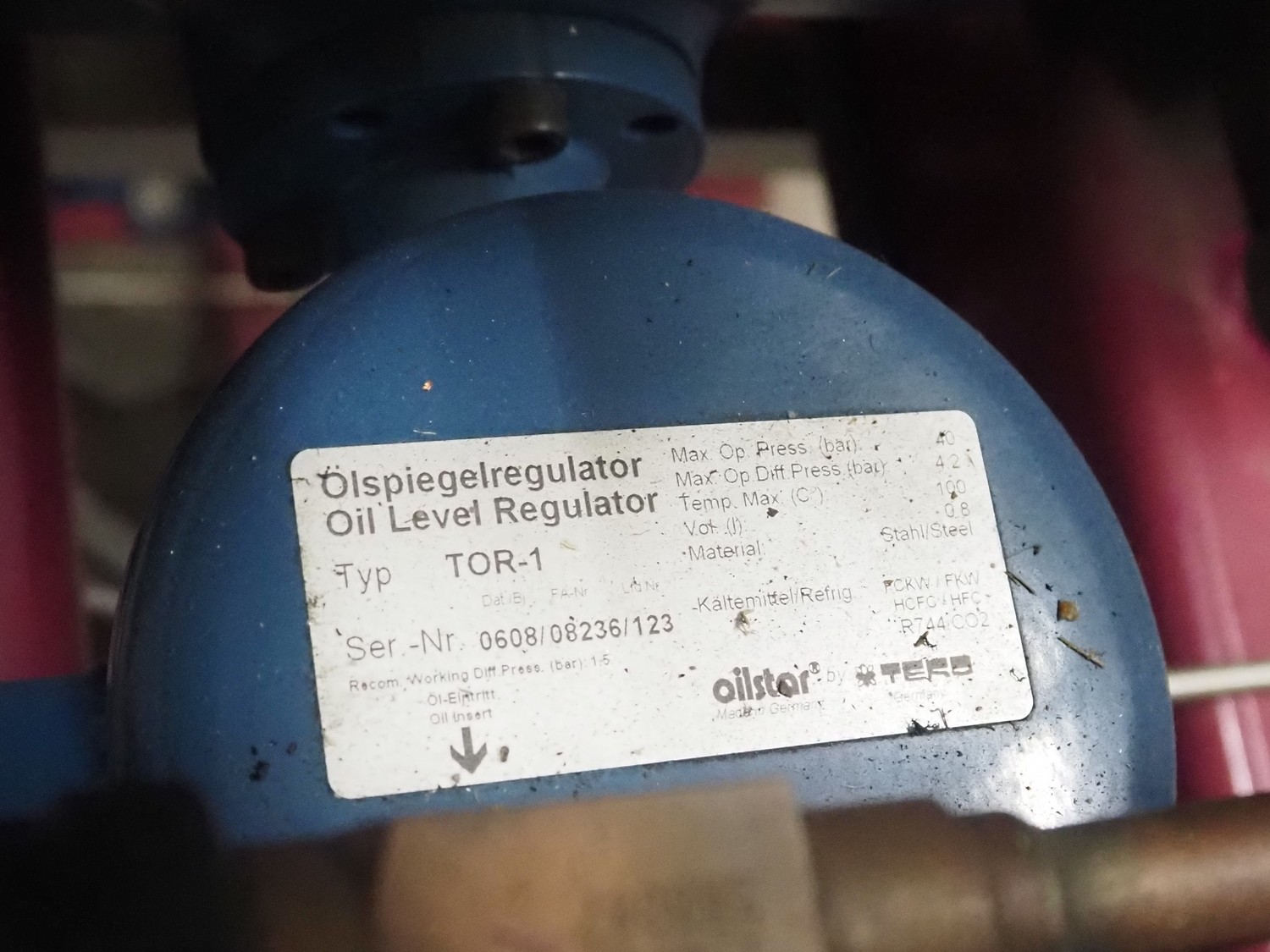 Teko compressor rack with 7 Frascold cooling compressors, type: (4x) S 7 56 Y, capacity: 56/67.2 m³ per hour, (2x) S 7 51 Y, capacity: 50.43/61.51 m³ per hour, (1x) S5-33Y, capacity: 32.8/39.36 m³ per hour, dimensions: 2180 mm x 820 mm x 1720 mm.