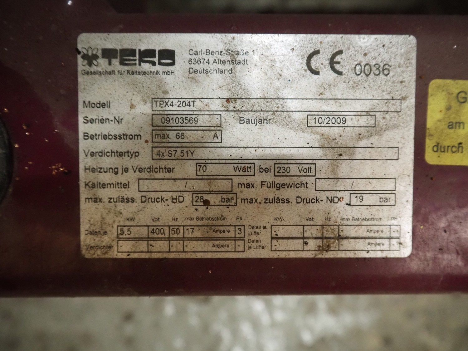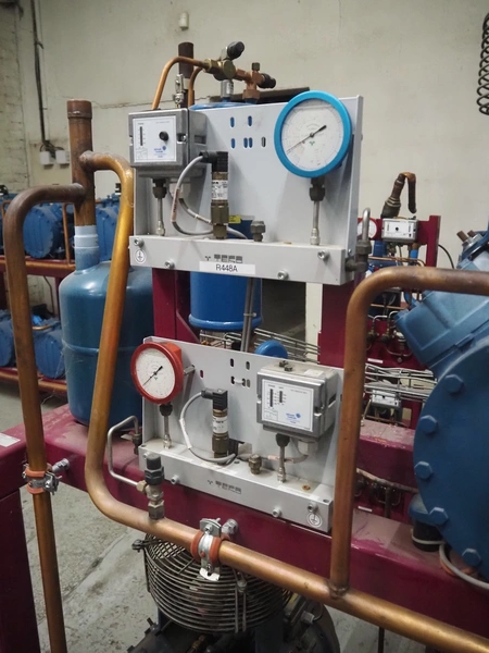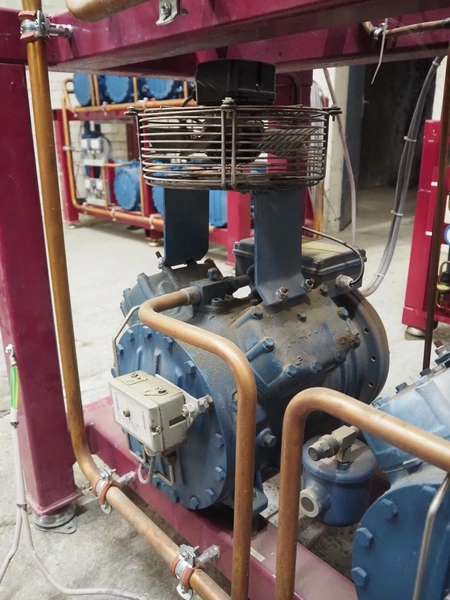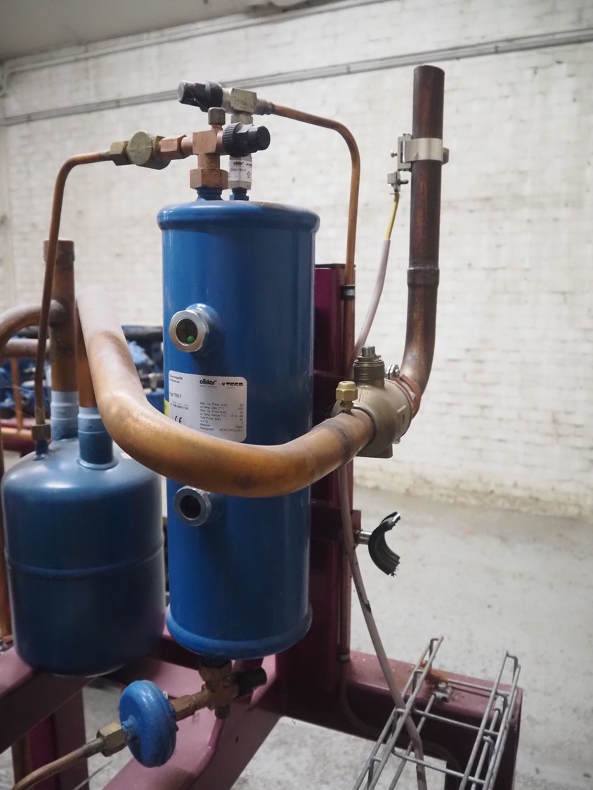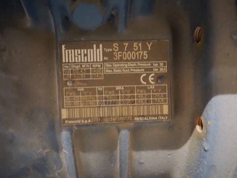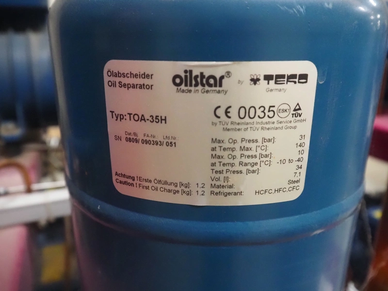 Teko compressor rack with 4 Frascold cooling compressors, type: (4x) S 7 51 Y, capacity: 50.43/61.51 m³ per hour, dimensions: 1650 mm x 810 mm x 1650 mm.