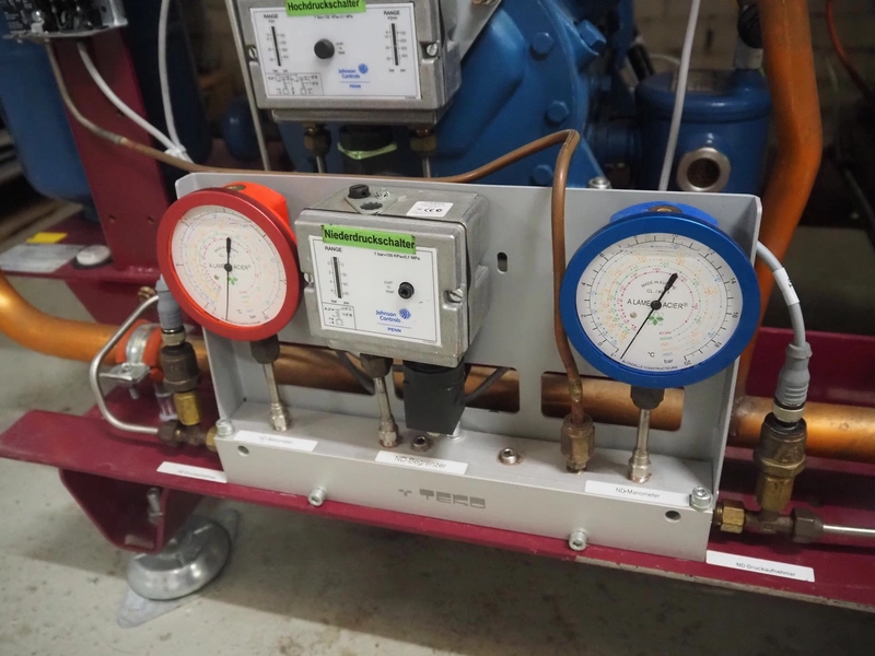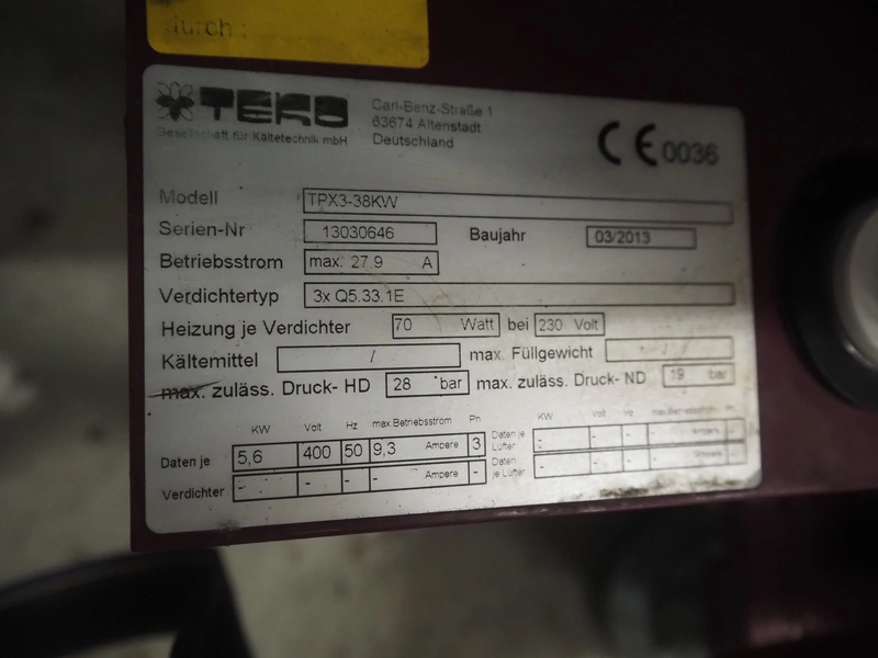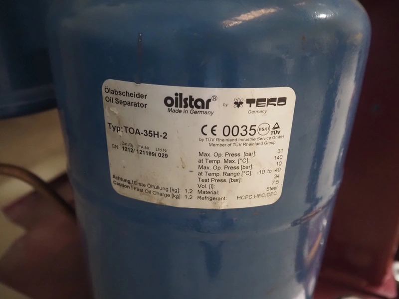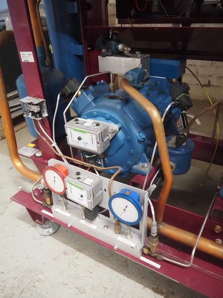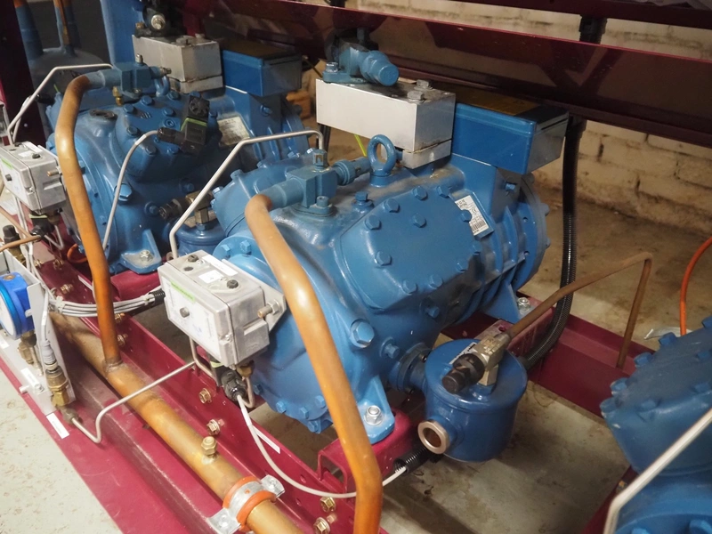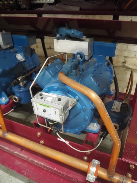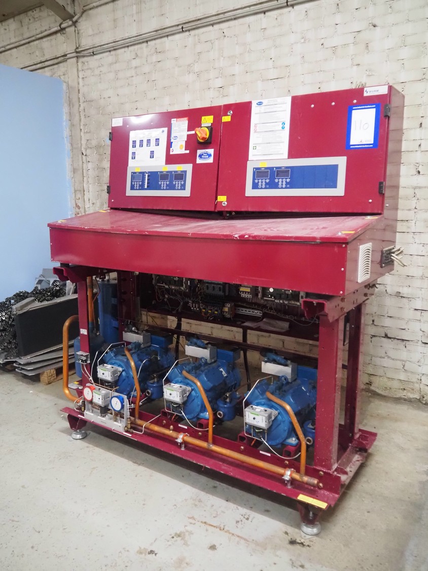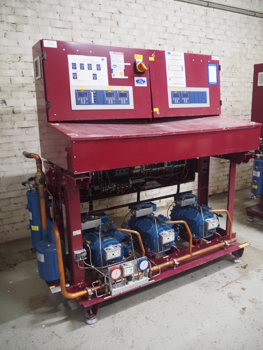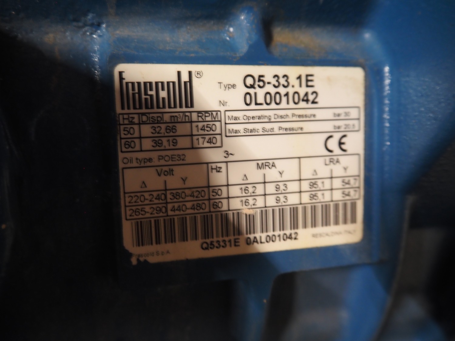 Teko compressor rack with 3 Frascold cooling compressors, type: (3x) Q5-33.1E, capacity: 32.66/39.19 m³ per hour, dimensions: 1650 mm x 810 mm x 1650 mm.