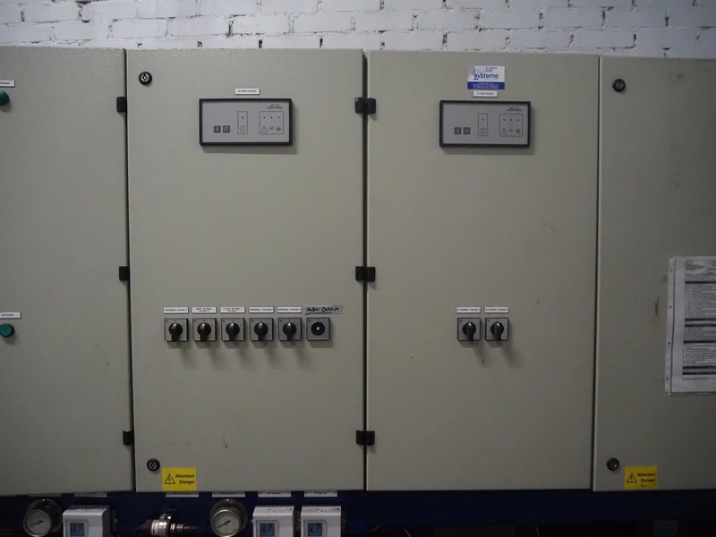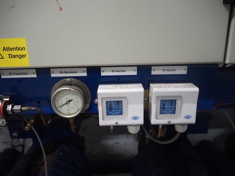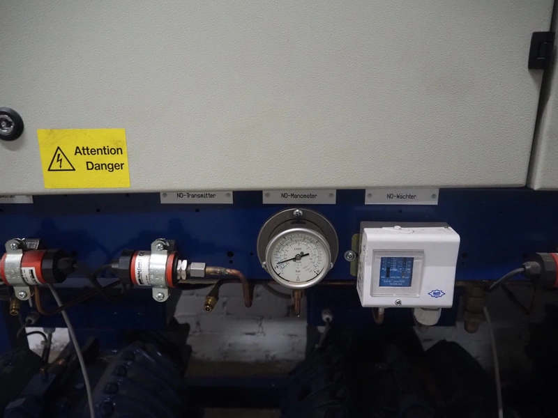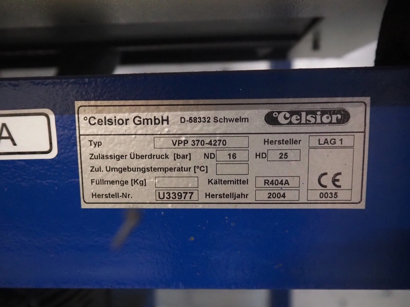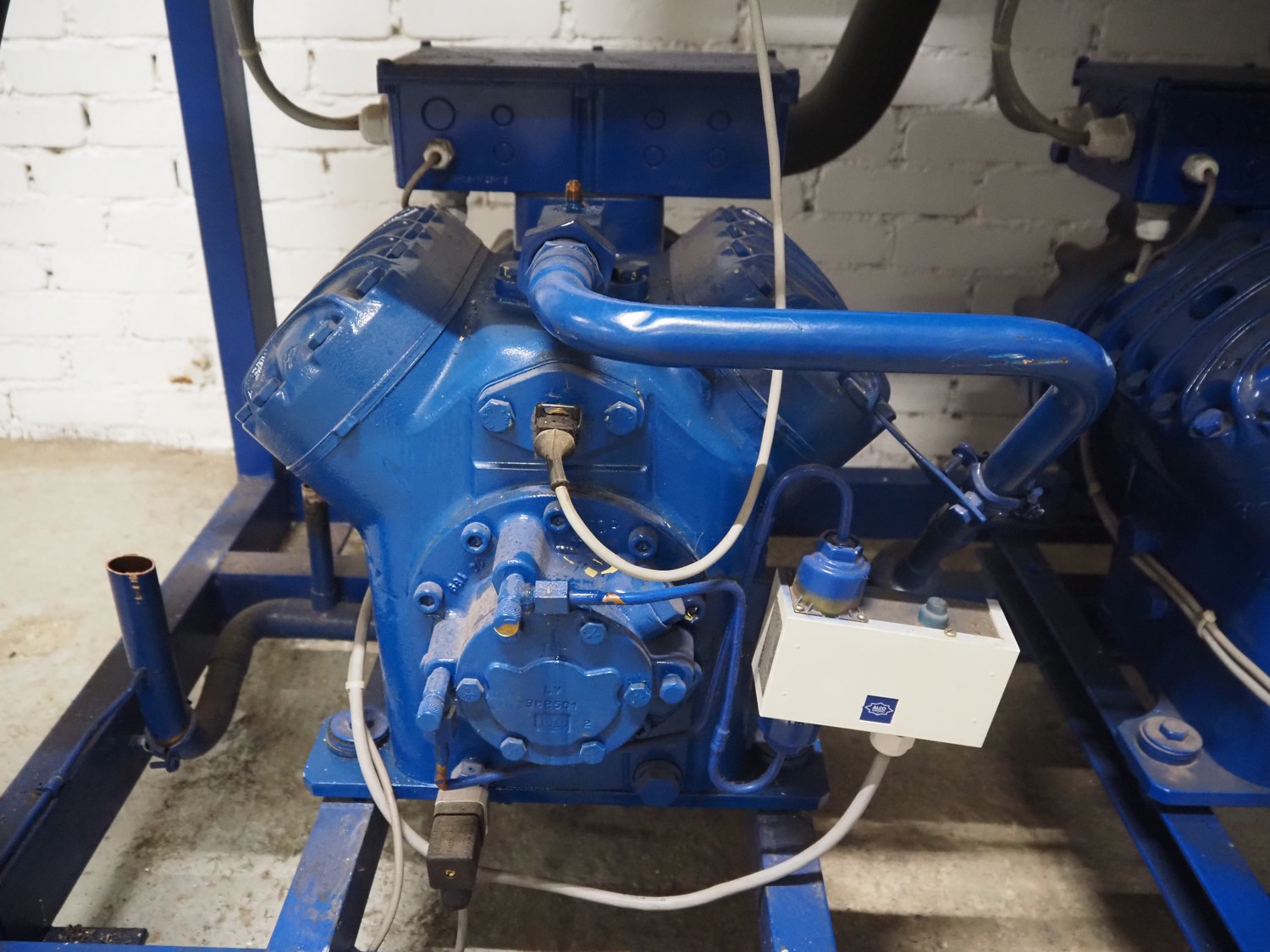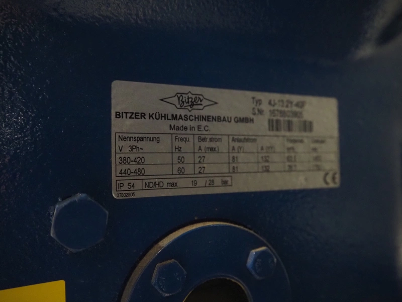 Celsior GmbH compressor rack with 5 Bitzer Kühlmaschinenbau GmbH cooling compressors, type: (3x) 4J-13.2Y-40P, capacity: 63/76,7 m³ per hour and (2x) 4PCS-10.2Y-40P, capacity: 48.5/58,5 m³ per hour, year of construction: 2004, refrigerant: R404A, dimensions: 3100 mm x 820 mm x 2080 mm.