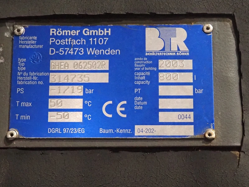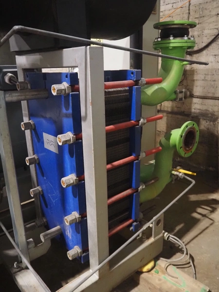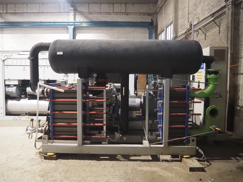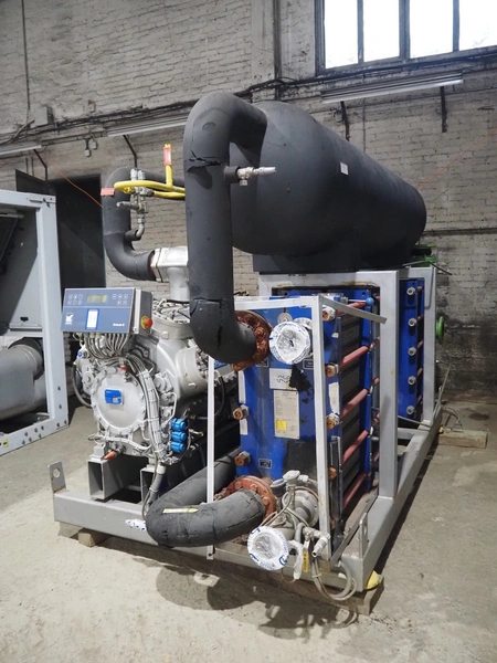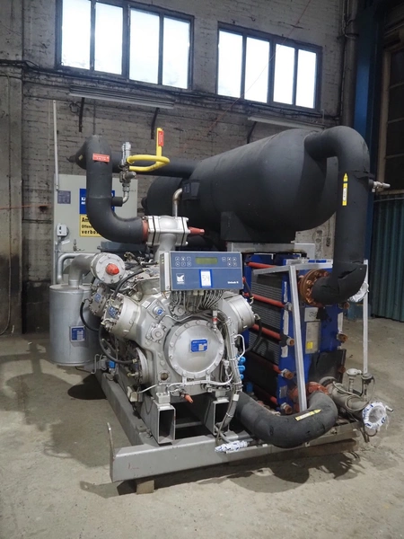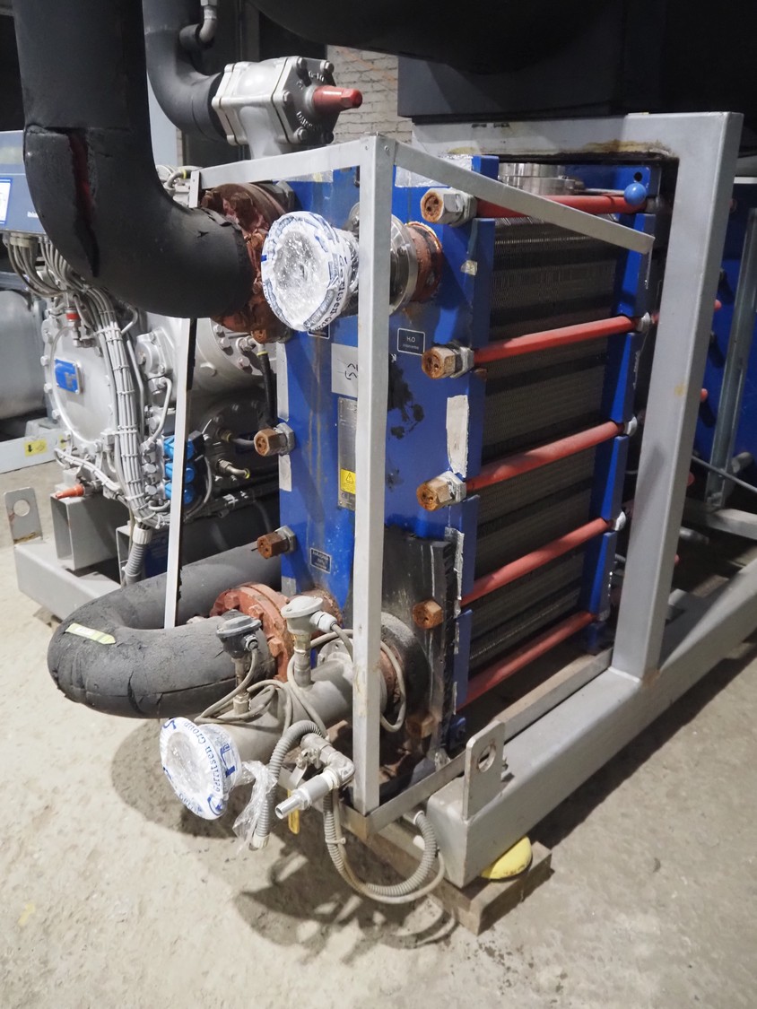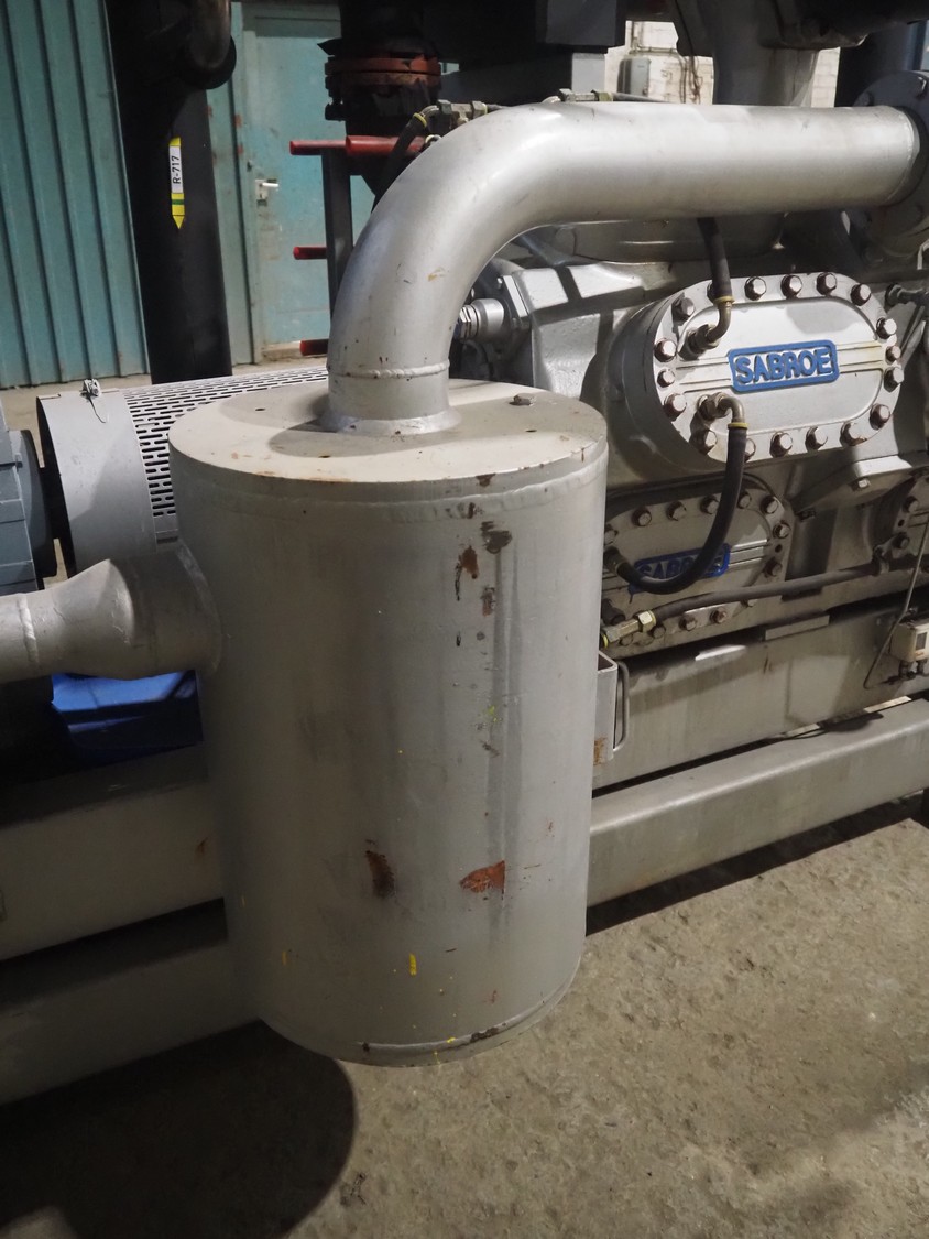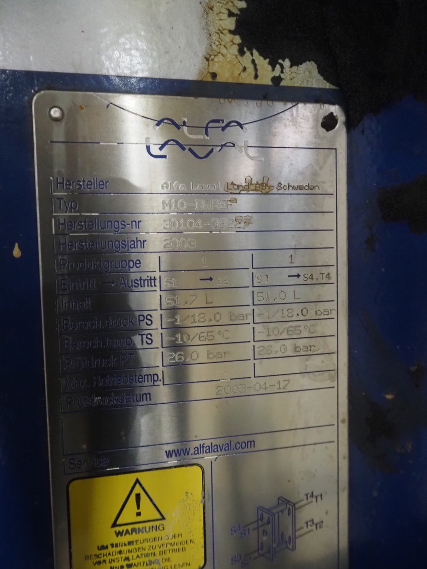 Sabroe reciprocating cooling installation, consisting of Sabroe cooling compressor, type: SMC 116L / R717, number: 123437, year of construction: 2003, 1500 rpm, 1131 m³ per hour, Alfa-Laval plate heat exchanger, type: M10-BWREF, year of construction: 2003, and York refrigerant tank, dimensions: 4400 mm x 2000 mm x 2430 mm. Technical condition unknown.