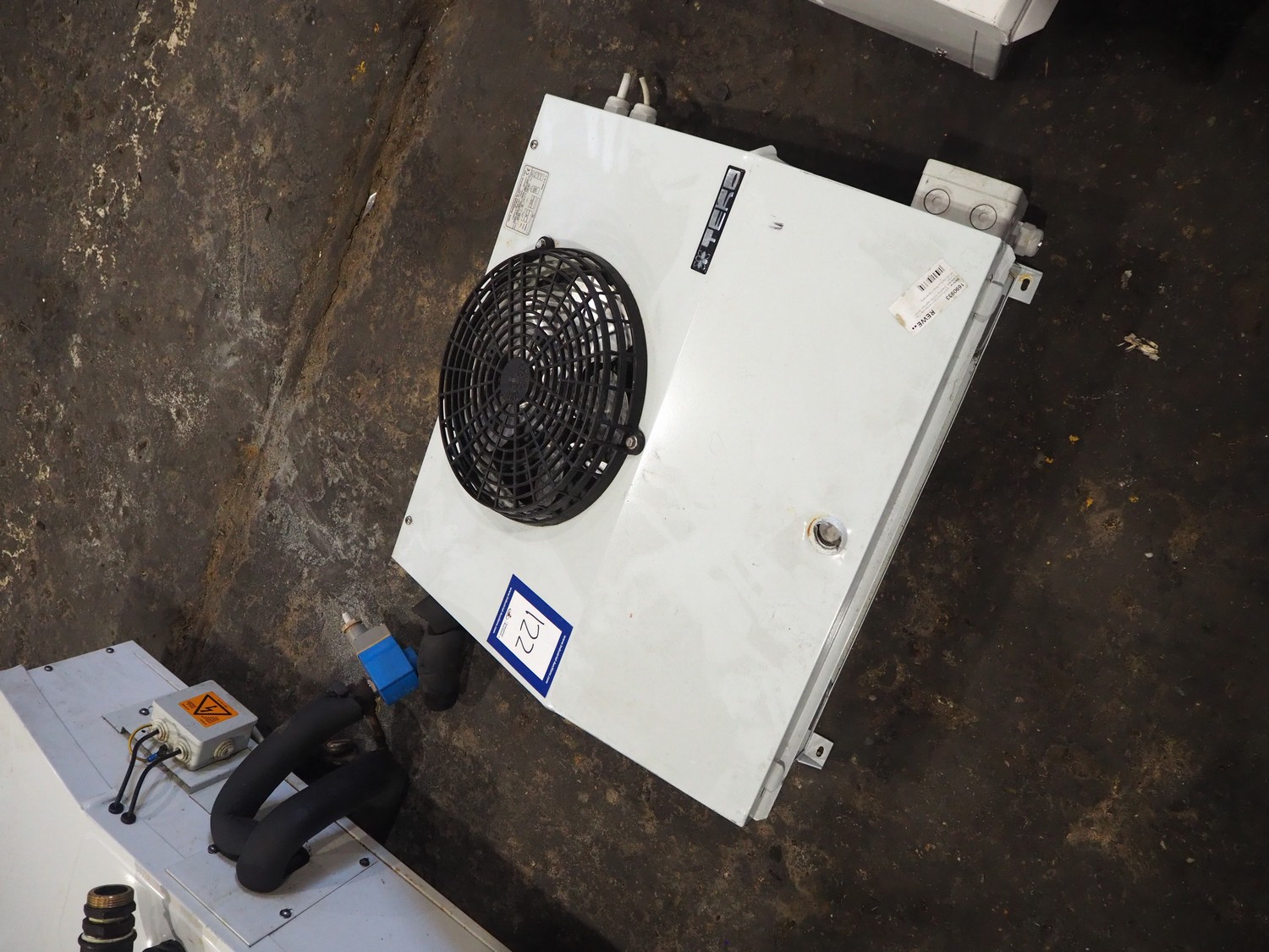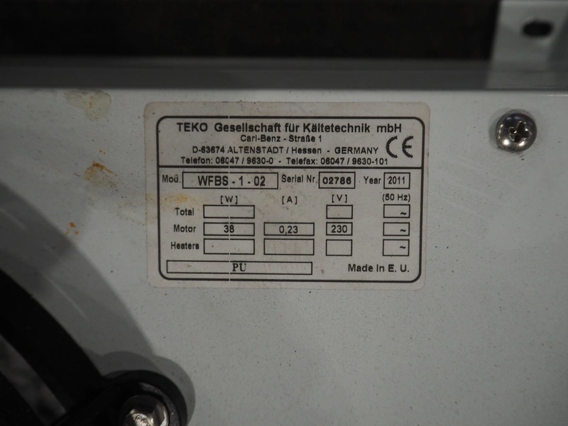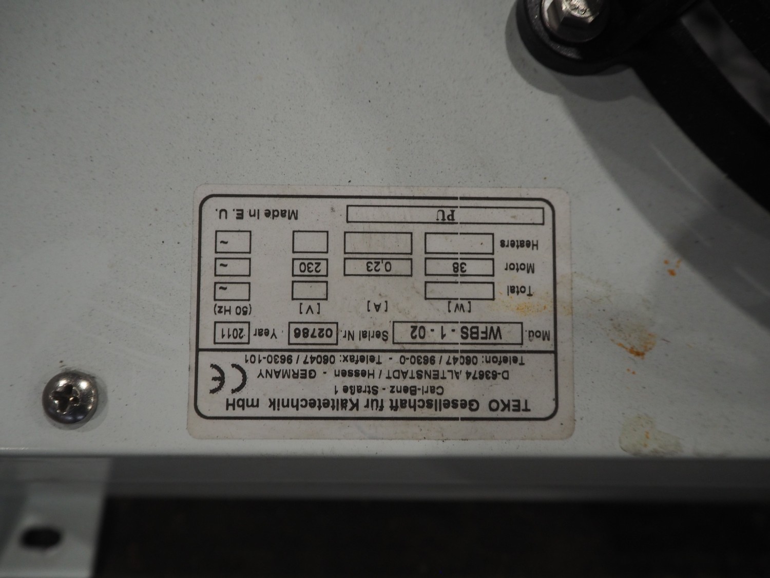 Teko evaporator, model: WFBS-1-02, serial number: 02786, year of construction: 2011, 230 V, 50 Hz, 0.23 A, 38 W, 1 fan, dimensions: 560 mm x 500 mm x 180 mm.