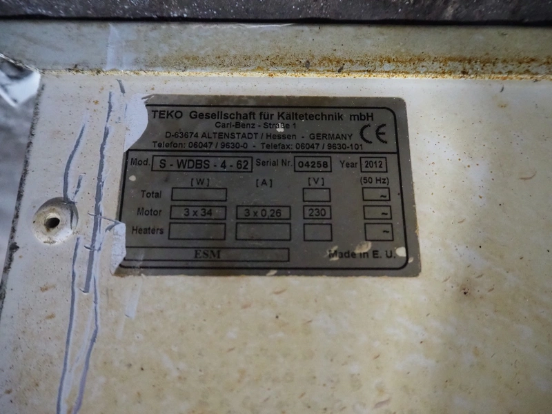Teko evaporator, model: S-WDBS-4-62, serial number: 04258, year of construction: 2012, 230 V, 50 Hz, 3x0.26 A, 3x34 W, 3 fans, dimensions: 1500 mm x 720 mm x 250 mm.