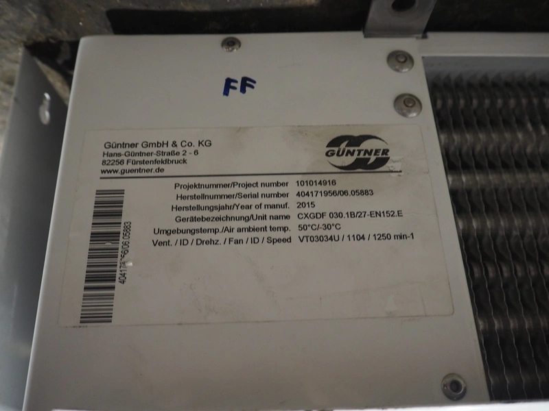 Güntner AG&Co.KG evaporator, type: CXGDF 030.1B/27-EN152.E, serial number: 404171956/06.05883, year of construction: 2015, 2 fans, dimensions: 1650 mm x 550 mm x 300 mm.