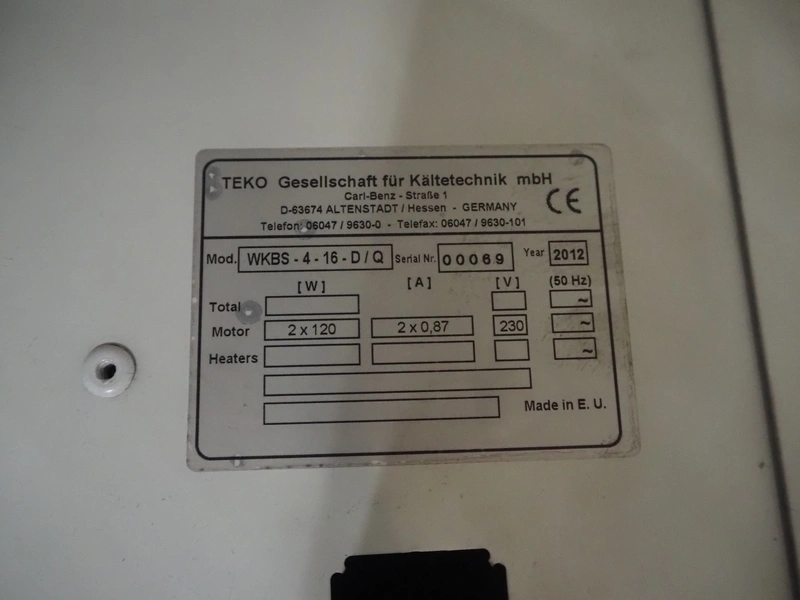 Teko evaporator, model: WKBS-4-16-D/Q, serial number: 00069, year of construction: 2012, 230 V, 2x0.87 A, 2x120 W, 2 fans, dimensions: 1180 mm x 550 mm x 500 mm.