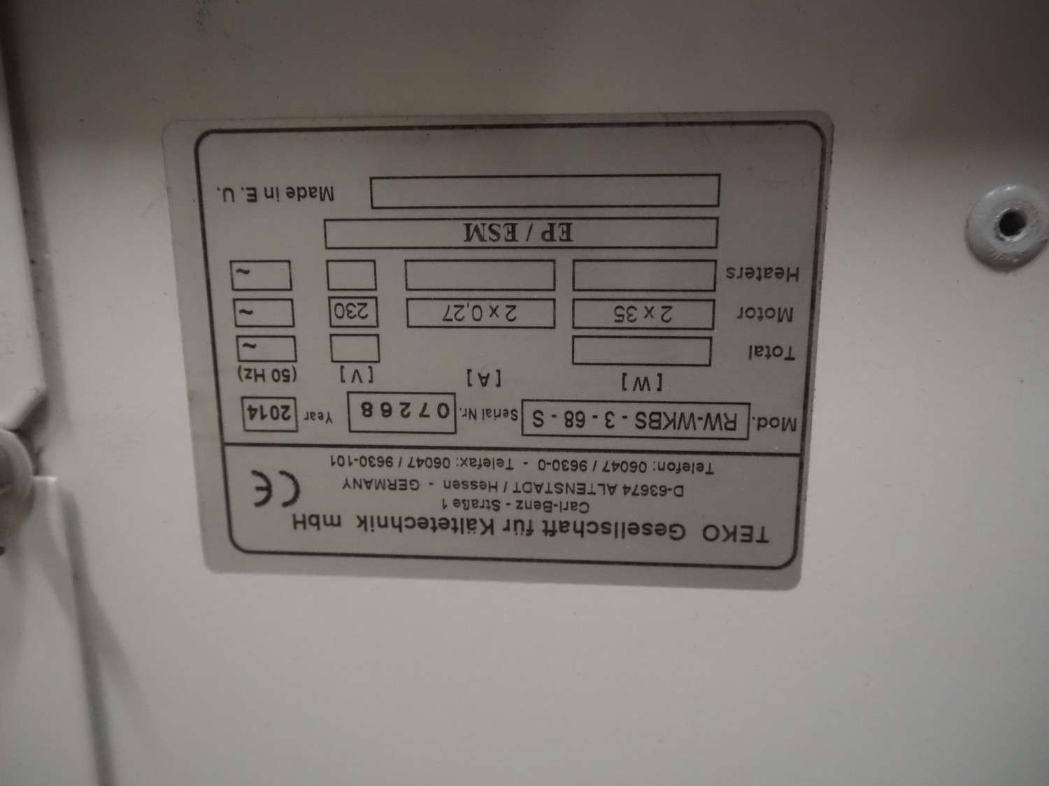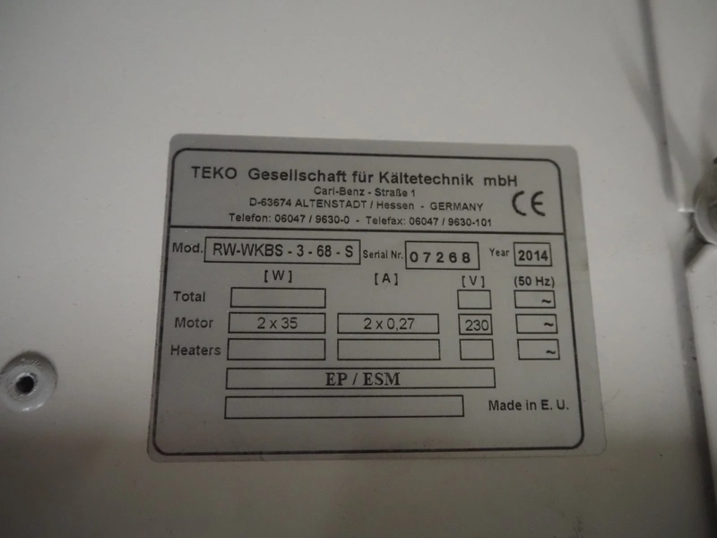 Teko evaporator, model: RW-WKBS- 3-68-S, serial number: 07268, year of construction: 2014, 230 V, 2x0.27 A, 2x35 W, 2 fans, dimensions: 1180 mm x 600 mm x 480 mm.