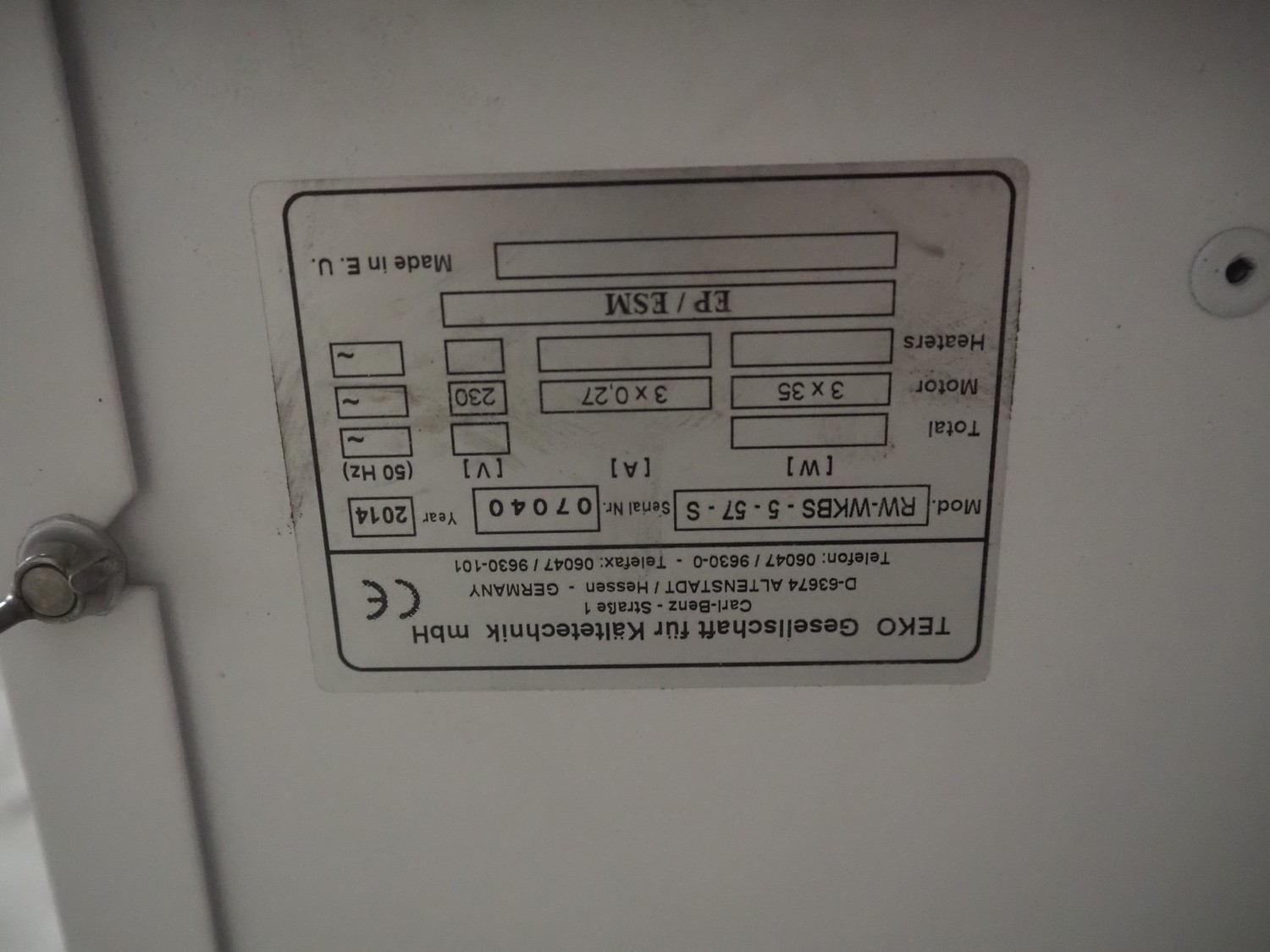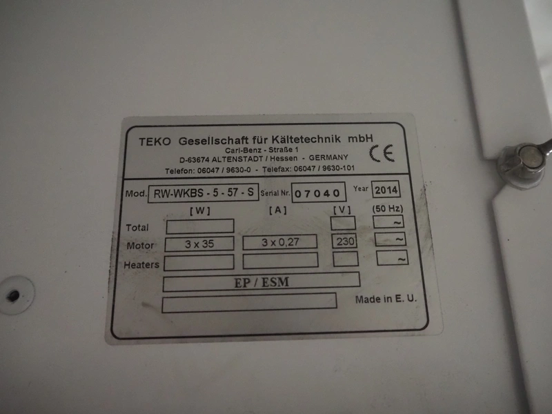 Teko evaporator, model: RW-WKBS- 5-57-S, serial number: 07040, year of construction: 2014, 230 V, 3x0.27 A, 3x35 W, 3 fans, dimensions: 1600 mm x 580 mm x 480 mm.