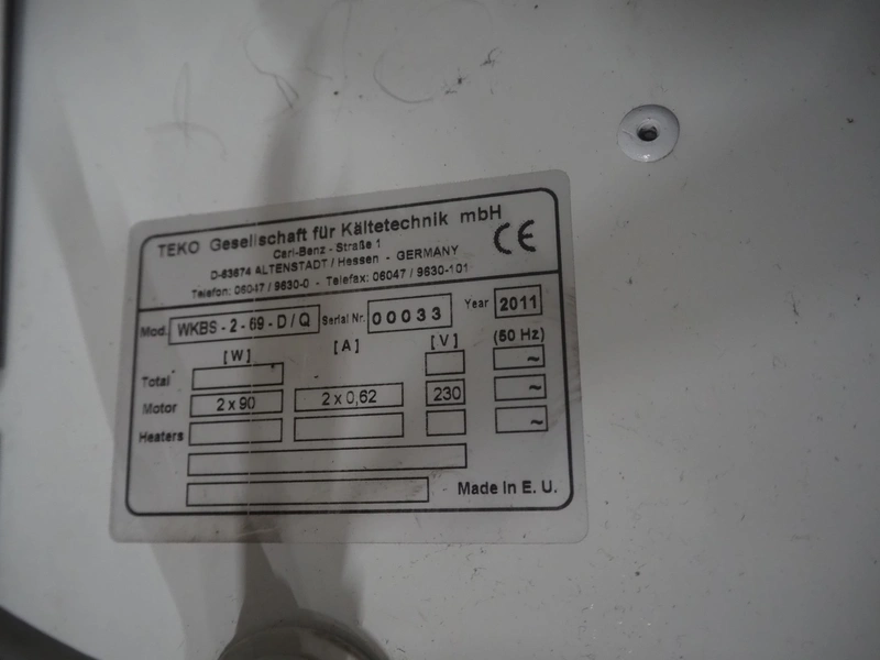 Teko evaporator, model: WKBS- 2-69-D/Q, serial number: 00033, year of construction: 2011, 230 V, 2x0.62 A, 2x90 W, 2 fans, dimensions: 1050 mm x 550 mm x 450 mm.