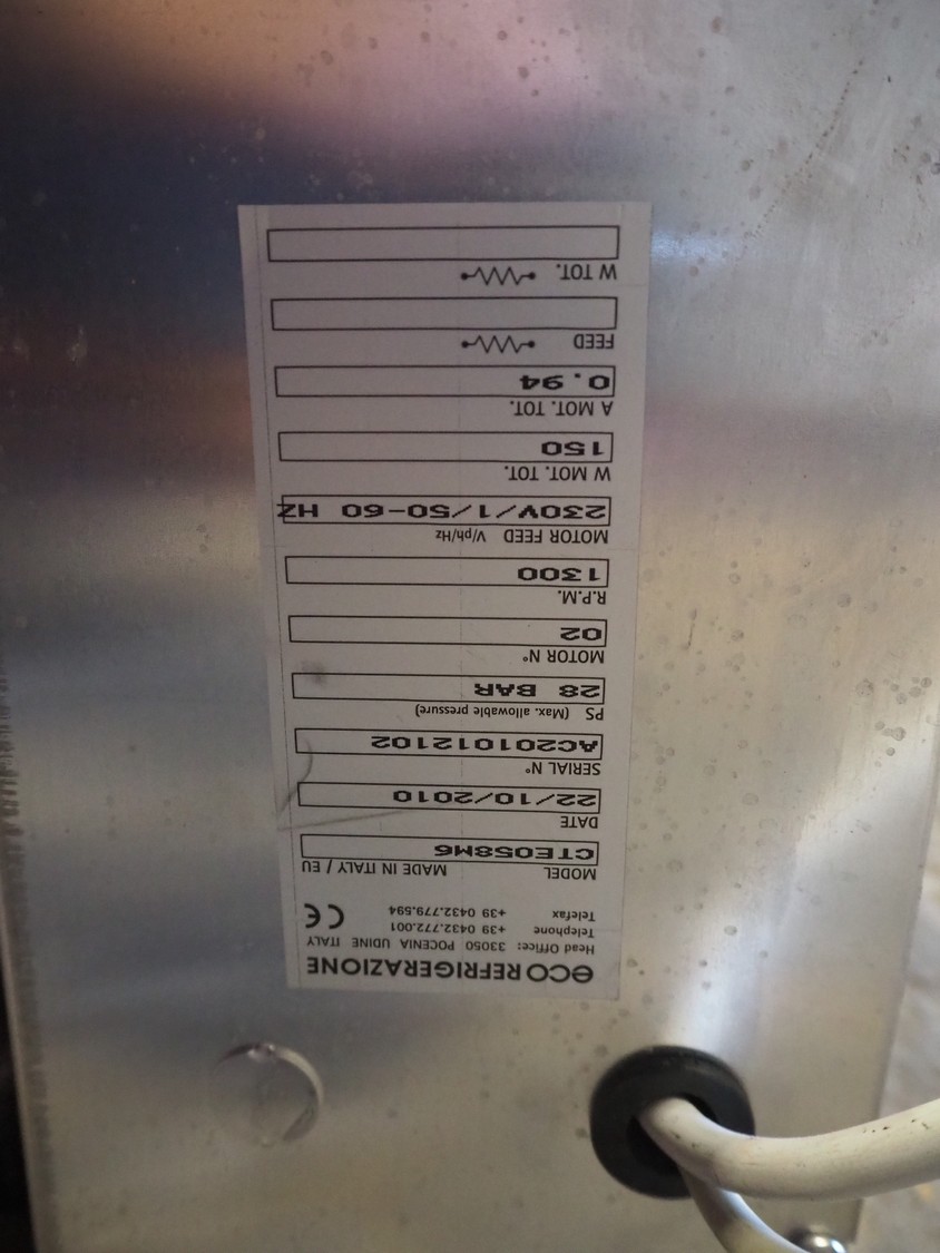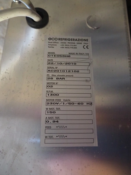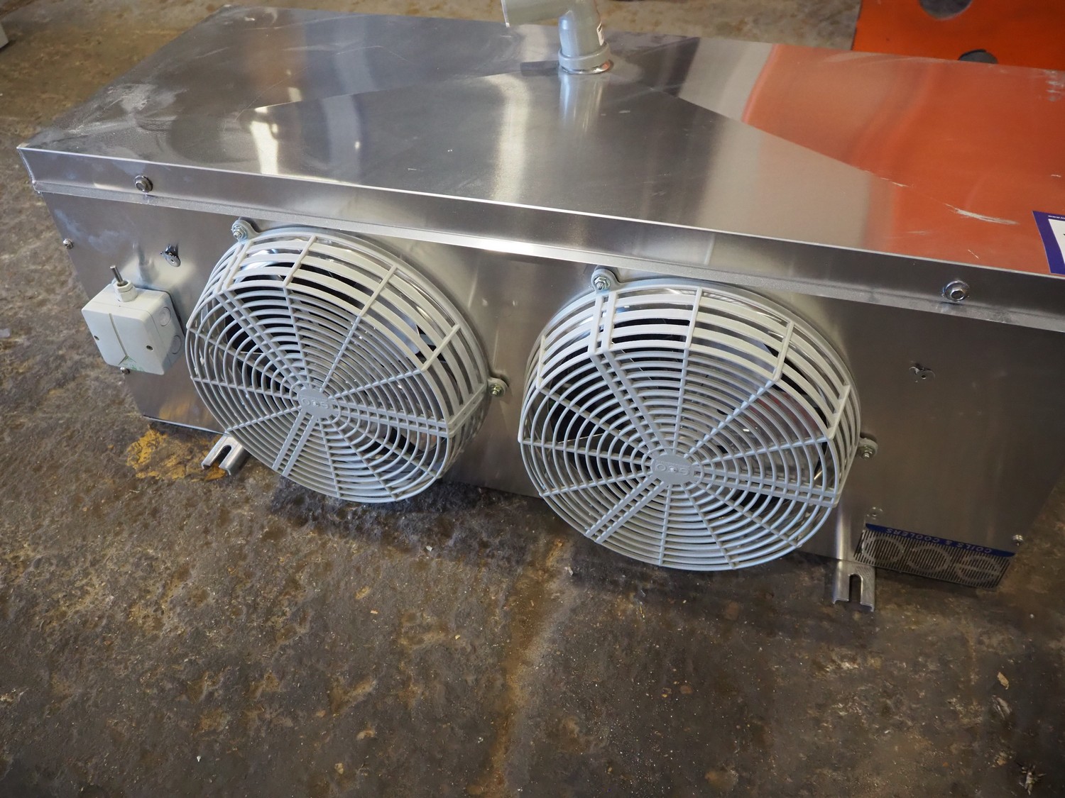 ECO Refrigeration s/s evaporator, model: CTE058M6, serial number: AC201012102, year of construction: 22-10-2010, 1300 r.p.m. 230 V, 1 Ph, 50/60 Hz, 2 fans, dimensions: 1020 mm x 600 mm x 500 mm.