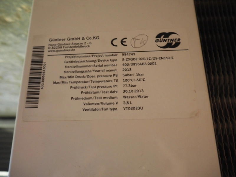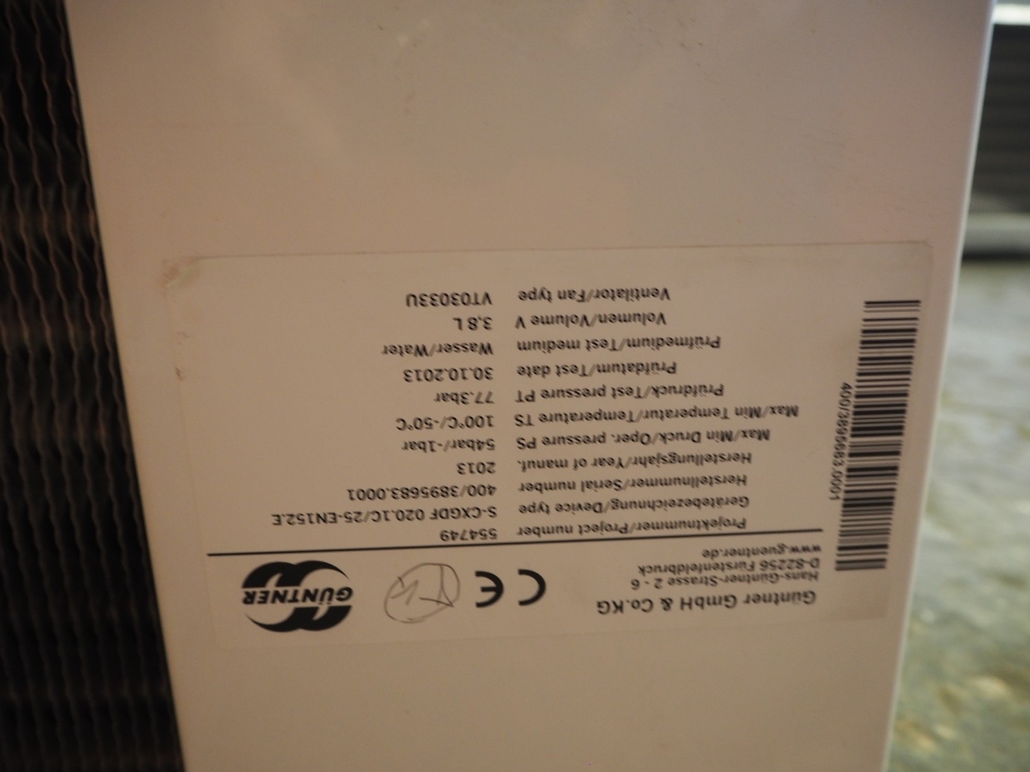 Güntner AG&Co.KG evaporator, type: S-CXGDF 020.1C/25-EN152.E, serial number: 400/3895683.0001, year of construction: 2013, volume: 3.8 liter, 2 fans, dimensions: 1080 mm x 550 mm x 380 mm.