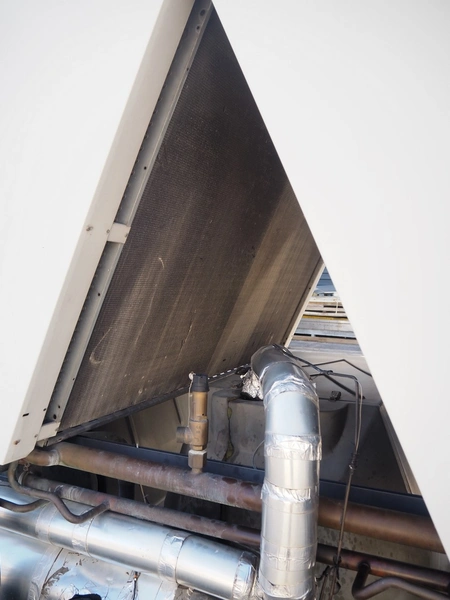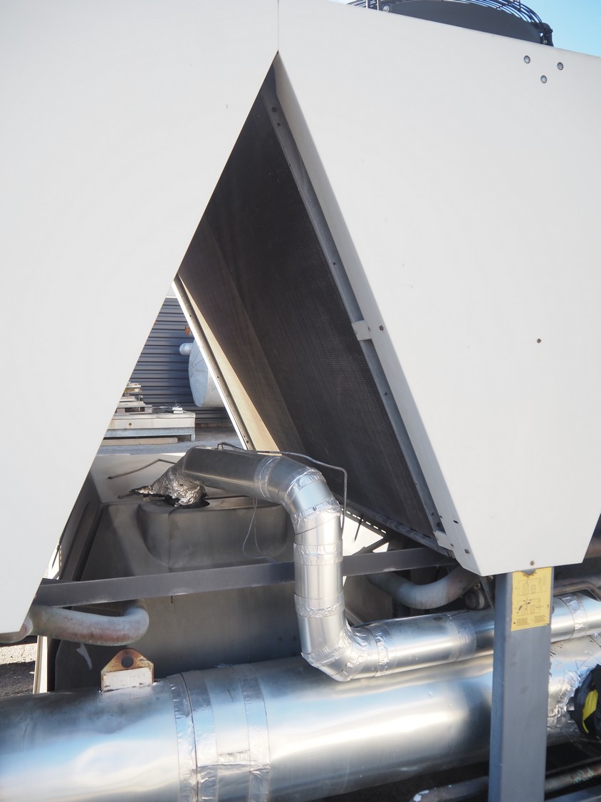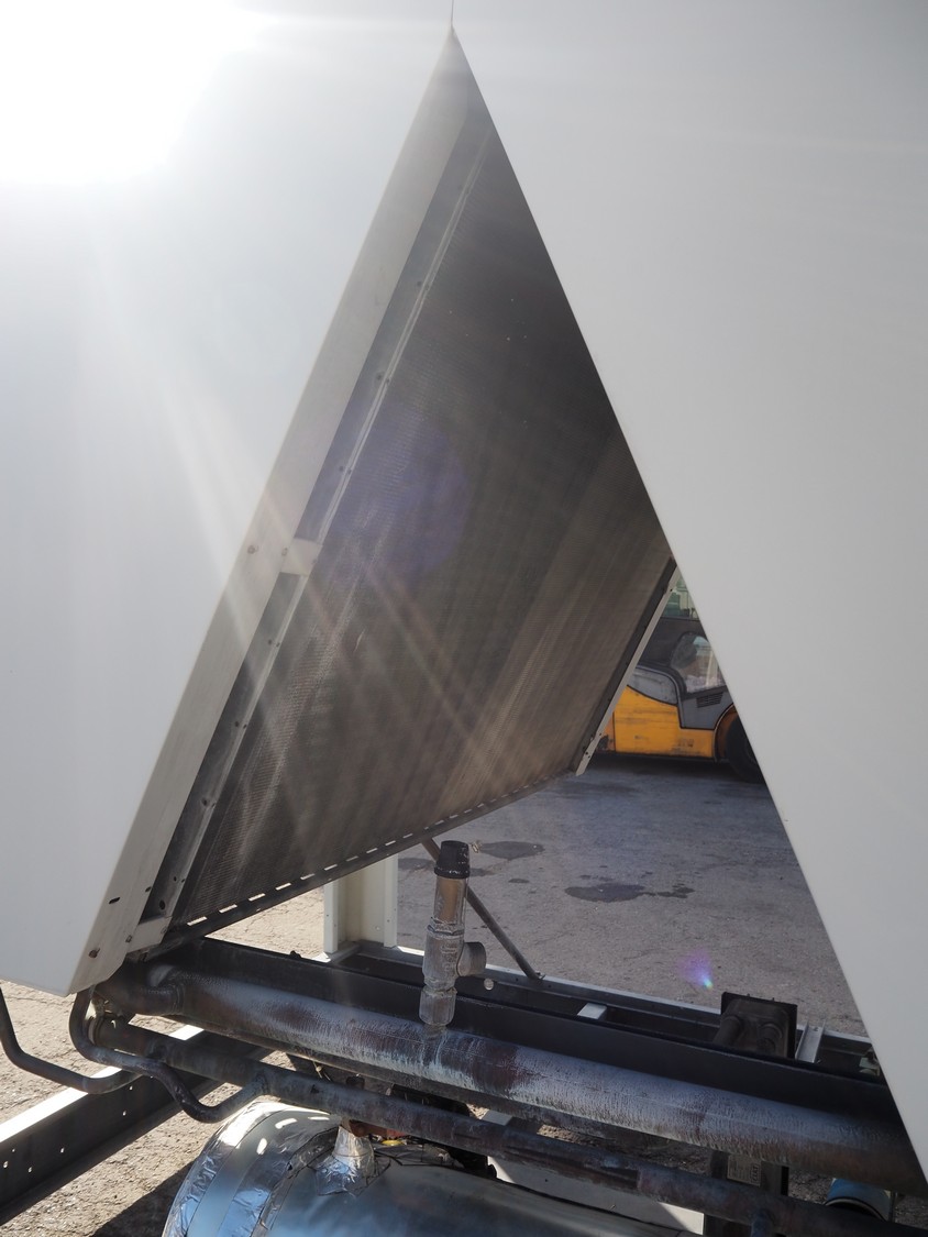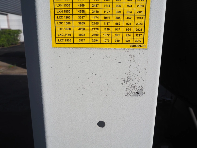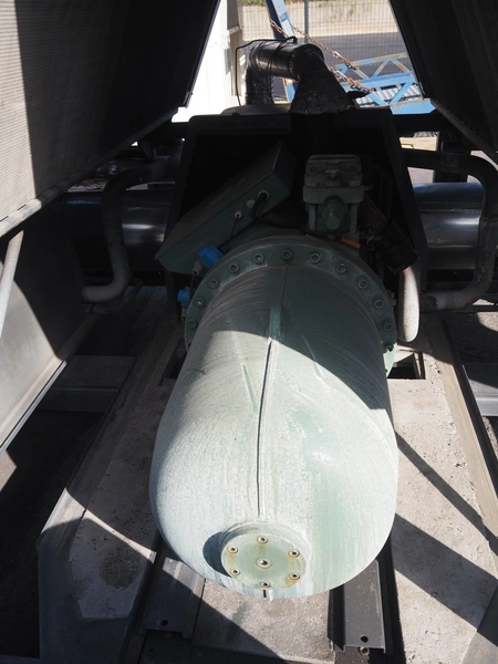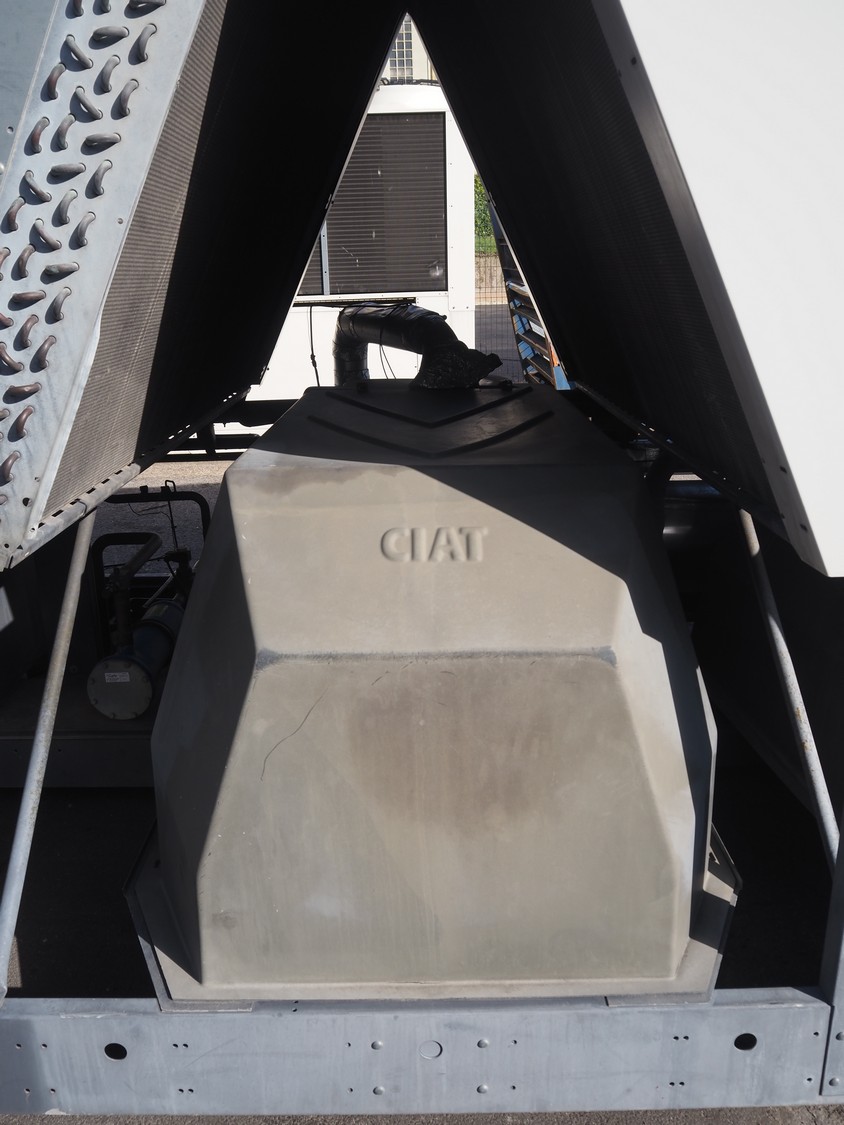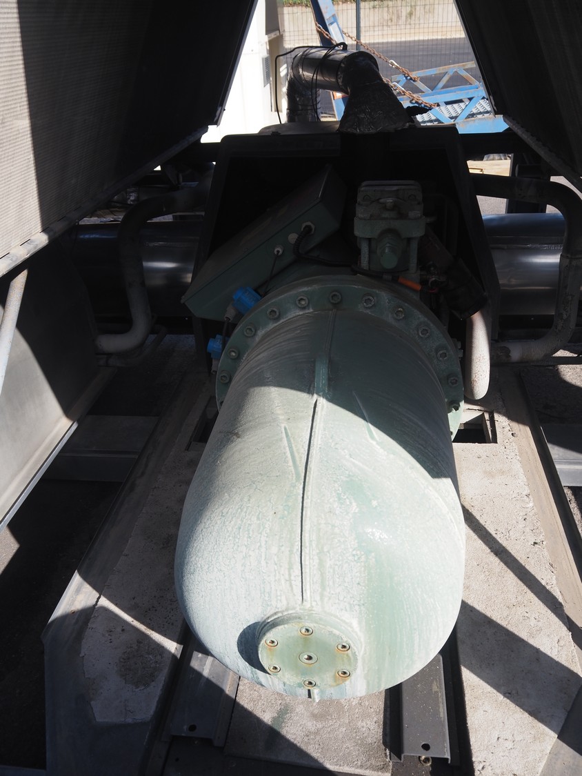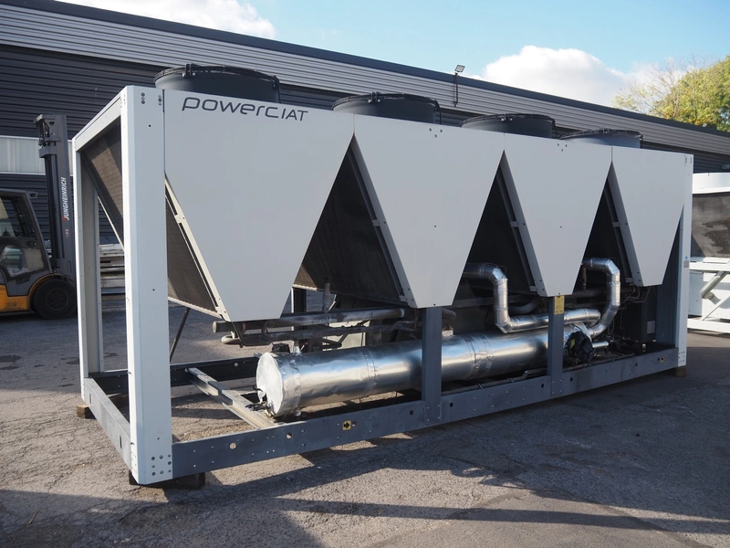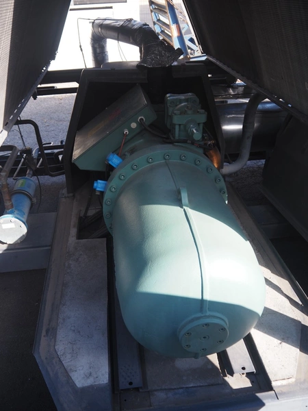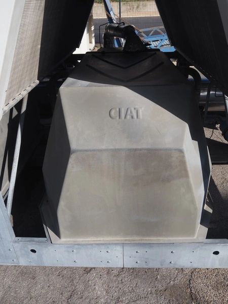 Ciat air cooled chiller, model: LX 2500Z-HPS, cooling capacity: 594 kW, refrigerant: R407C, gas inside, 4 fans, with 2 Bitzer Kühlmaschinenbau GmbH cooling compressors, type: CSH8561-125Y-40P, capacity: 359/433 m³ per hour, total dimensions: 5550 mm x 2200 mm x 2550 mm.