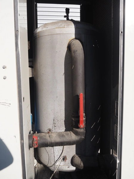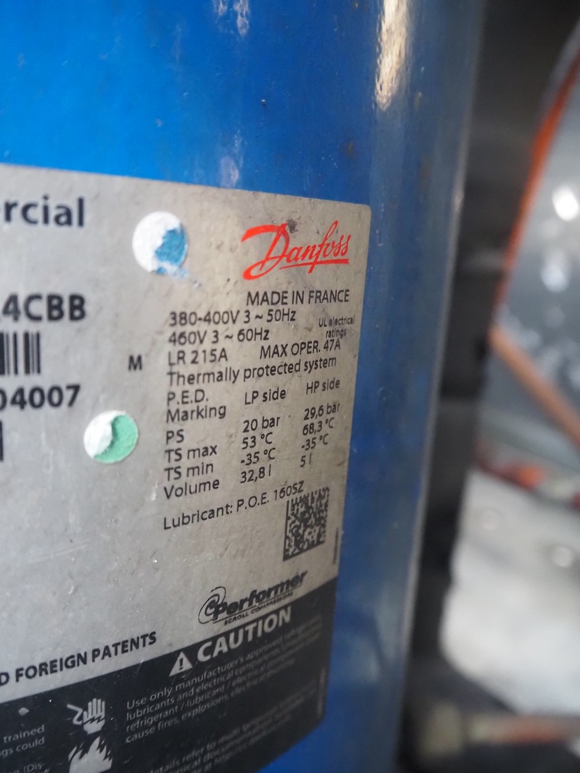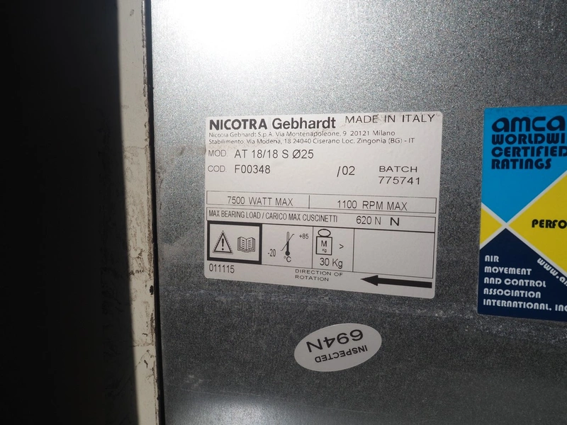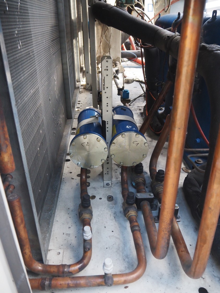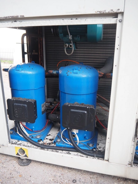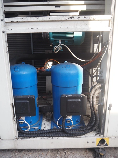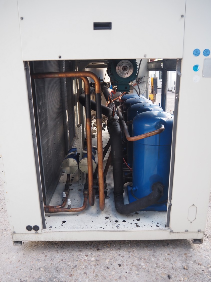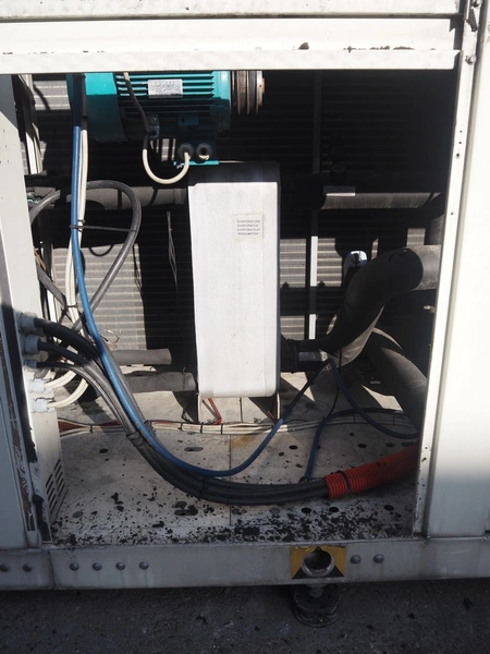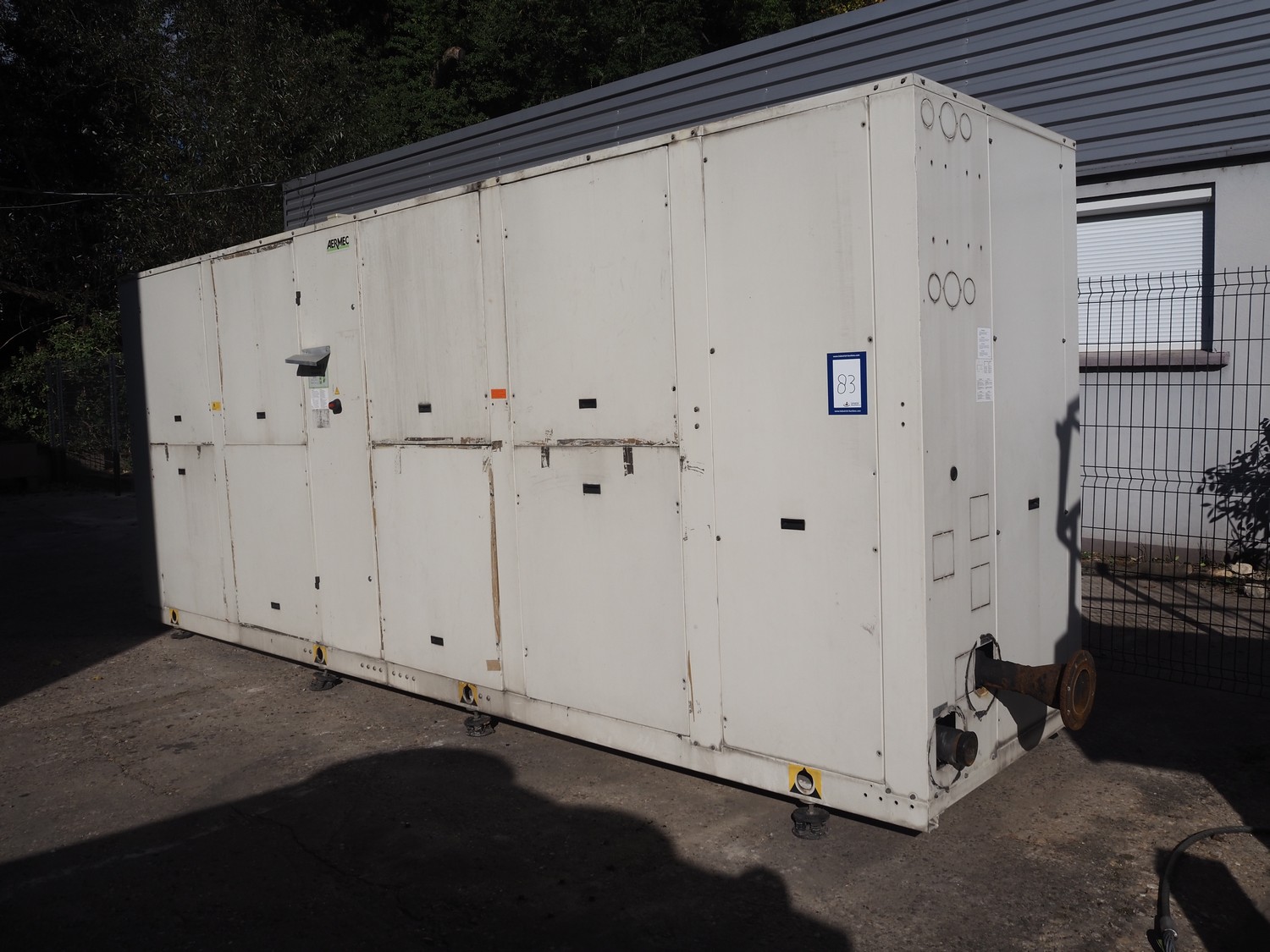 Aermec chiller, model: NRC0800 04V1VV, serial number: 1010006069450001, year of construction: 2010, 400 V, 3 Ph, 50 Hz, 176.5 A, heating: 101.5 kW, cooling capacity: 214 kW, refrigerant: R407C, dimensions: 6050 mm x 1300 mm x 2420 mm.