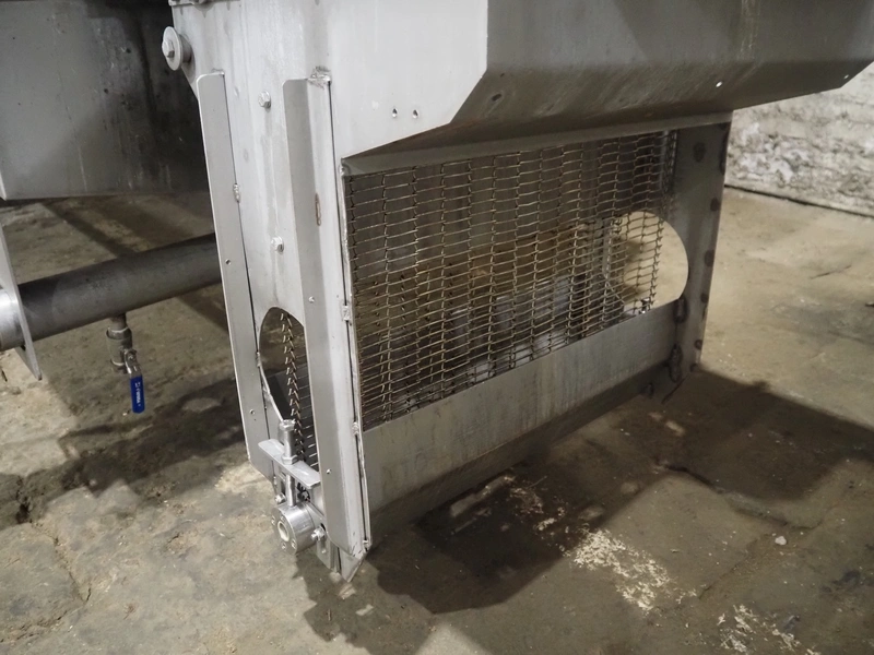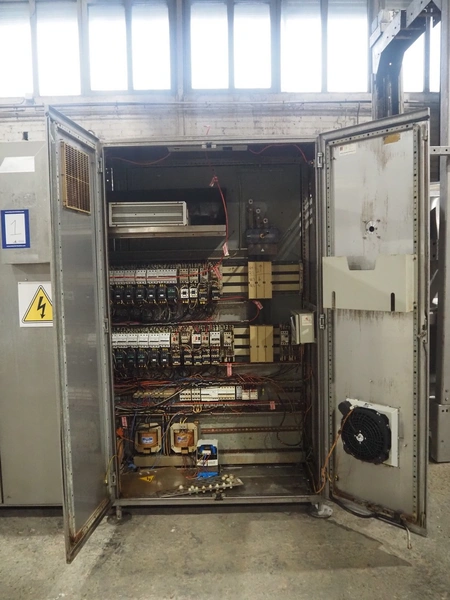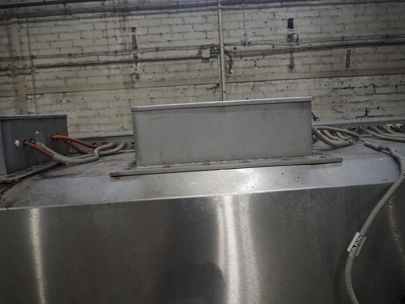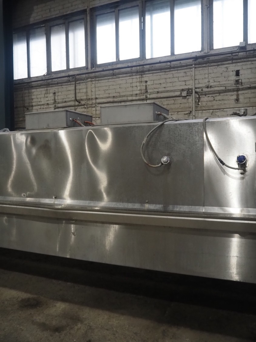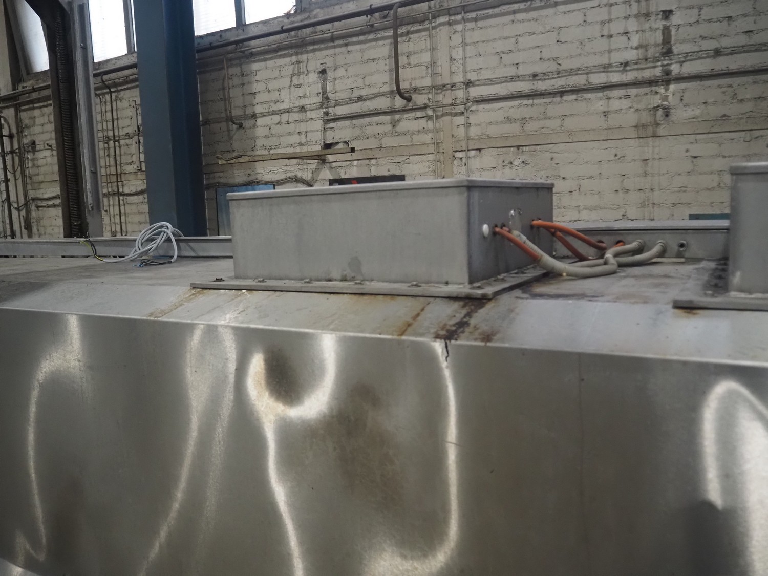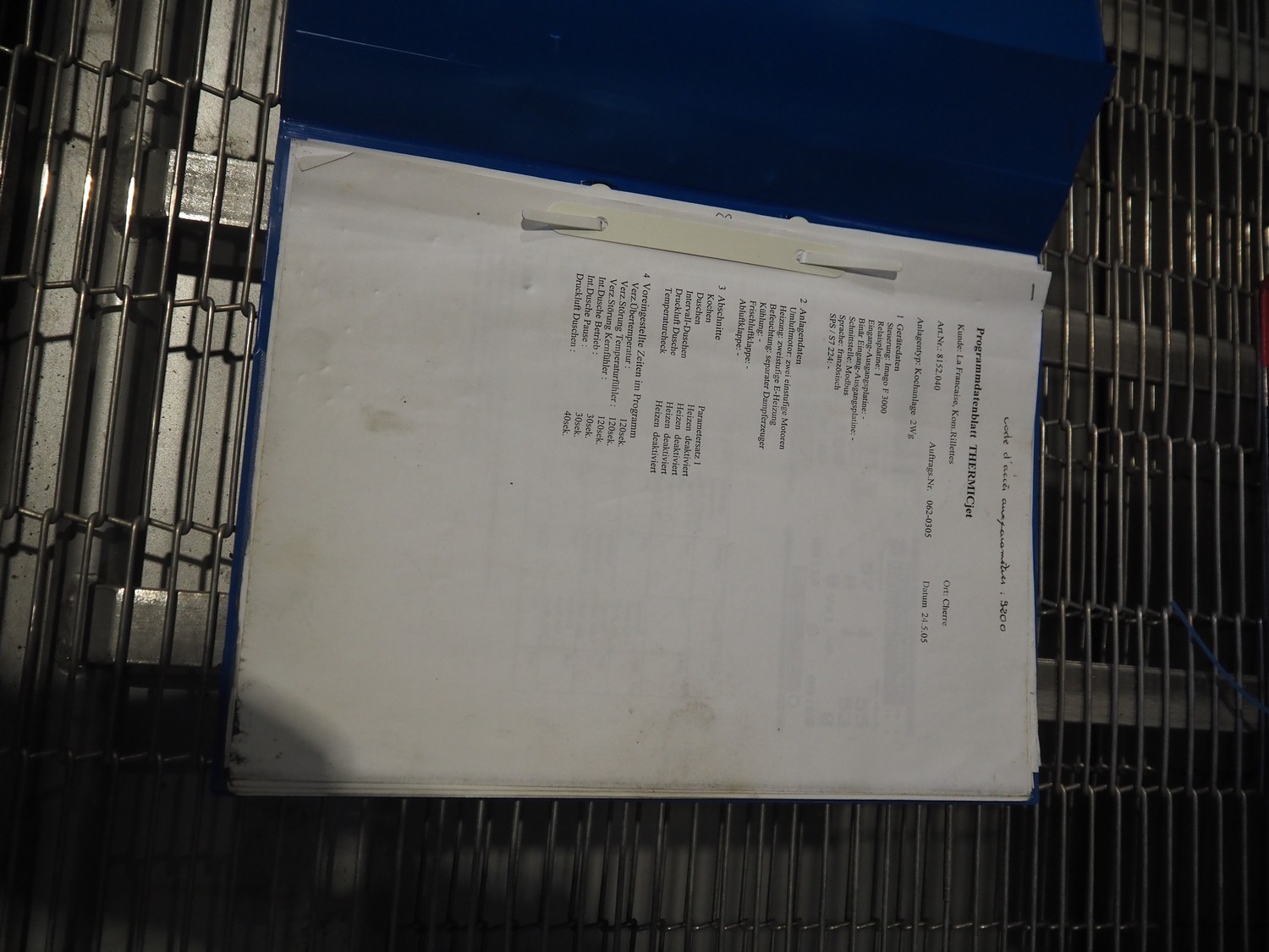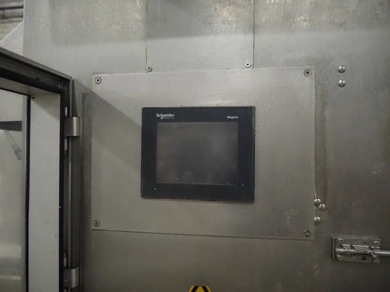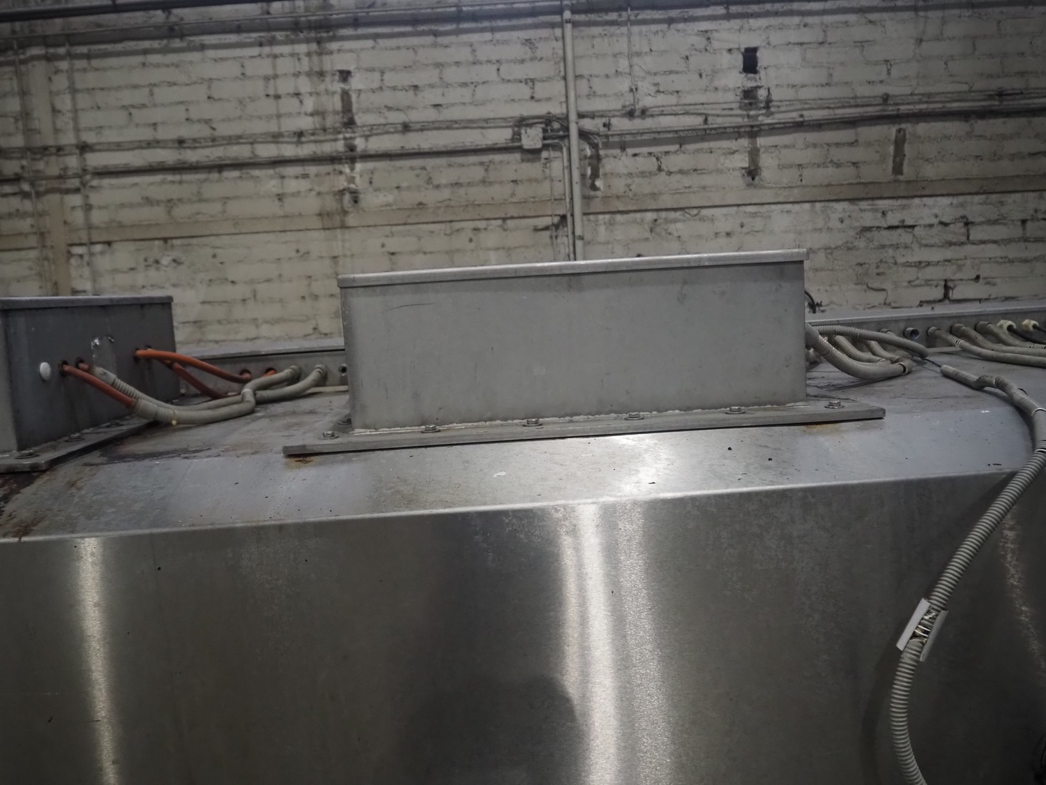 Stork Titan B.V. hot air tunnel oven, model: THS 630/12000, year of construction: 2000, 400 V, 50/60 Hz, 250 kW, s/s mesh belt, belt width: 630 mm, clearance: 630 mm x 120 mm, total dimensions: 14200 mm x 1800 mm x 3300 mm, dimensions switch cabinet: 2300 mm x 720 mm x 2470 mm. Including various parts and new s/s belt.