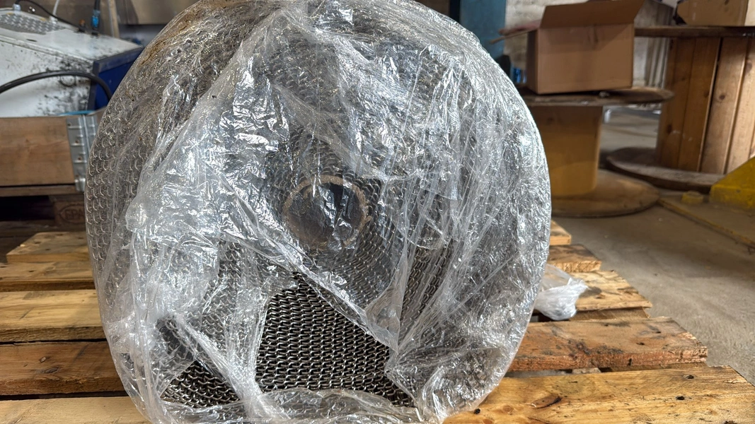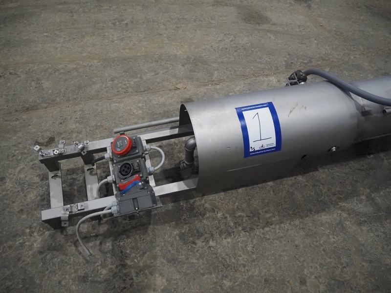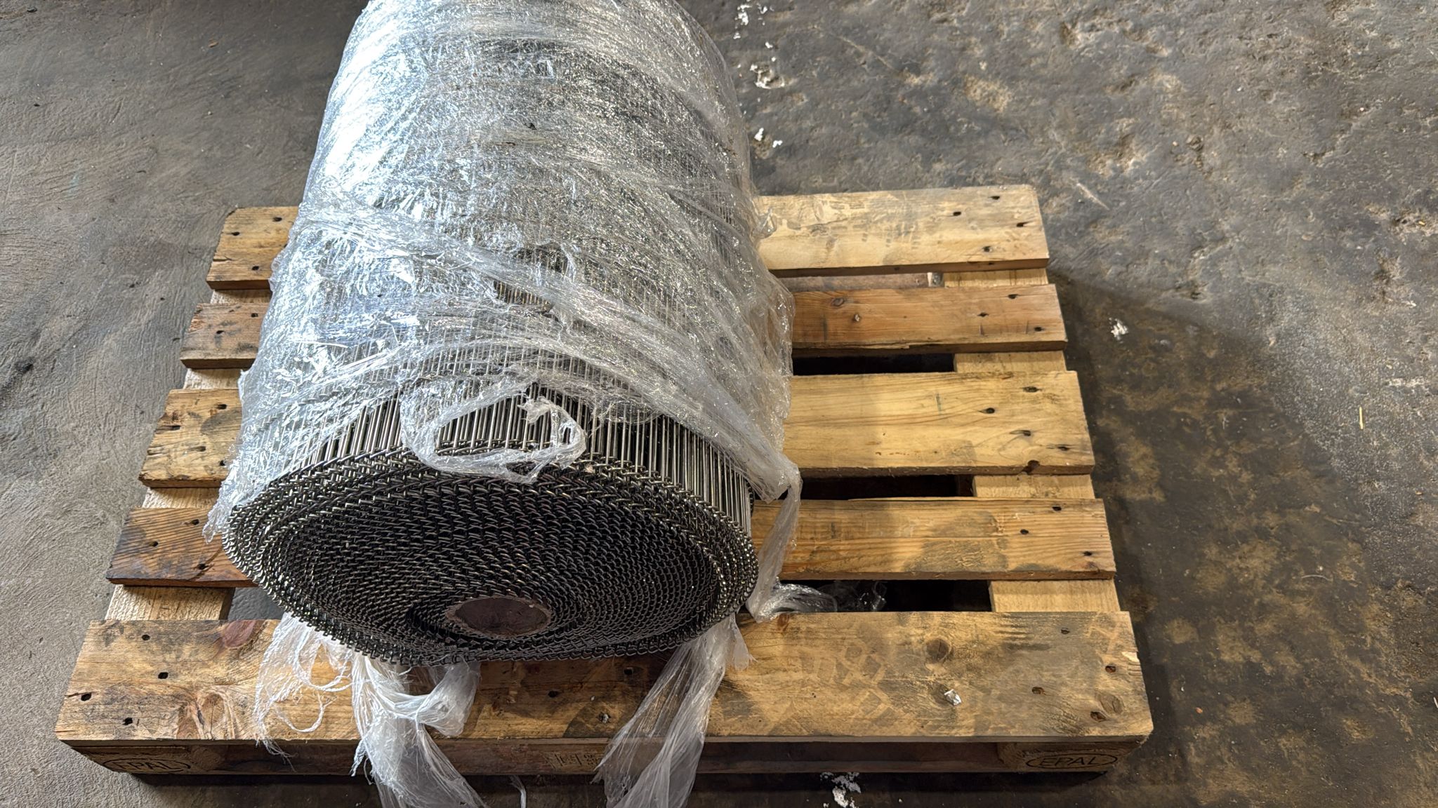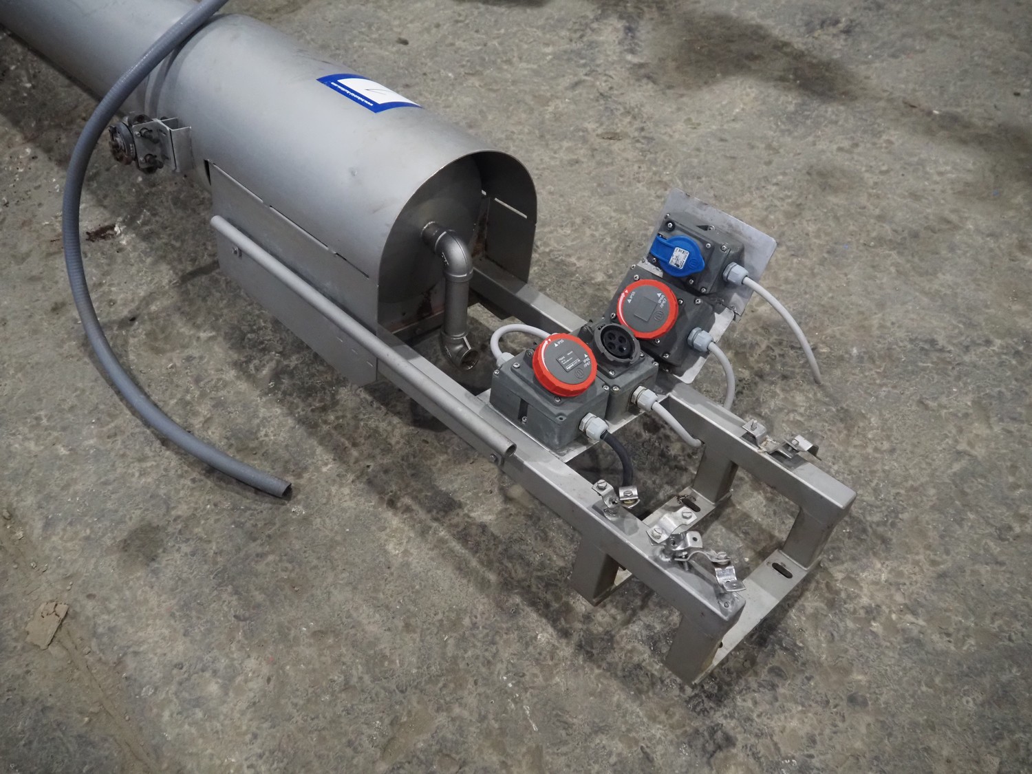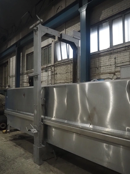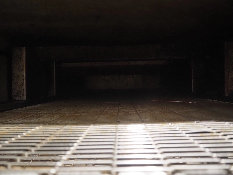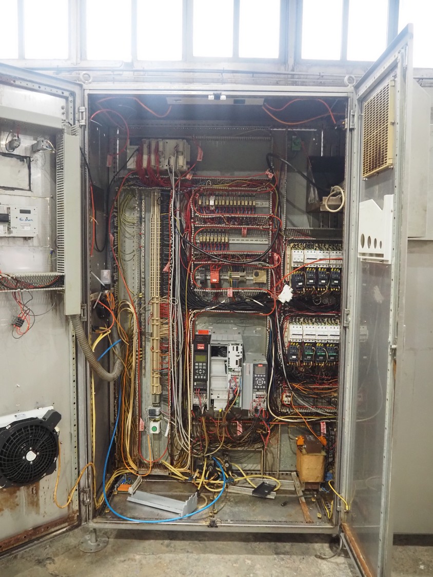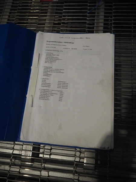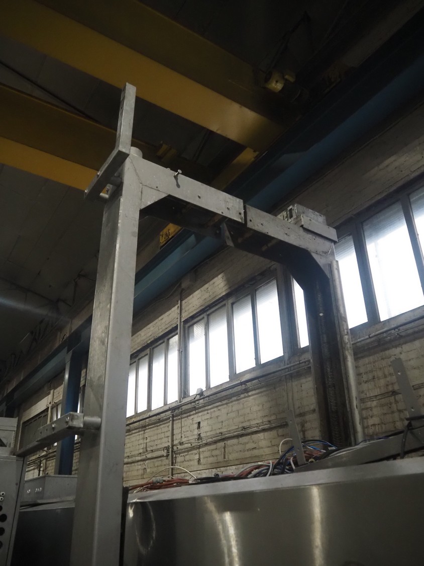 Stork Titan B.V. hot air tunnel oven, model: THS 630/12000, year of construction: 2000, 400 V, 50/60 Hz, 250 kW, s/s mesh belt, belt width: 630 mm, clearance: 630 mm x 120 mm, total dimensions: 14200 mm x 1800 mm x 3300 mm, dimensions switch cabinet: 2300 mm x 720 mm x 2470 mm. Including various parts and new s/s belt.