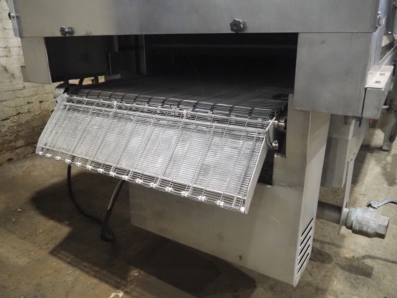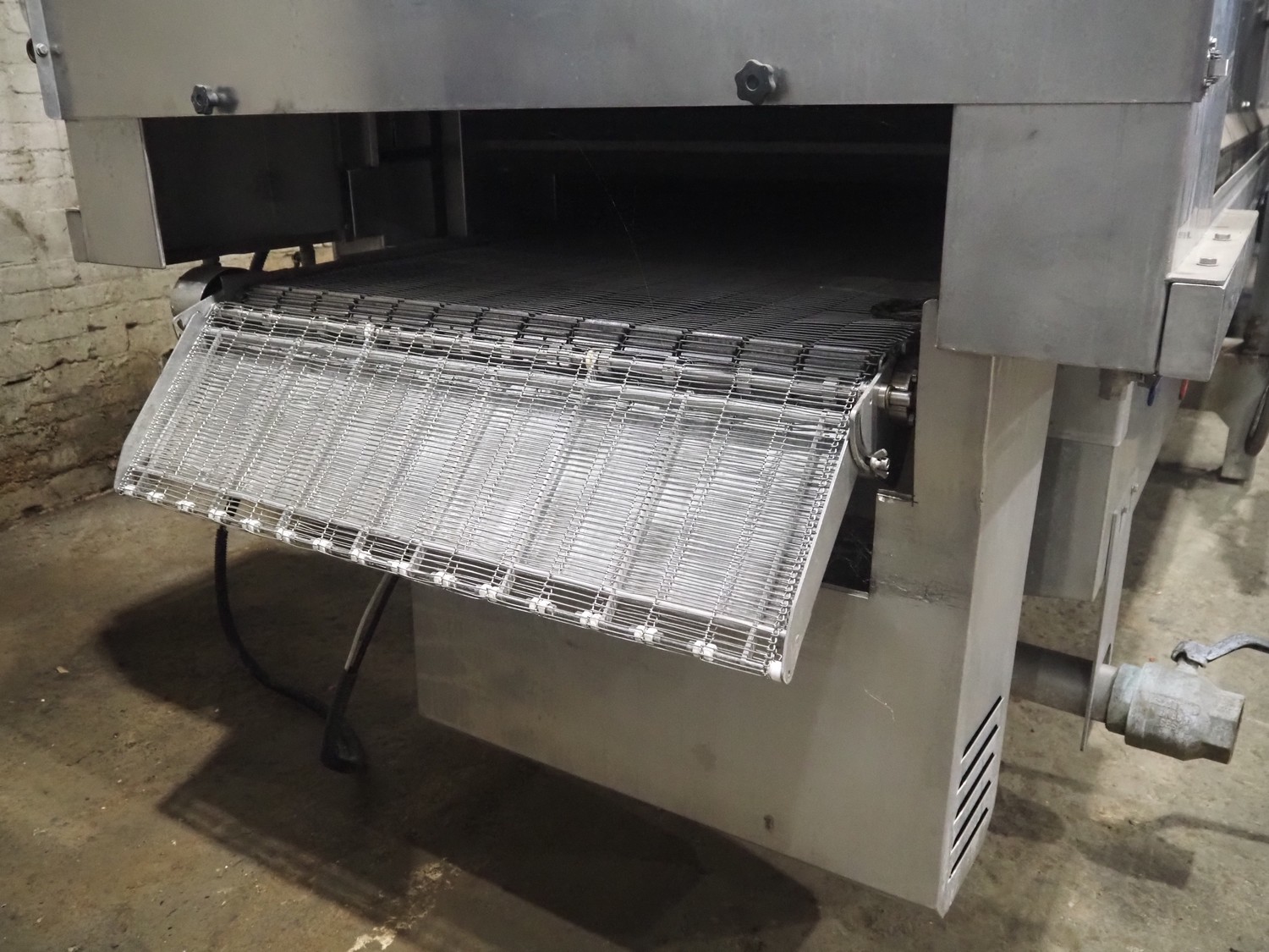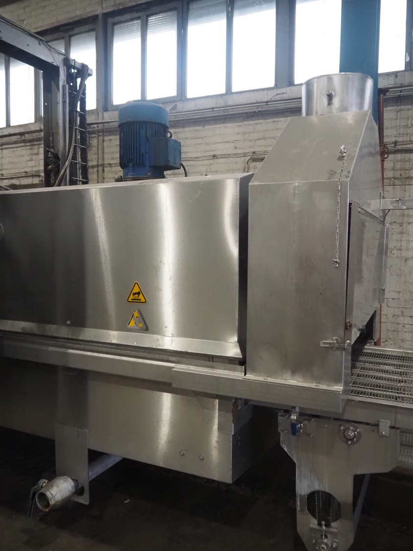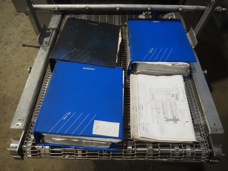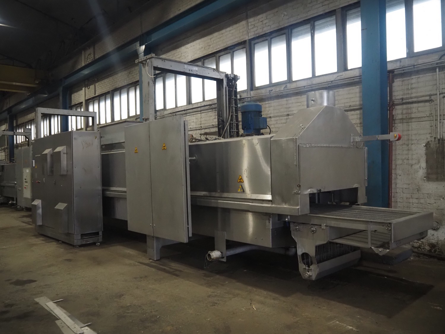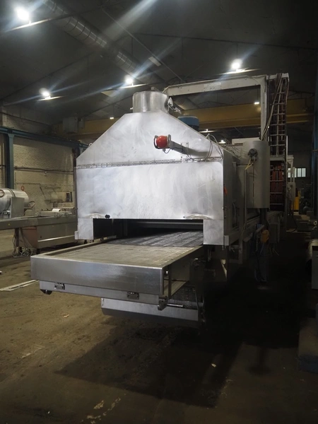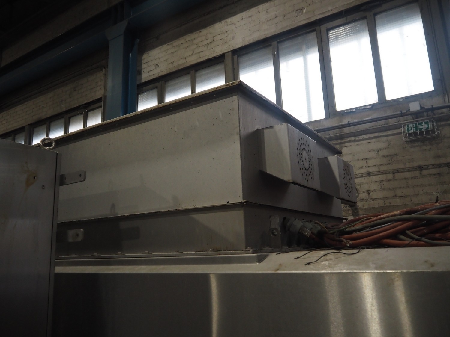 Stork Titan B.V. hot air tunnel oven, model: THS 1000/10000 EL THO113, type: 4794436, serial number: 10070961, year of construction: 2009, s/s mesh belt, belt width: 1000 mm, clearence: 1020 mm x 130 mm, total dimensions: 12700 mm x 2850 mm x 3320 mm. Including various parts.