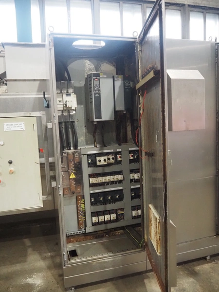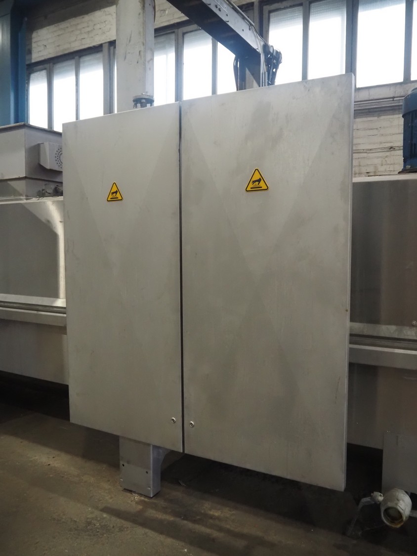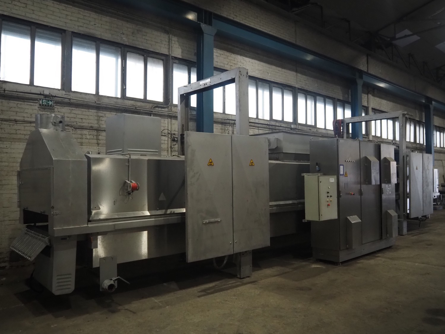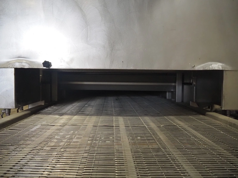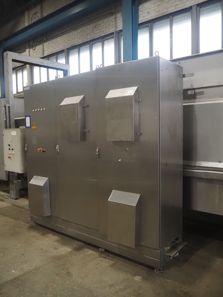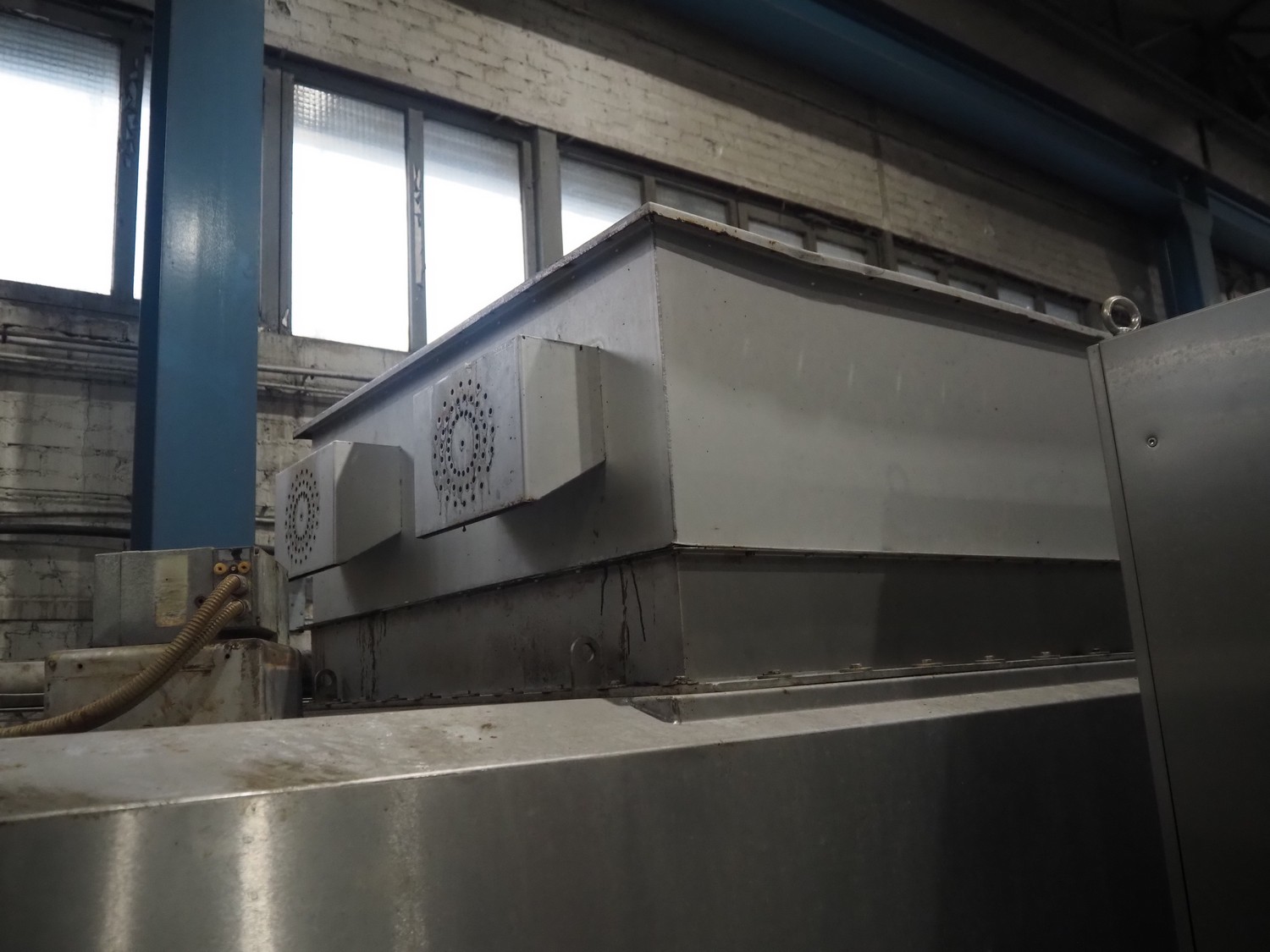 Stork Titan B.V. hot air tunnel oven, model: THS 1000/10000 EL THO113, type: 4794436, serial number: 10070961, year of construction: 2009, s/s mesh belt, belt width: 1000 mm, clearence: 1020 mm x 130 mm, total dimensions: 12700 mm x 2850 mm x 3320 mm. Including various parts.