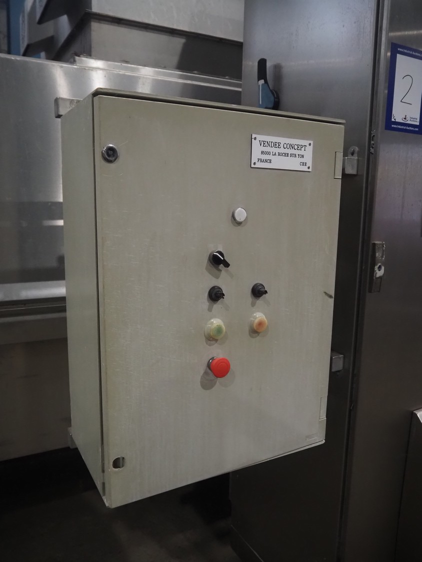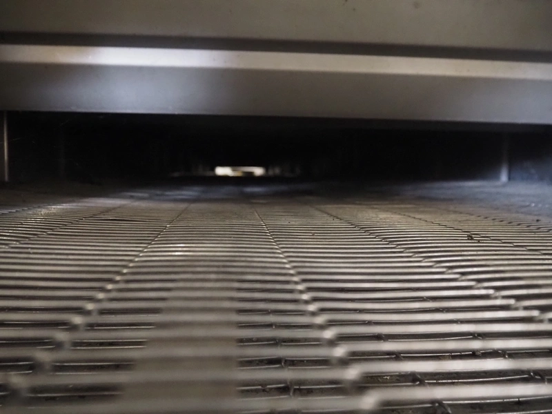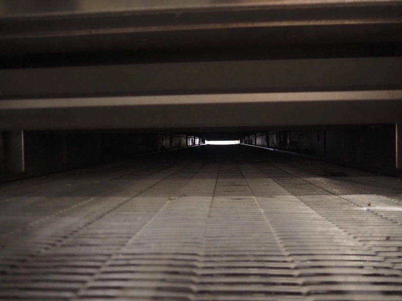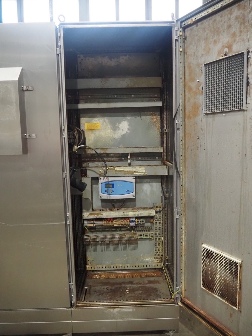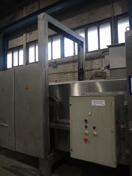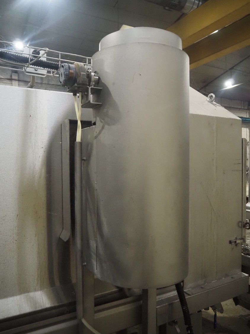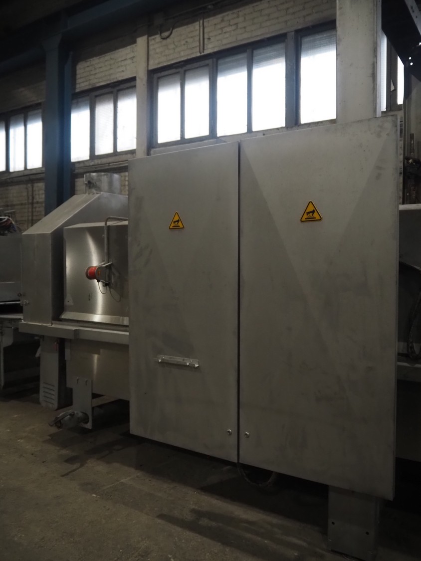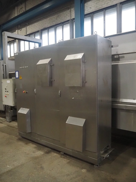 Stork Titan B.V. hot air tunnel oven, model: THS 1000/10000 EL THO113, type: 4794436, serial number: 10070961, year of construction: 2009, s/s mesh belt, belt width: 1000 mm, clearence: 1020 mm x 130 mm, total dimensions: 12700 mm x 2850 mm x 3320 mm. Including various parts.
