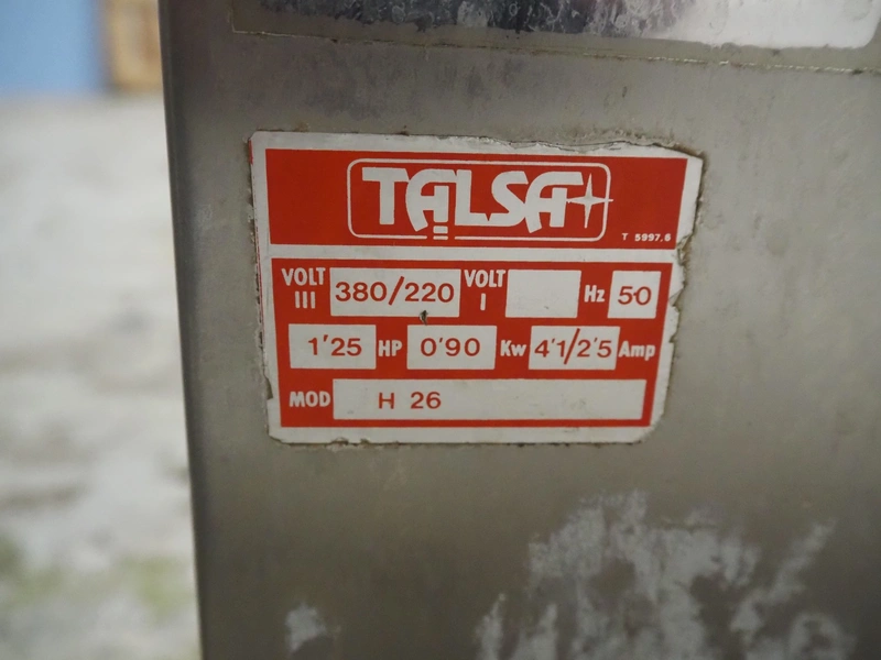 Talsa mobile piston filler, model : H26, 220/380 V, 50 Hz, 2.5 A, 4.1 kW, dimensions: 780 mm x 480 mm x 1150 mm.