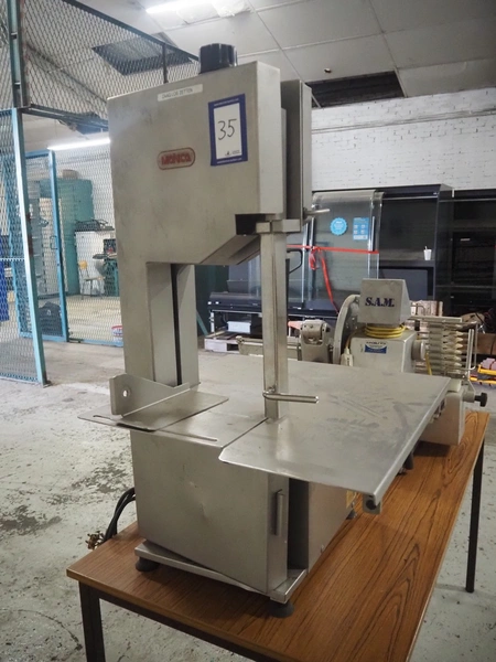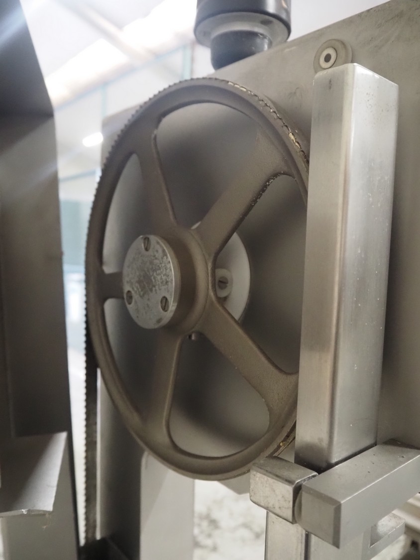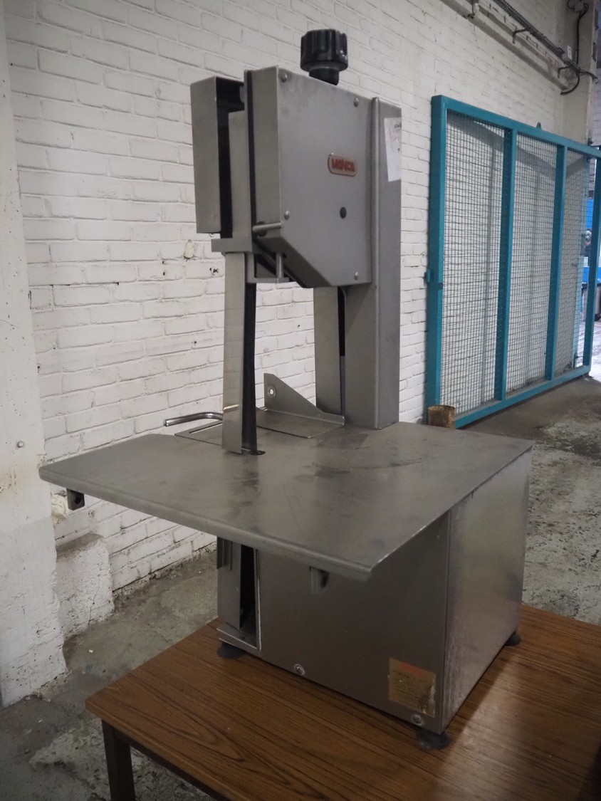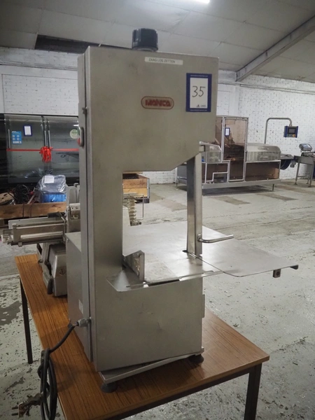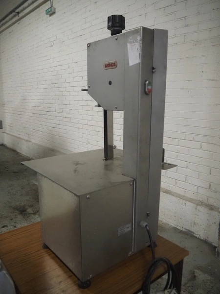 Mainca table model bandsaw, model: BM-2000, number: 1216, year of construction: 2002, 400 V, 3 Ph, 50 Hz, 3.2 A, 1.1 kW, dimensions sawtable: 600 mm x 560 mm, total dimensions: 600 mm x 580 mm x 1050 mm.