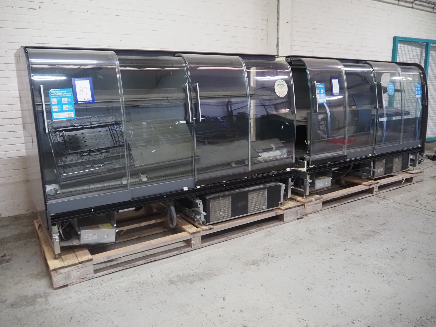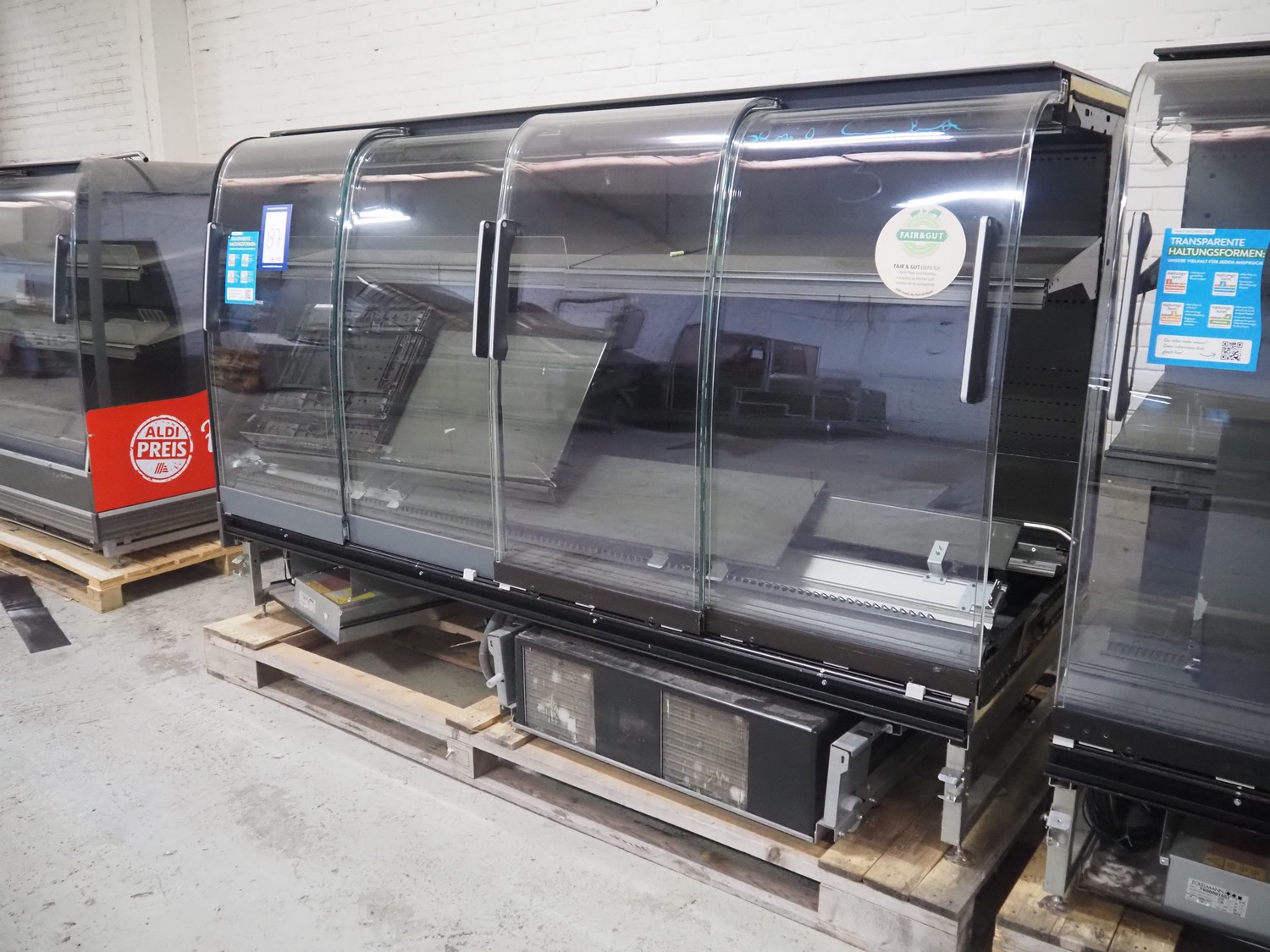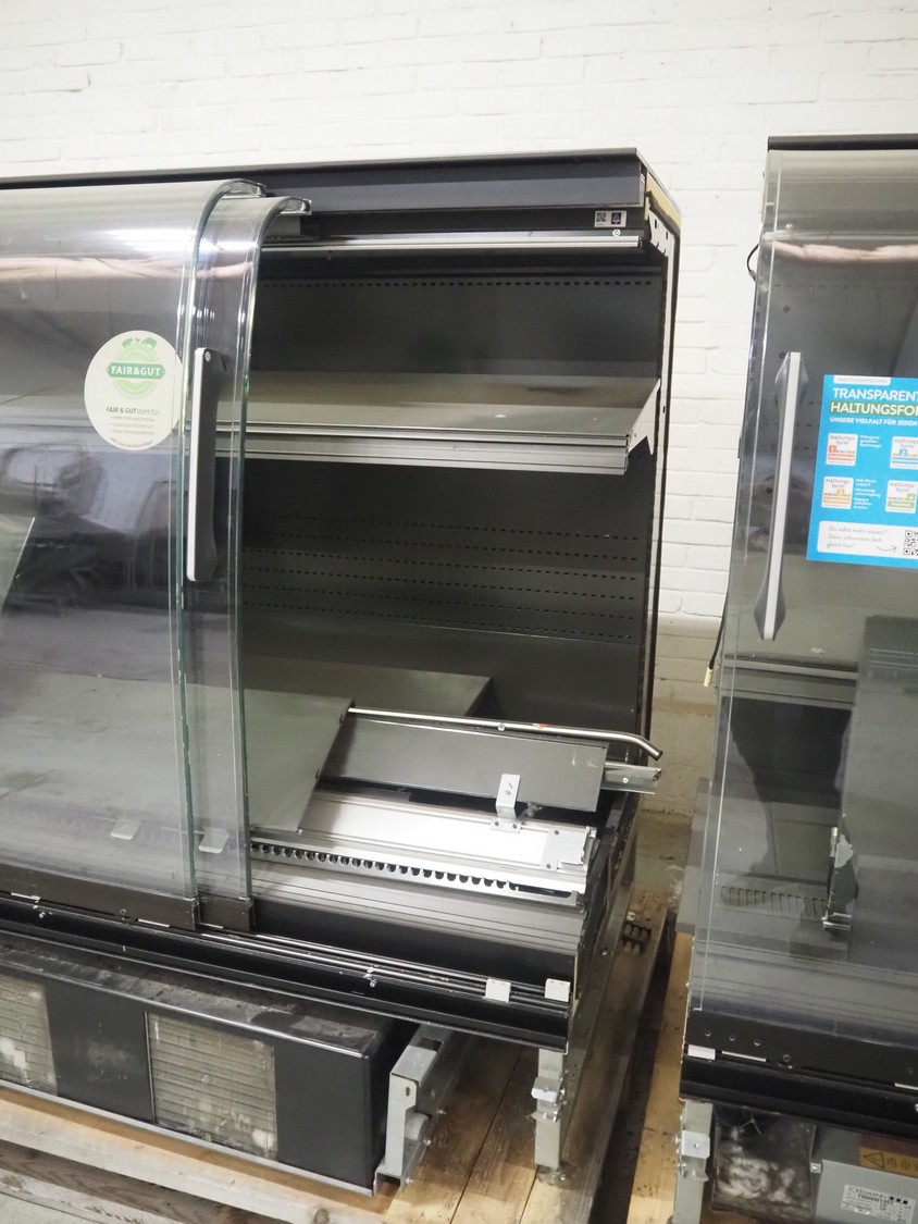 Viessmann refrigerated showcase, number: 7694737, serial number: 01917706, year of construction: 2018, 230 V, 50 Hz, 3 floors, dimensions each floor: 2500 mm x 450 mm, total dimensions: (2x) 2530 mm x 1100 mm x 1630 mm. Technical condition unknown.