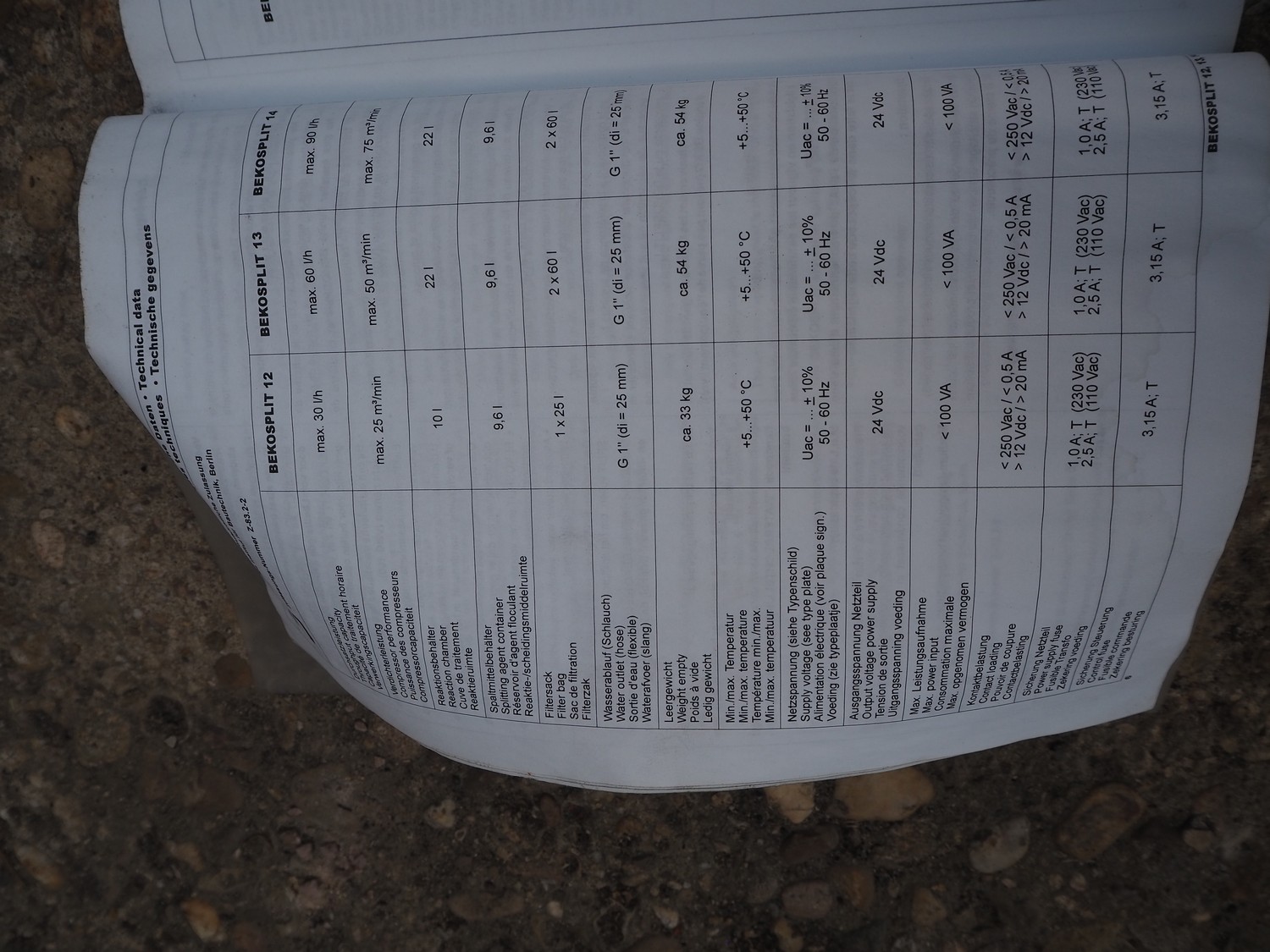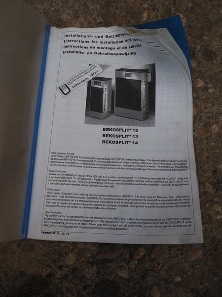 Beko eurosplit emulsion treatment cabinet, volume: 600/1000 liter, dimensions: 1100 mm x 440 mm x 1450 mm.