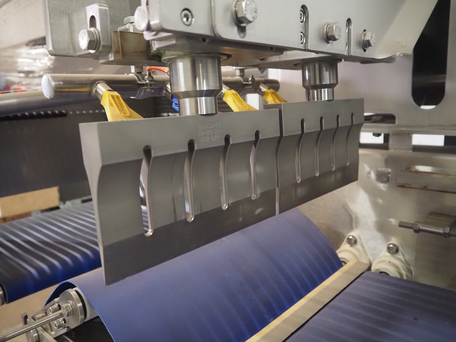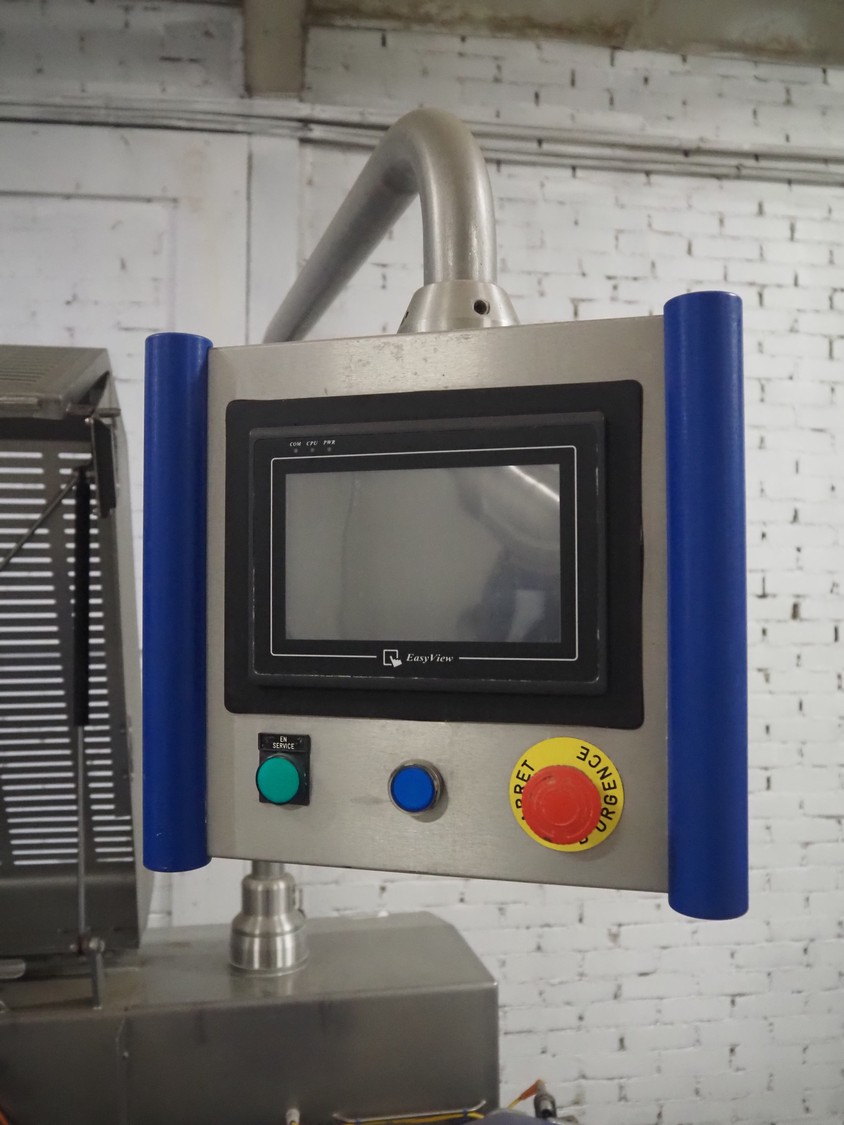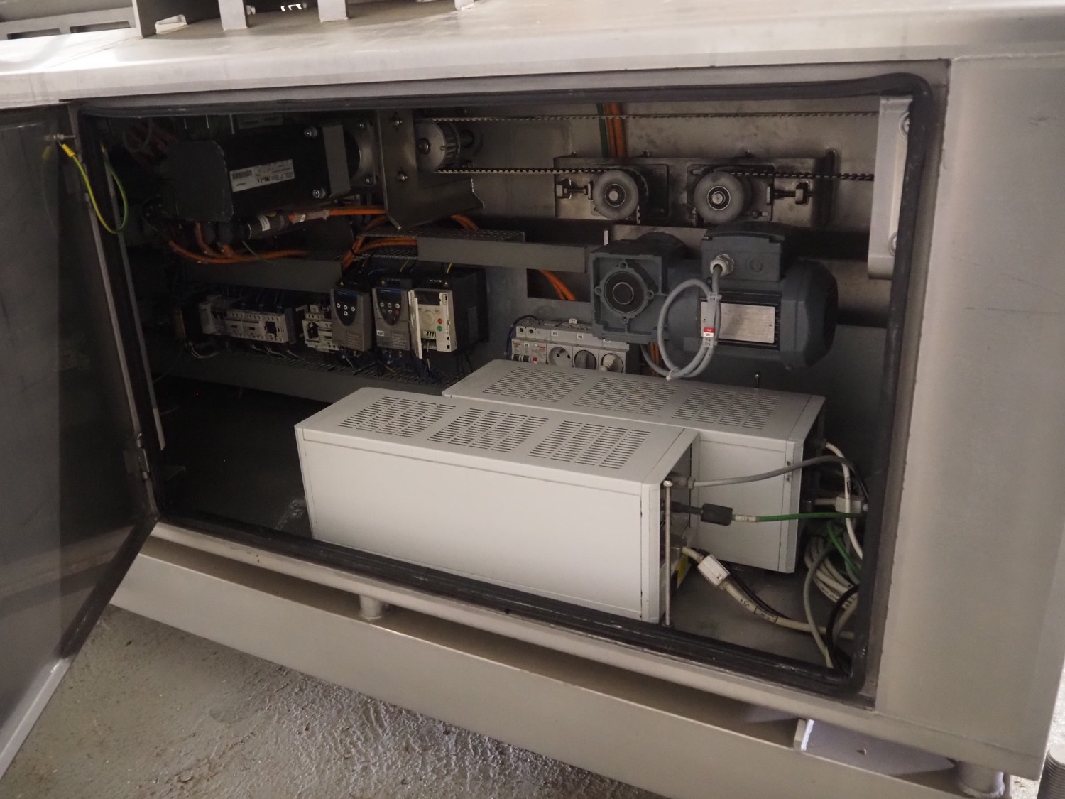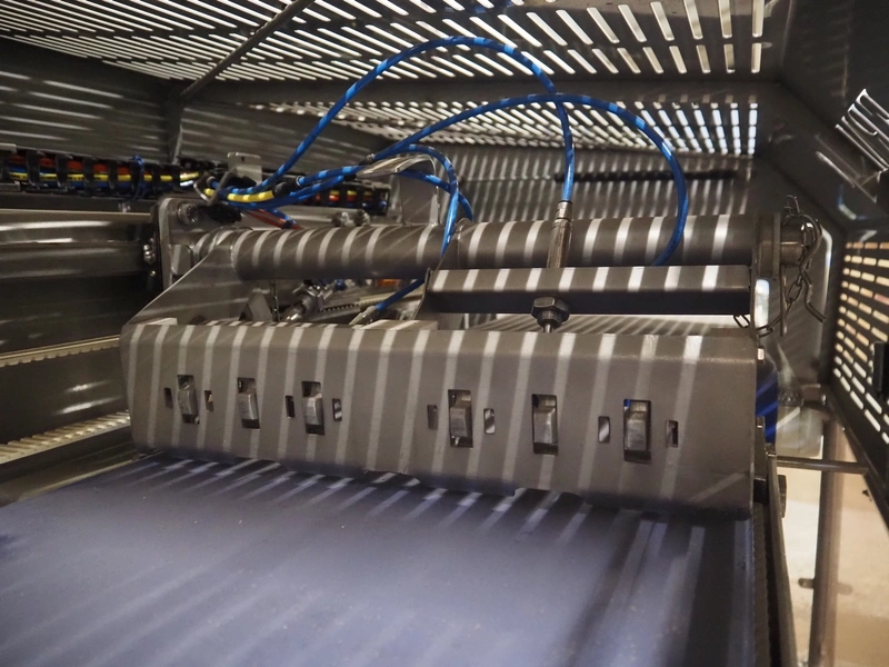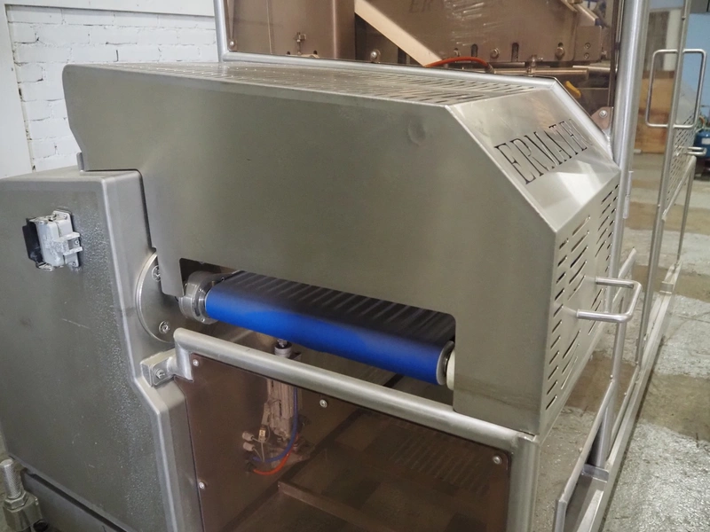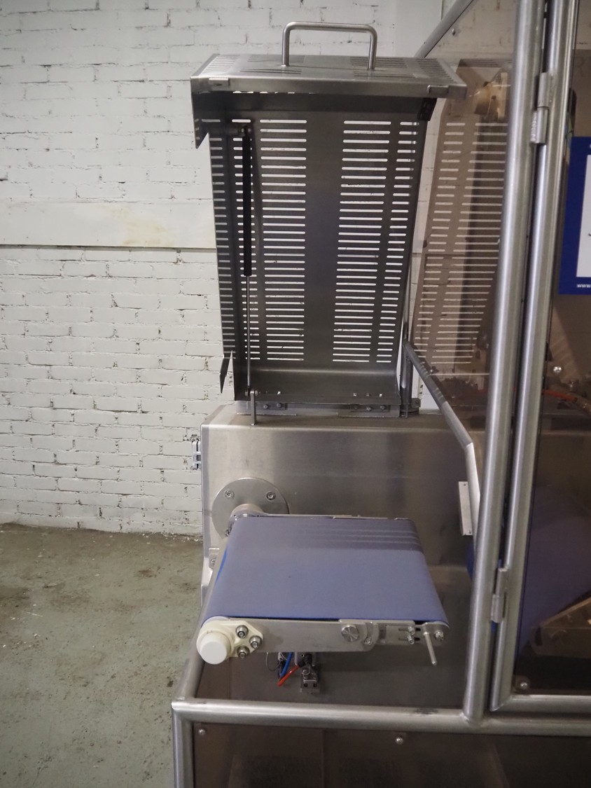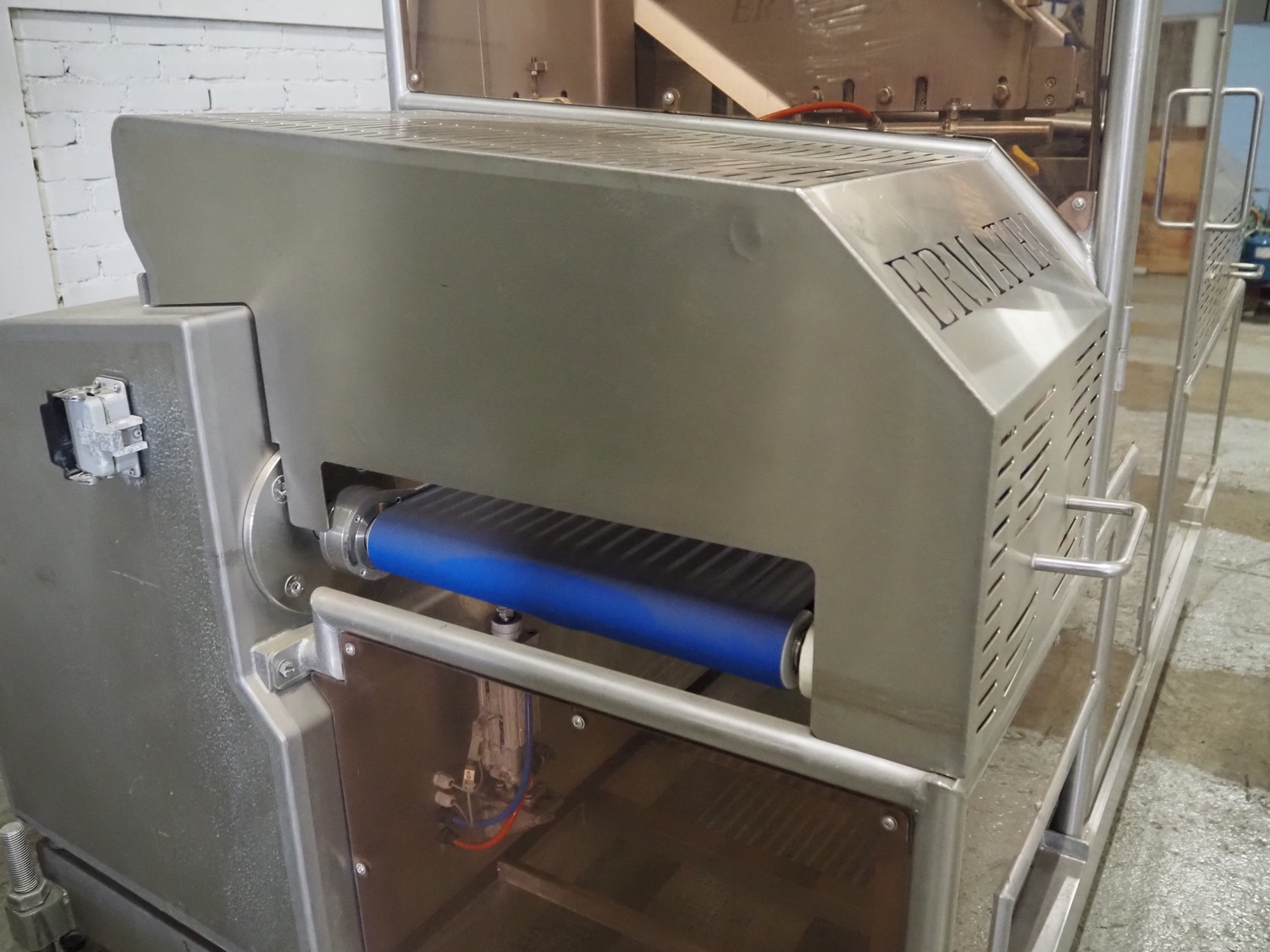 Ermatec slicer for cheese, serie: TRENCHEUR.US, number: 837, year of construction: 30.09.2005, plastic belt, belt width: 420 mm, working width: 485 mm, total dimensions: 3200 mm x 1300 mm x 2000 mm.