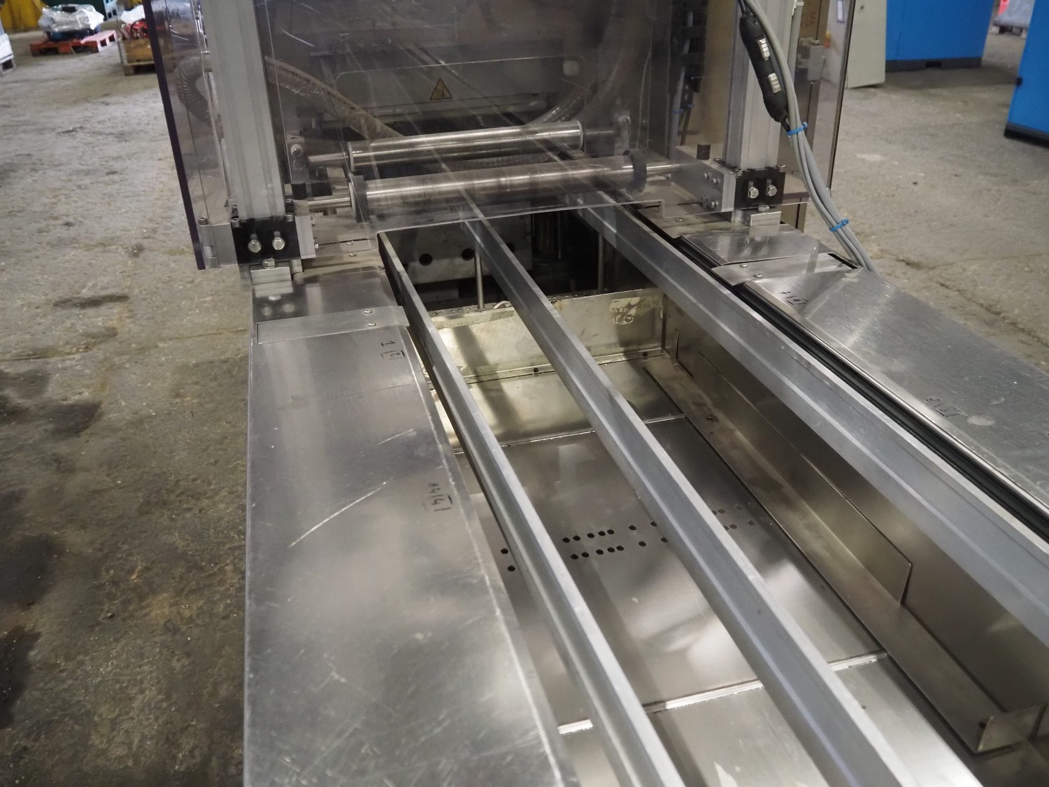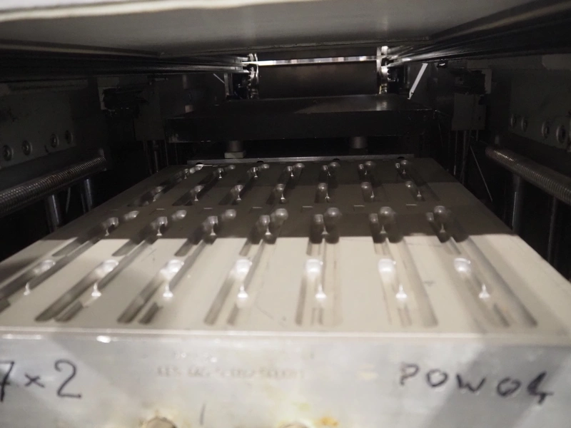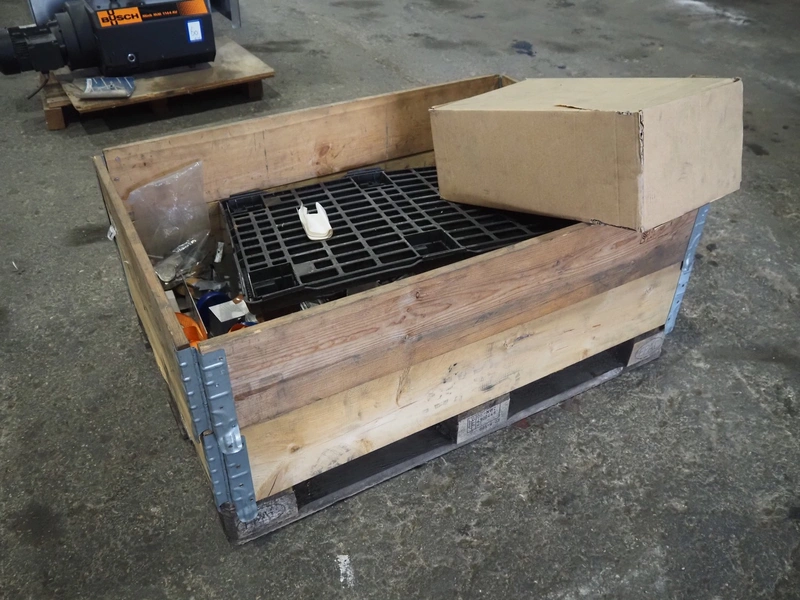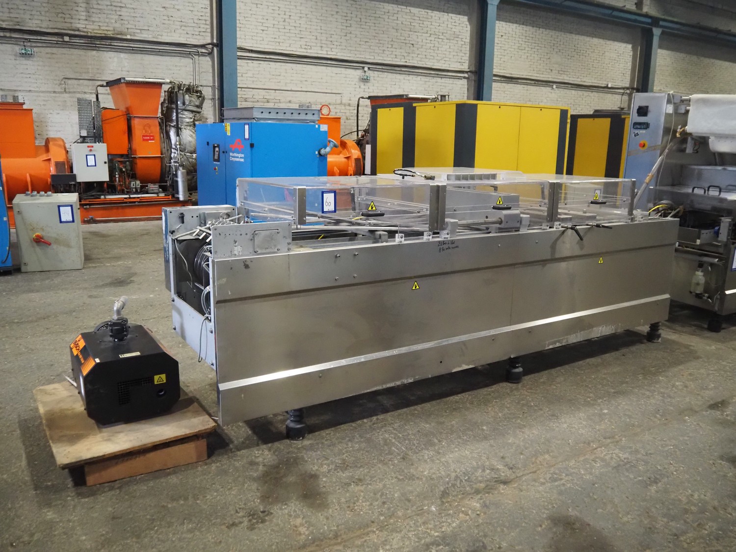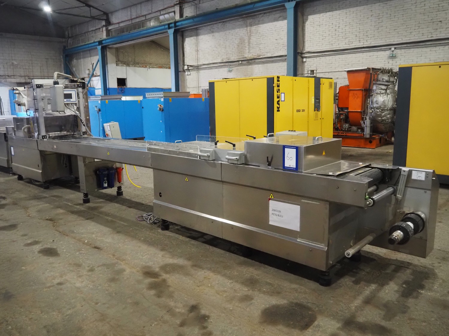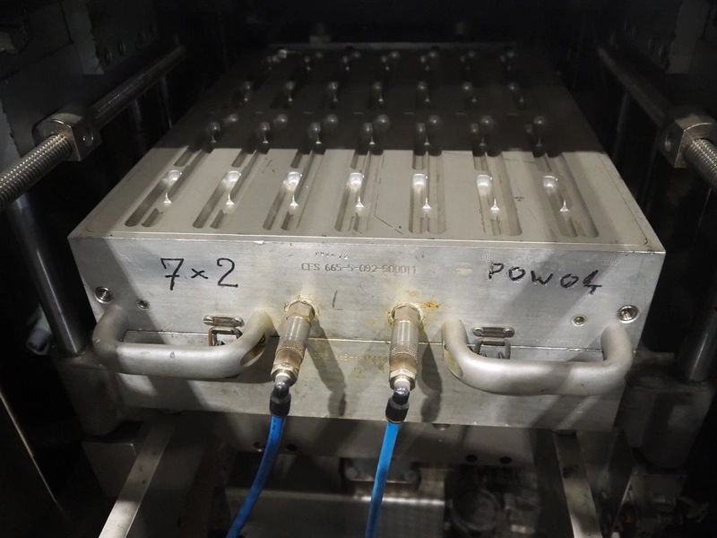 CFS thermoformer, type: 660, machine number: 665/0399, year of construction: 2004, 400 V, 3 Ph, 50 Hz, 28 A, 19 kW, dye: (14x) 230 mm x 30 mm, with Valentin label printer, type: DPM IV 107-12, total dimensions: 7600 mm x 1200 mm x 2000 mm and 3550 mm x 1000 mm x 1550 mm. Including Busch vacuum pump, type: MM 1144 AV, number: 04007839, 78 m³ per hour, and 3 pallets with parts, dye: (4x) 235 mm x 18 mm.