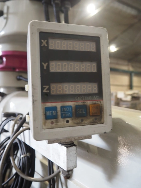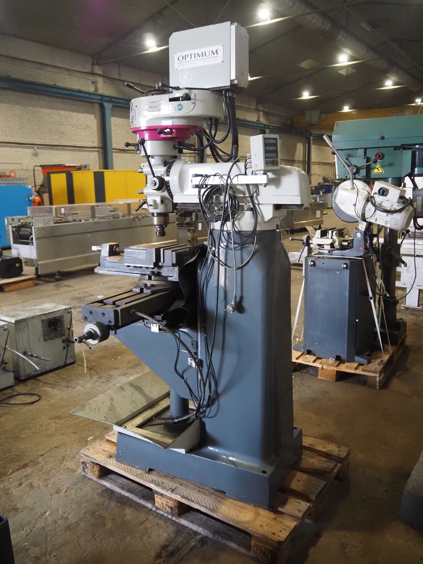 Optimum Maschinen column drill, serial number: J1101045, year of construction: 2011, 230 V, 50 Hz, 2.2 kW, weight: 930 Kg, dimensions: 1250 mm x 1100 mm x 2000 mm.