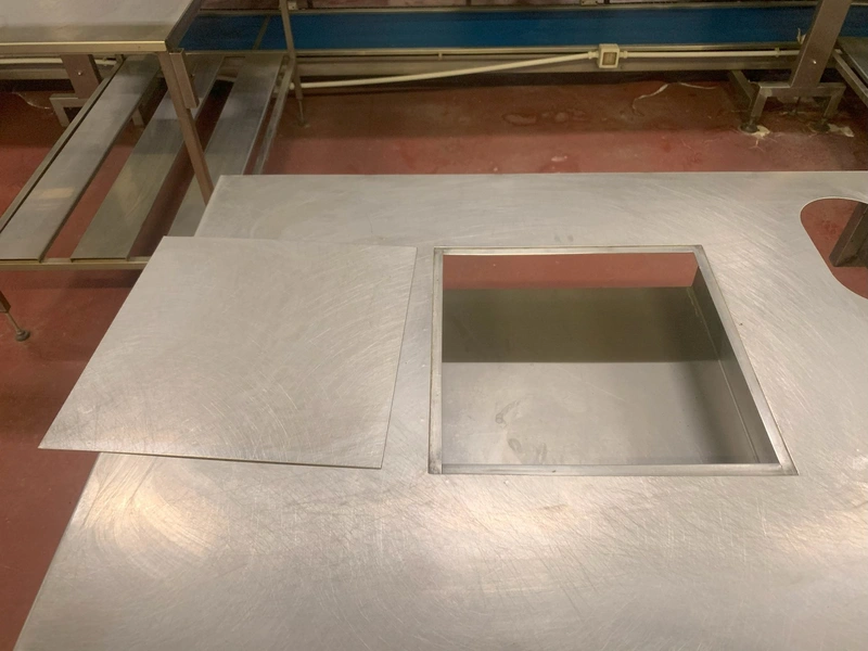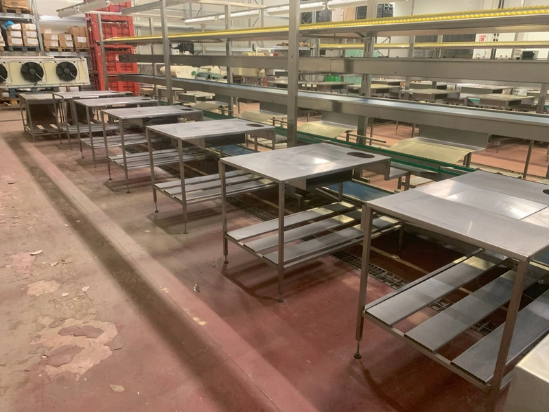 15 s/s packaging tables, dimensions: (15x) 1250 mm x 700 mm x 800 mm.