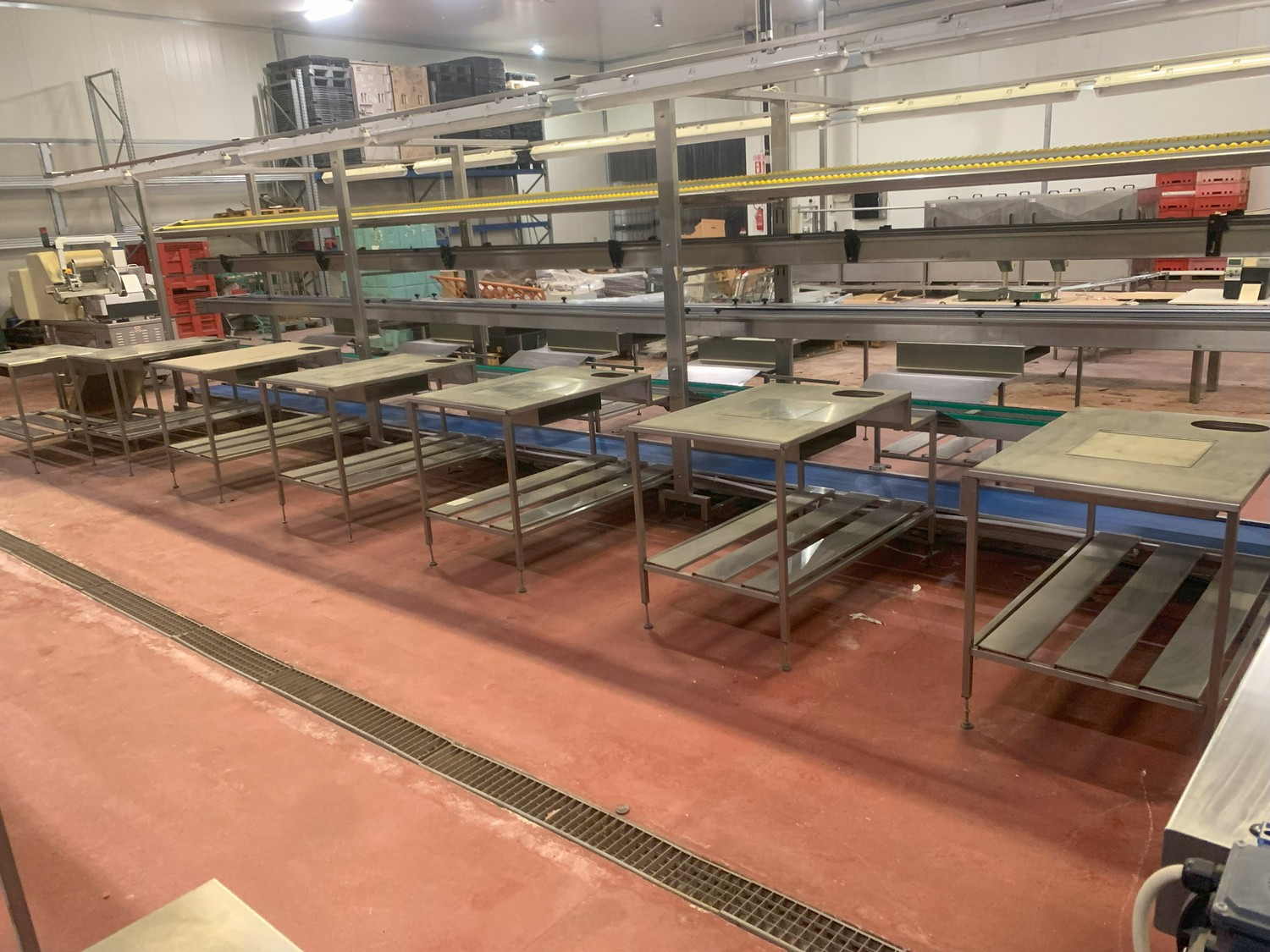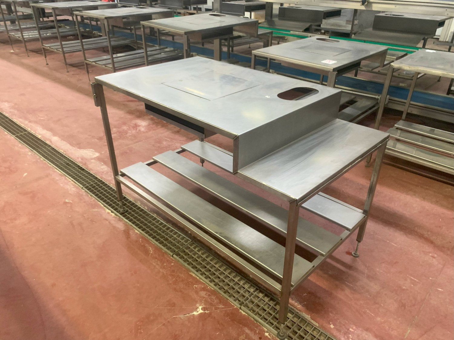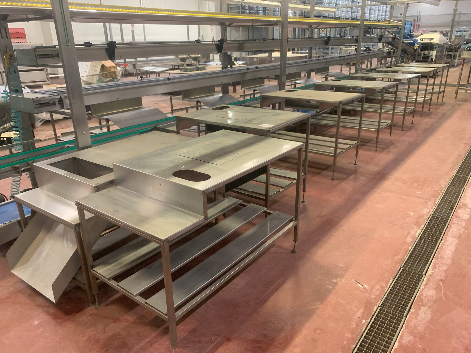 5 s/s packaging tables, dimensions: (5x) 1250 mm x 700 mm x 800 mm.