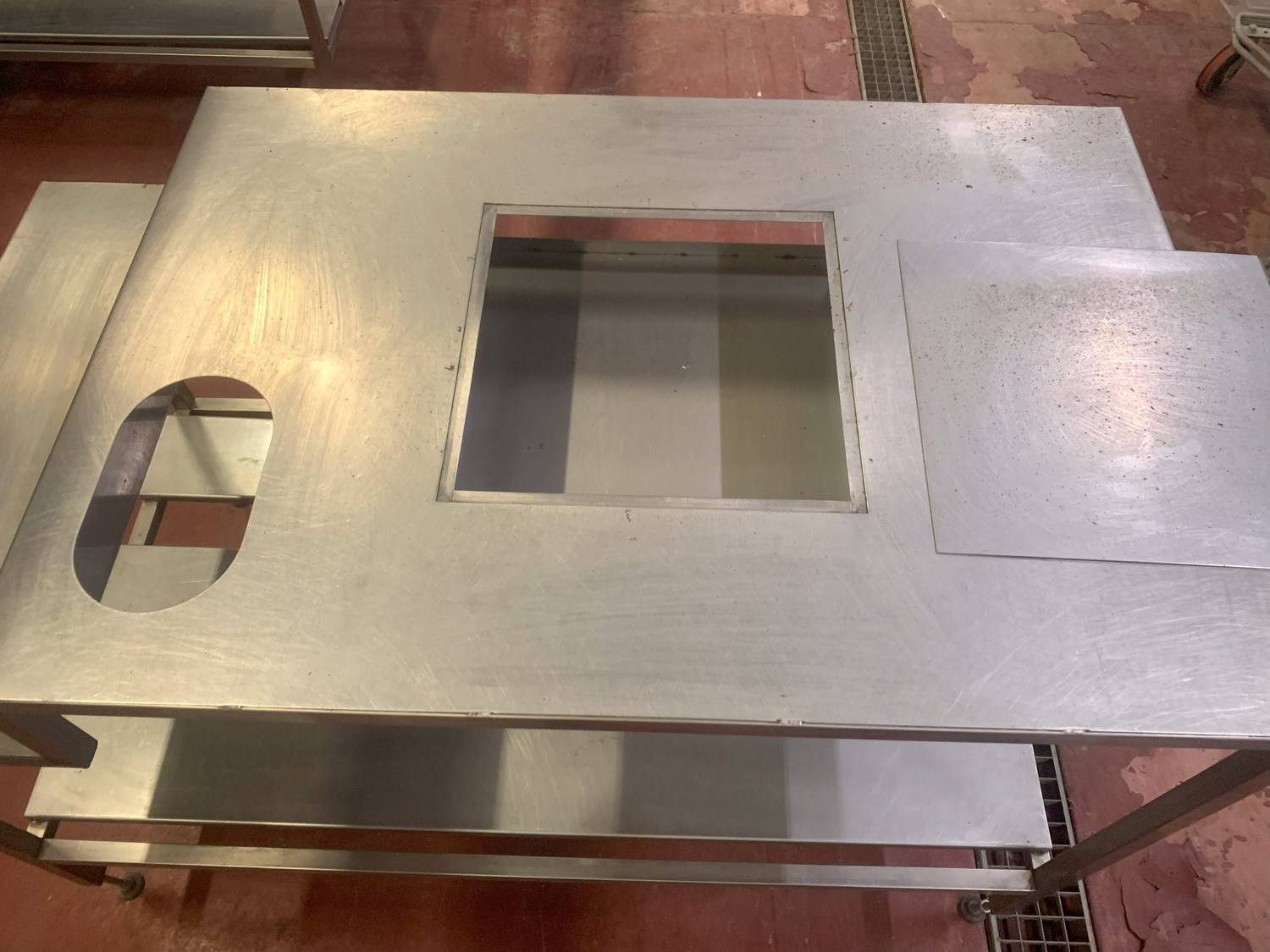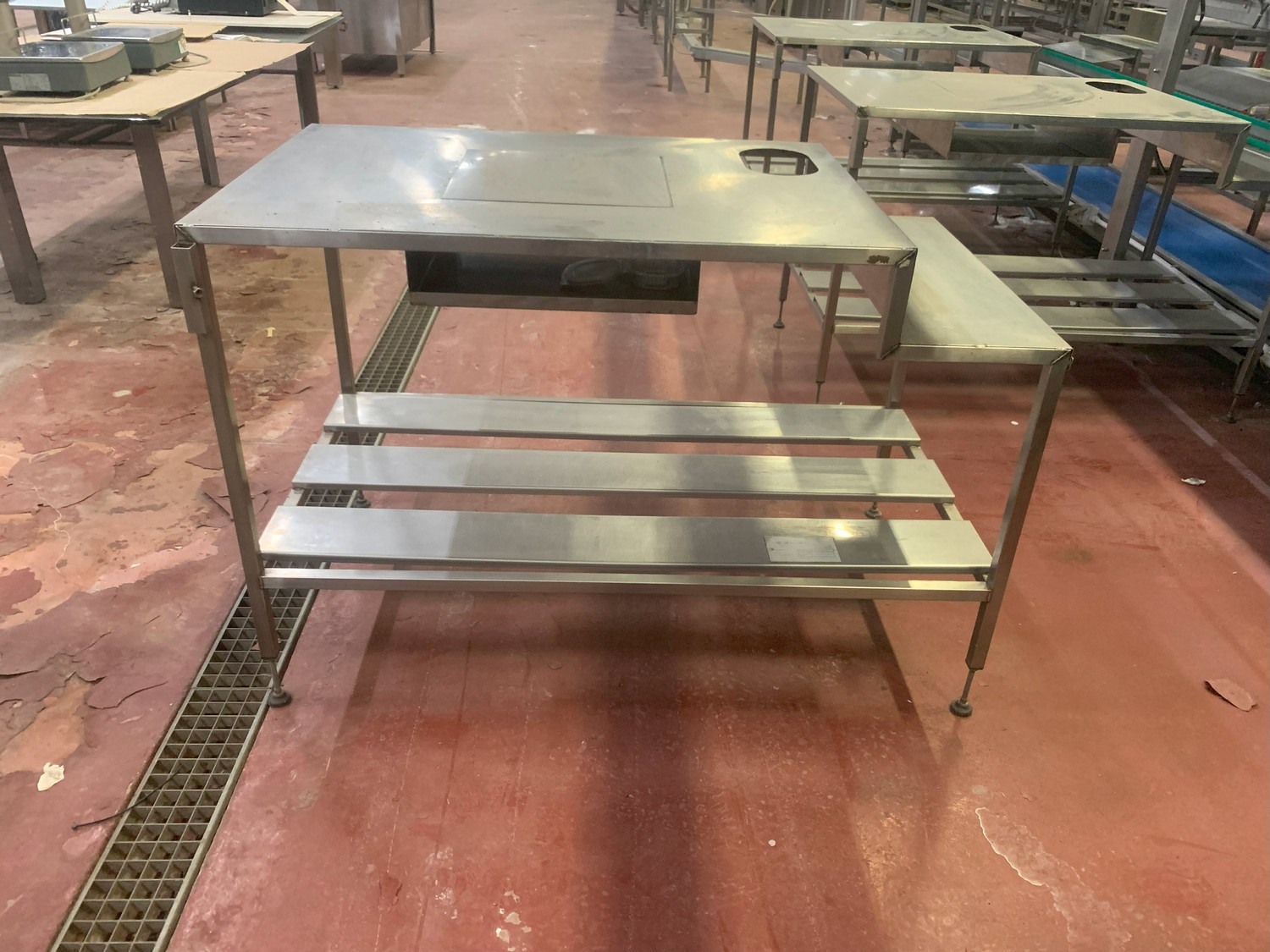 5 s/s packaging tables, dimensions: (5x) 1250 mm x 700 mm x 800 mm.