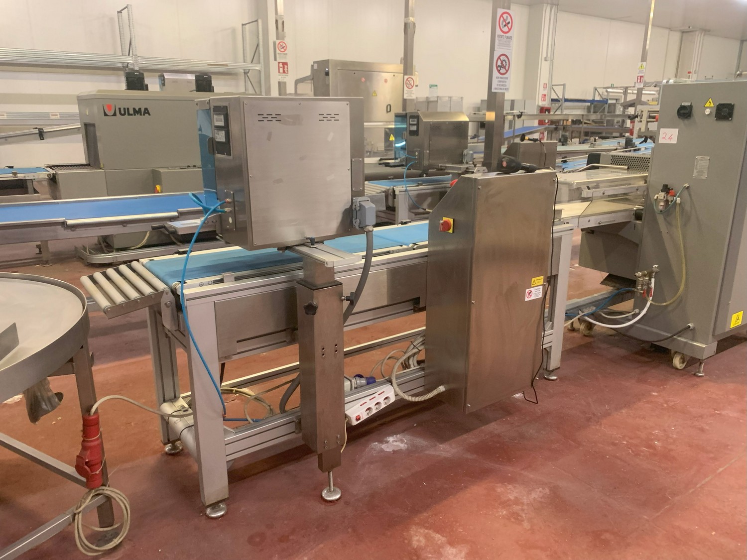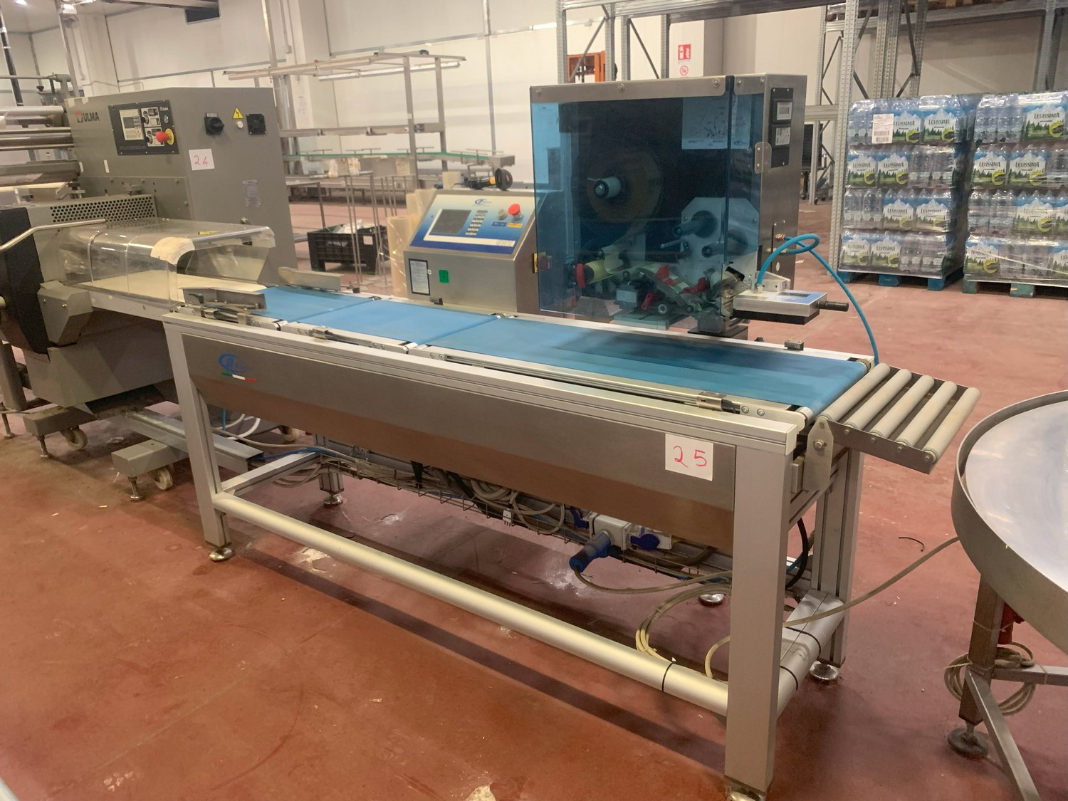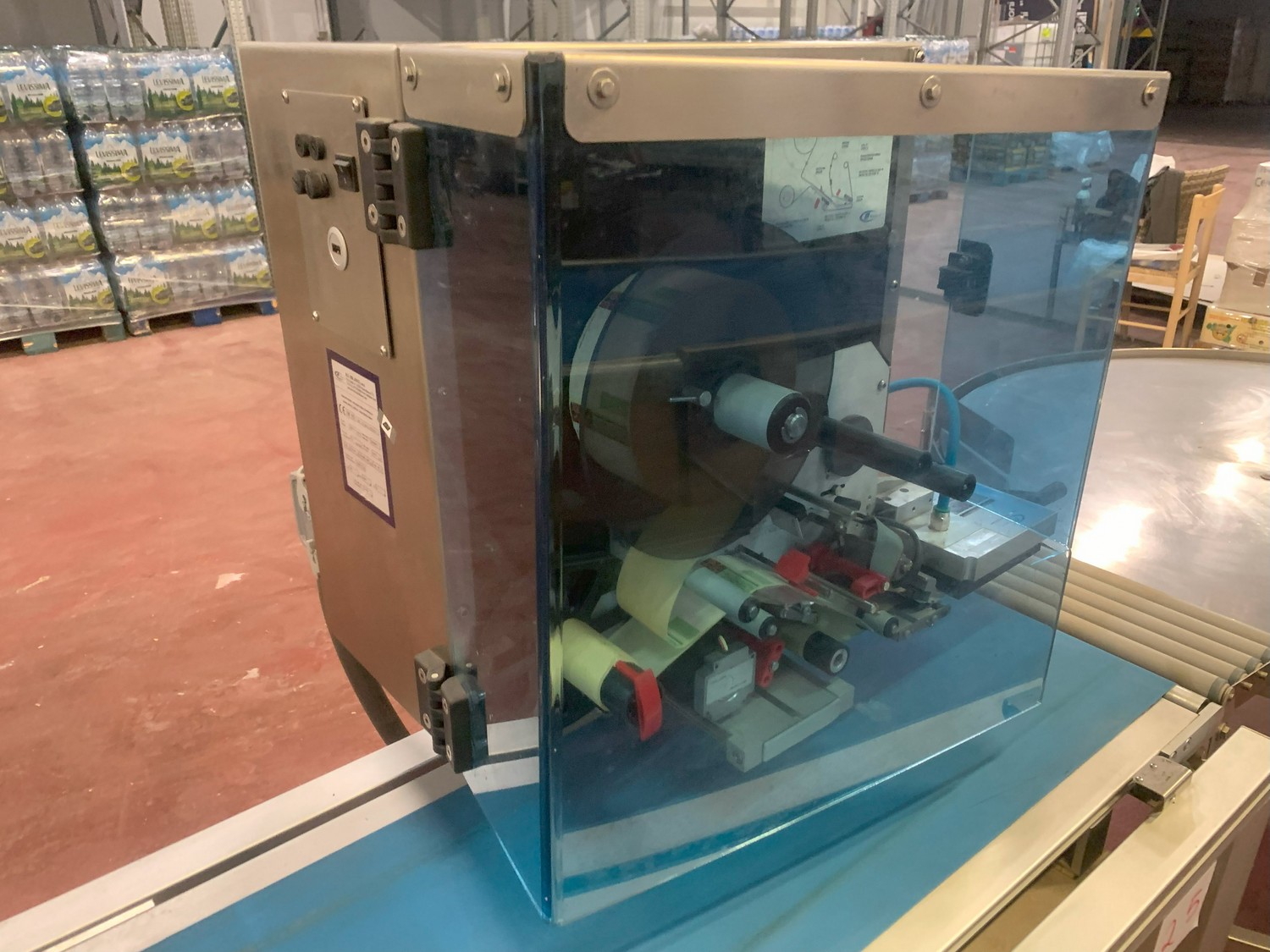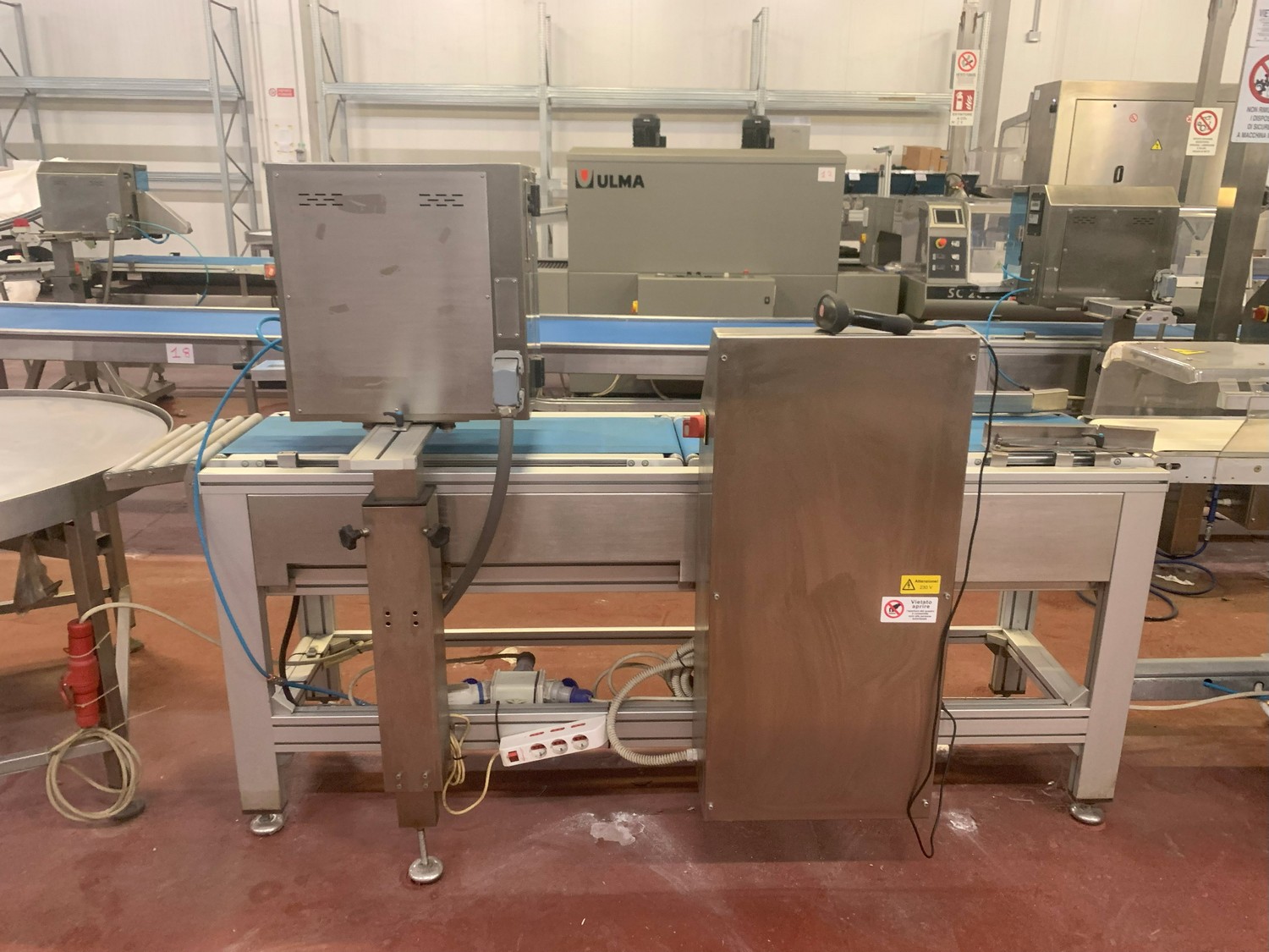 R.S. BILANCE s.n.c. weighing and labelling machine, model: GWX15A3SX, serial number: 0262015, 230 V, 50-60 Hz, minimum weight: 40 gram, maximum weight: 6000 gram, d= 2 gram, maximum rate: 55 units/min, maximum speed: 0.917 m/s, dimensions: 2250 mm x 1500 mm x 1500 mm.