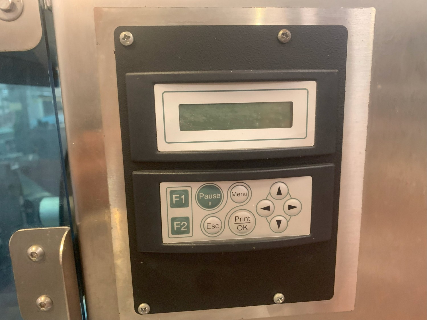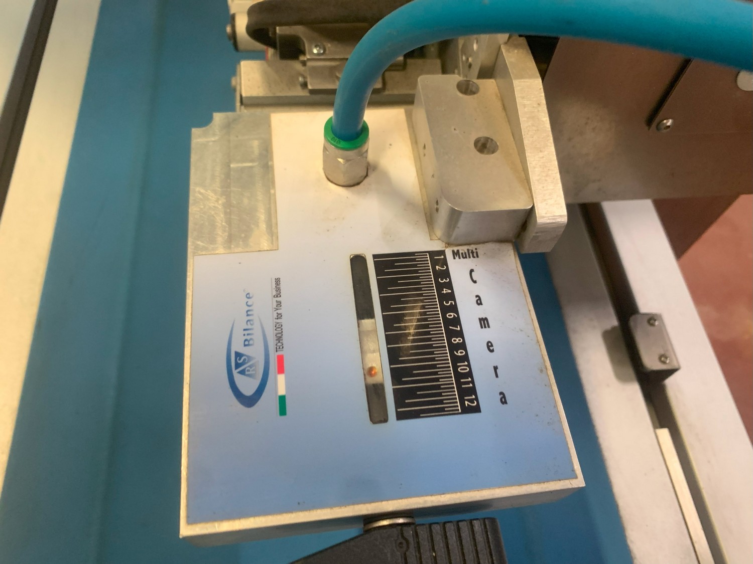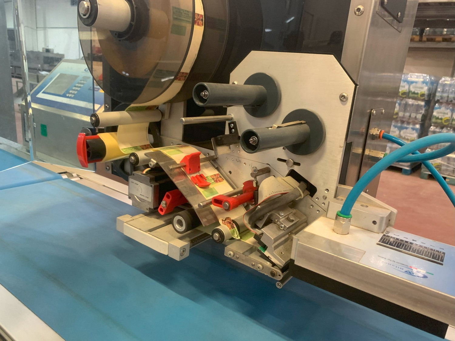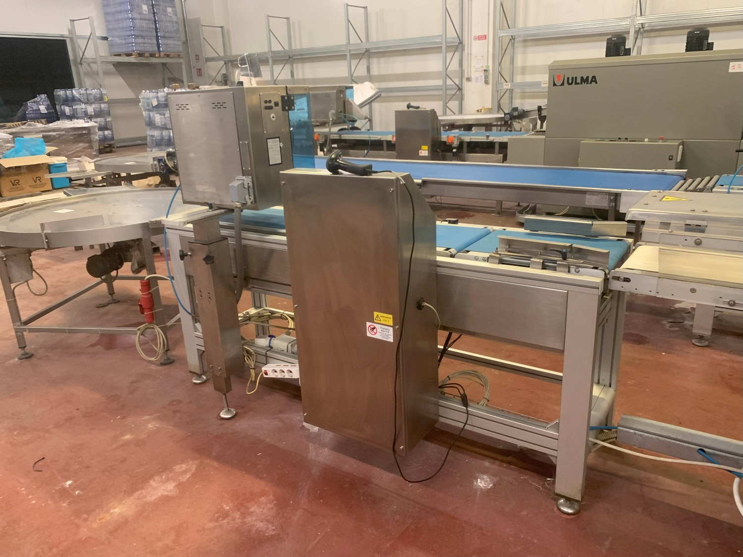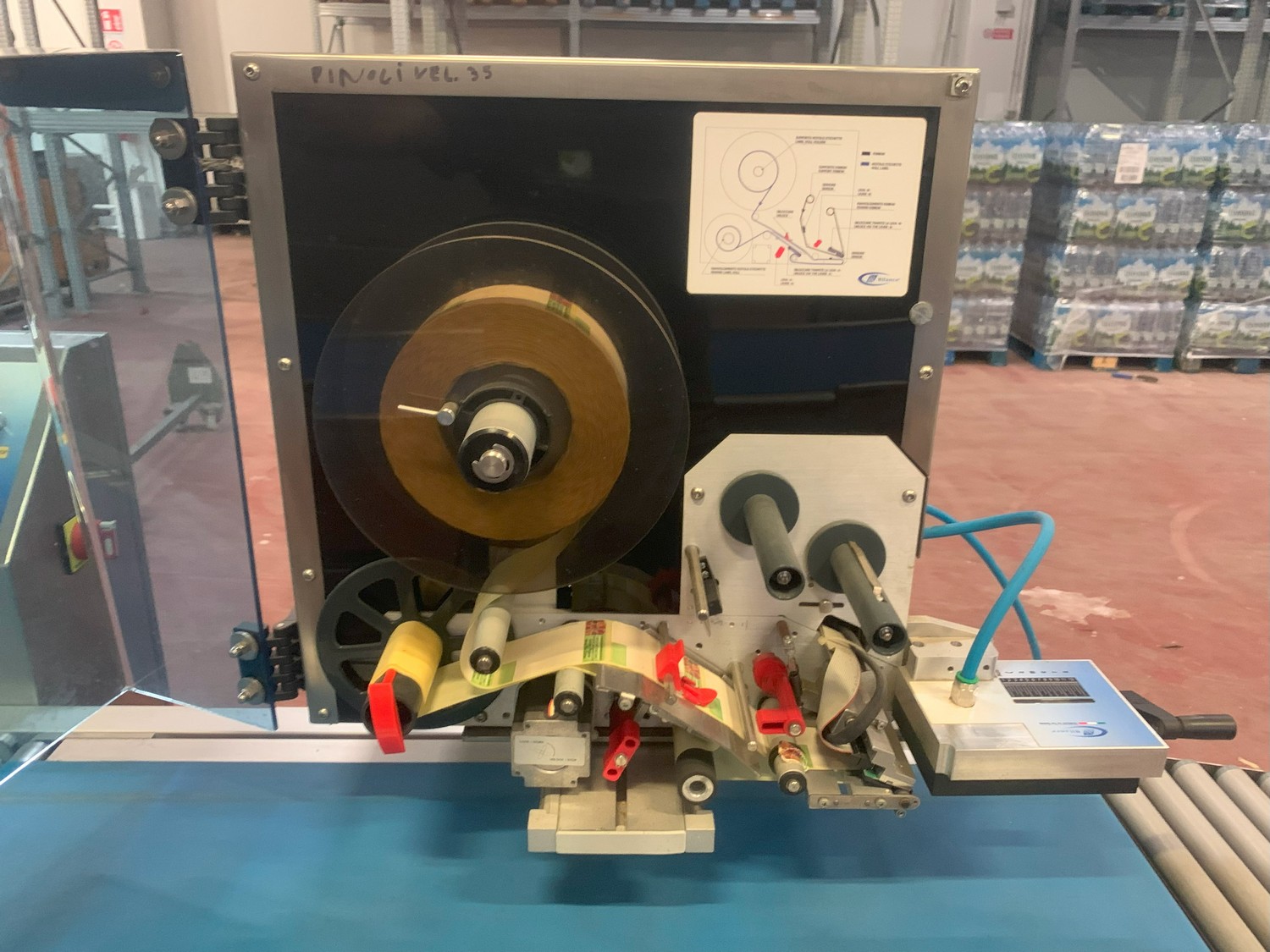 R.S. BILANCE s.n.c. weighing and labelling machine, model: GWX15A3SX, serial number: 0262015, 230 V, 50-60 Hz, minimum weight: 40 gram, maximum weight: 6000 gram, d= 2 gram, maximum rate: 55 units/min, maximum speed: 0.917 m/s, dimensions: 2250 mm x 1500 mm x 1500 mm.