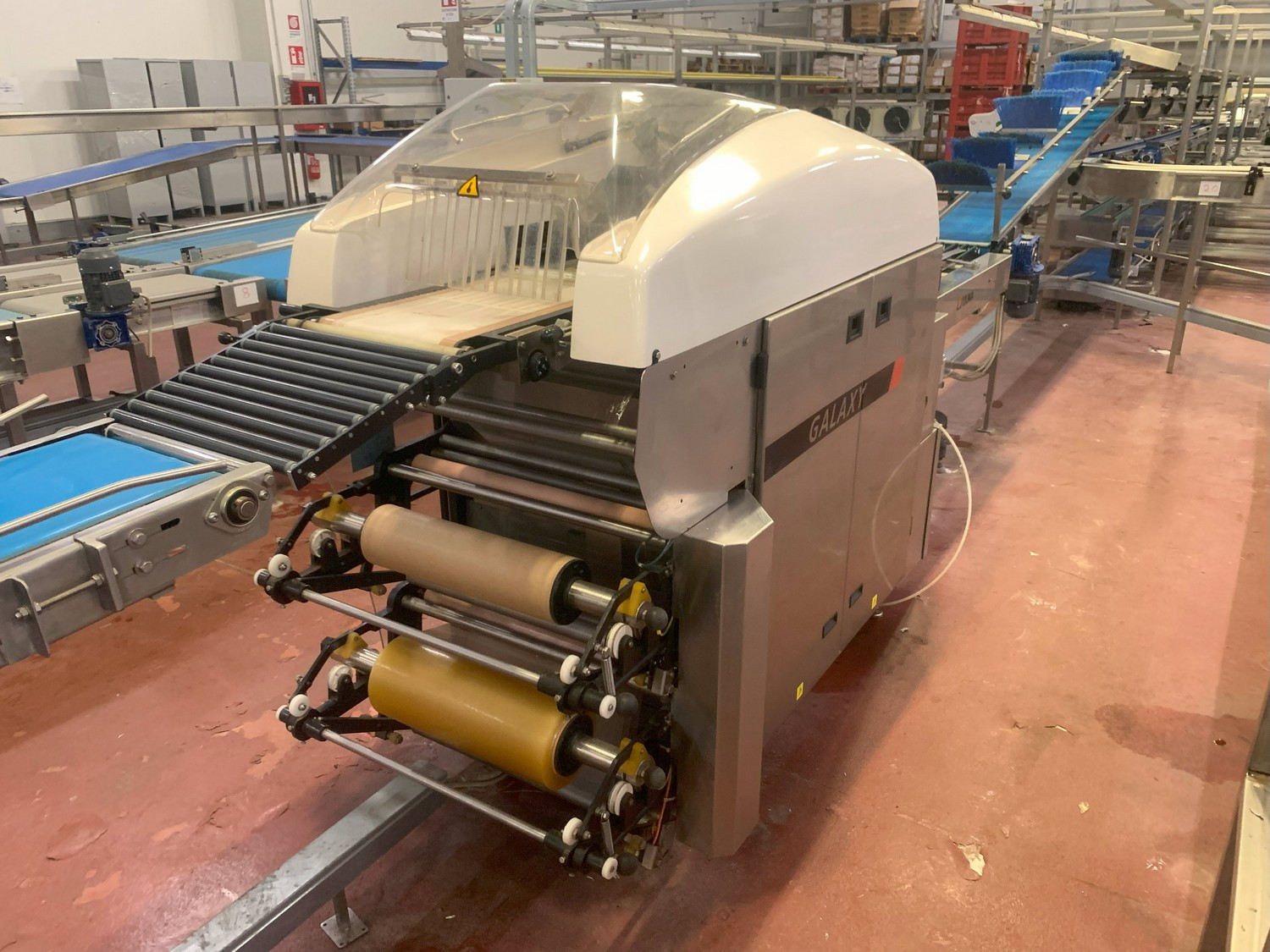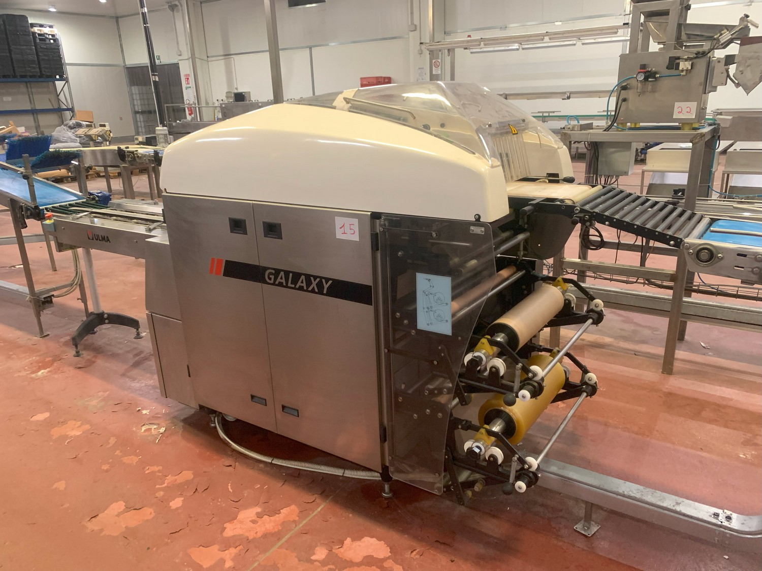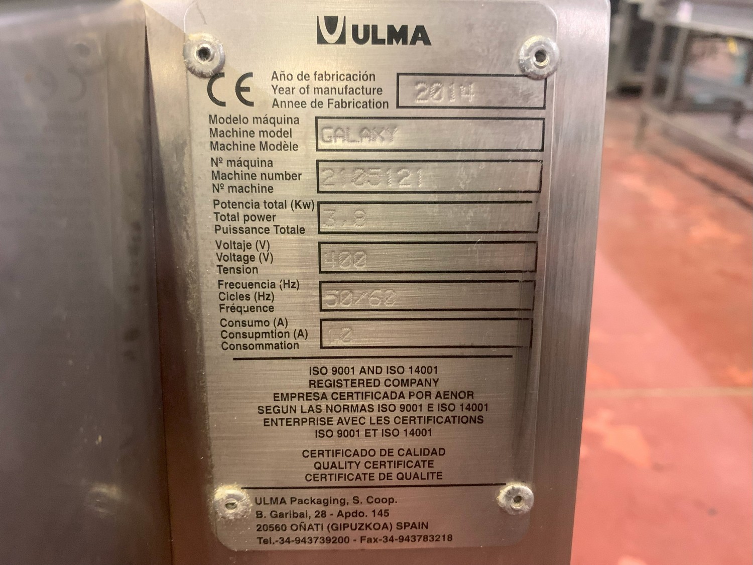 Ulma automatic stretch film wrapper, model: GALAXY, machine number: 2105121, year of construction: 2014, 400 V, 50 Hz, 3.8 kW, 10 A, dimensions: 3700 mm x 900 mm x 1650 mm.