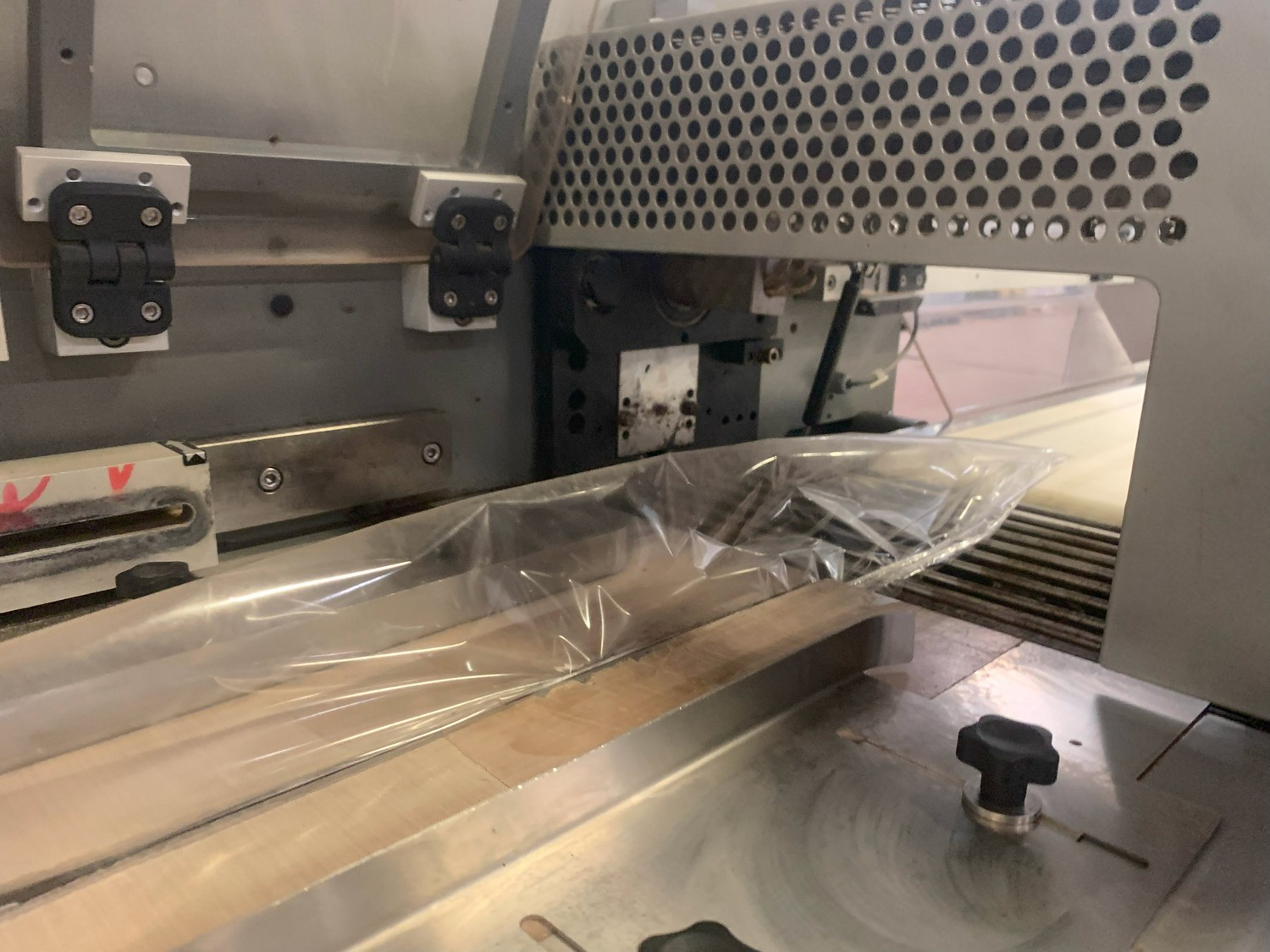 Ulma horizontal flow pack wrapper, model: FLORIDA E, machine number: 141976, year of construction: 2015, 400 V, 50 Hz, 4.7 kW, 7 A, dimensions: 3250 mm x 1250 mm x 1700 mm.