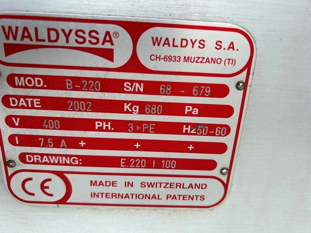 WALDYS S.A. automatic stretch film wrapper, model: B-220, serial number: 68-679, year of construction: 2002, 400 V, 3 Ph, 50-60 Hz, 7.5 A, dimensions: 2700 mm x 1500 mm x 1500 mm.