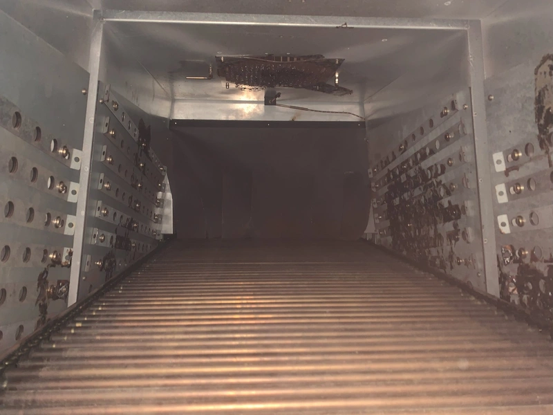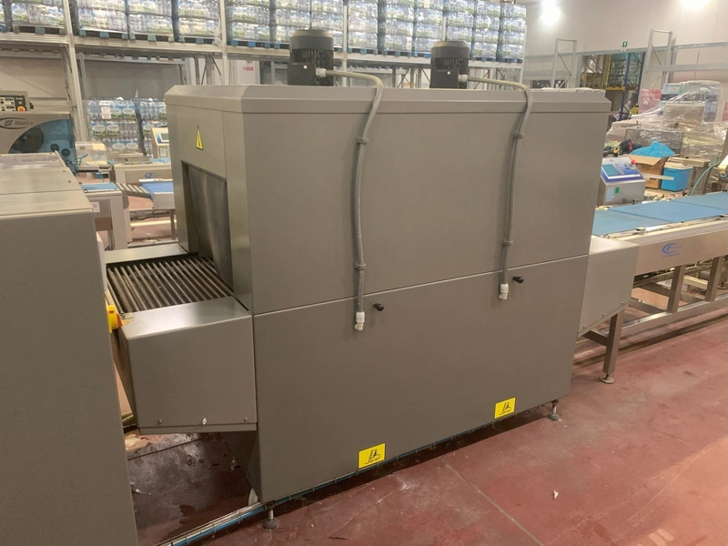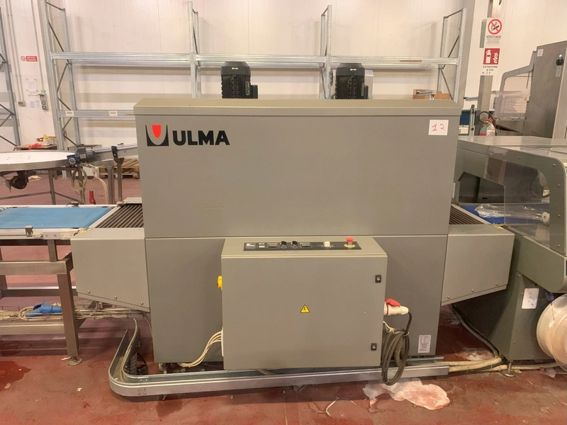 Ulma shrink tunnel, model: TR 65x150 H400, machine number: 4515164, year of construction: 2015, 400 V, 50 Hz, 36 kW, 52.7 A, dimensions: 2450 mm x 1450 mm x 1850 mm.