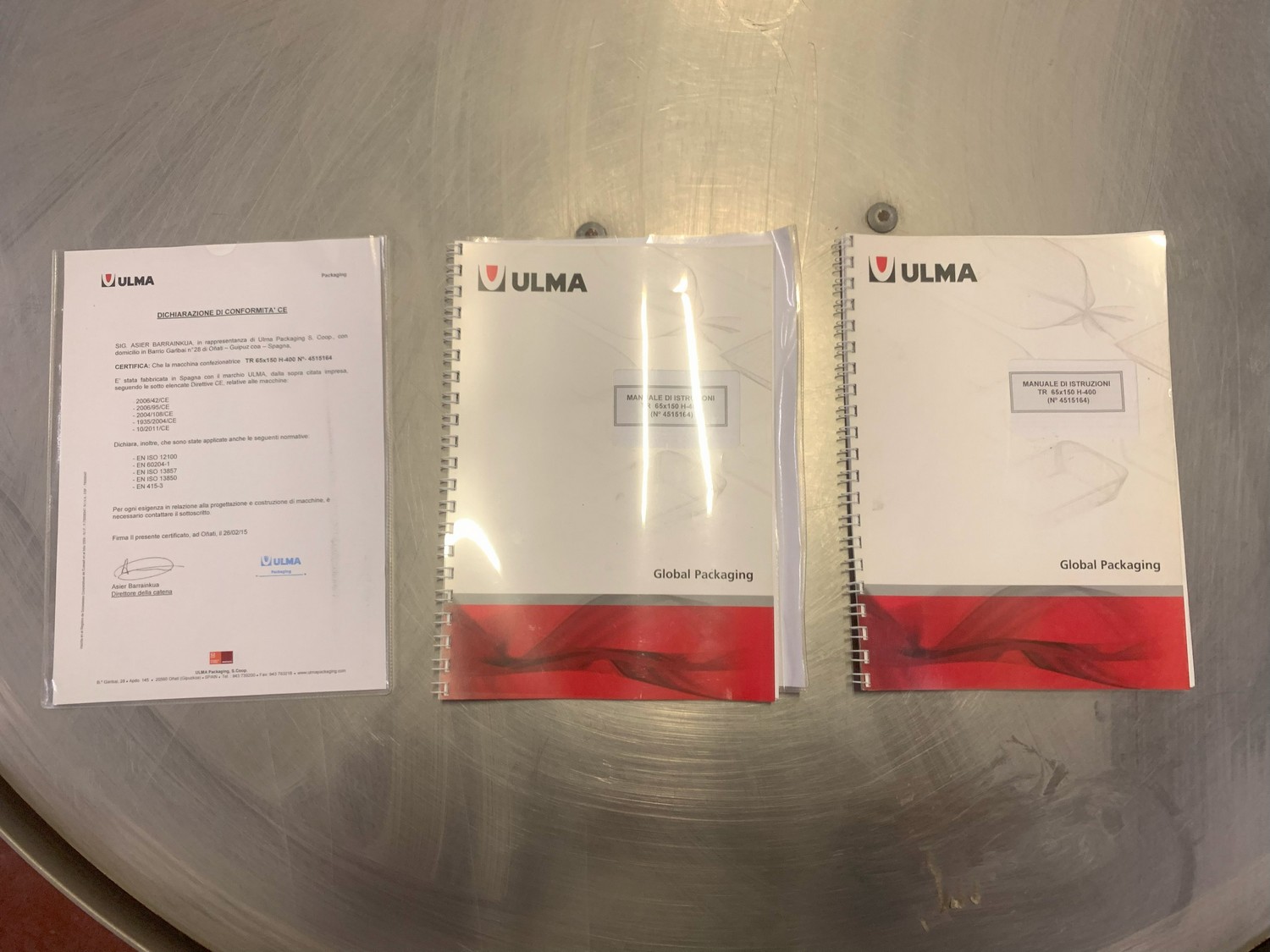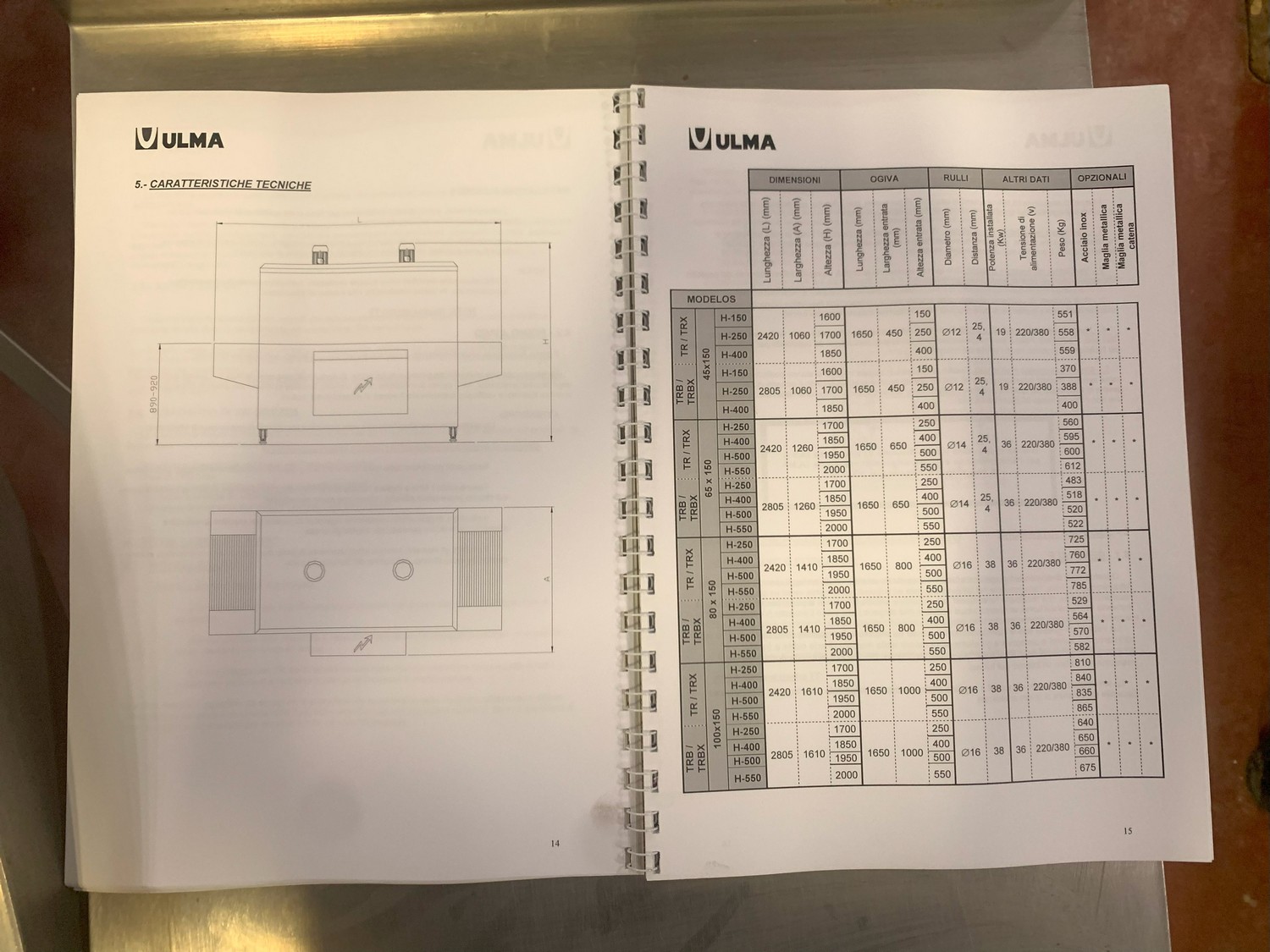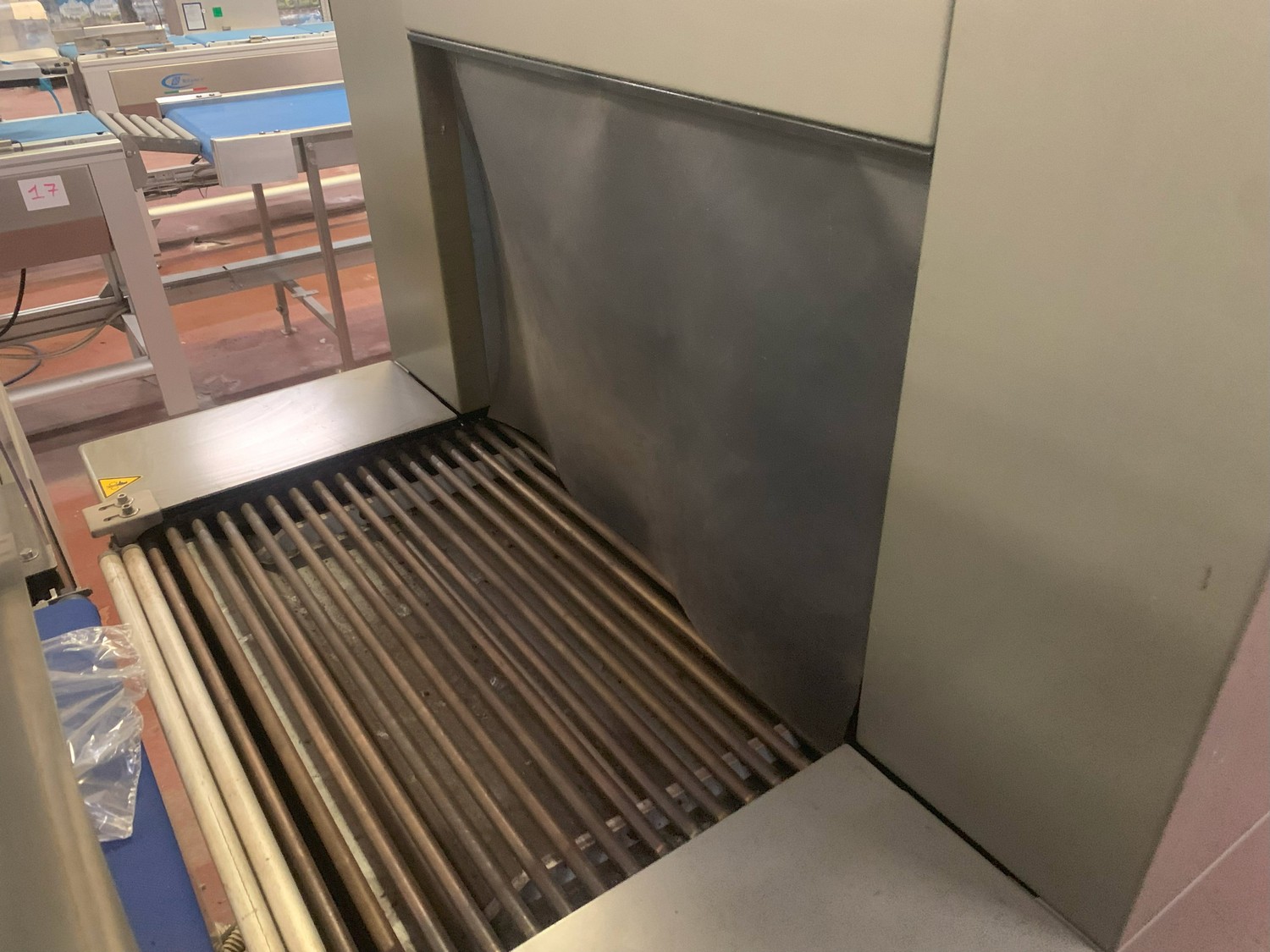 Ulma shrink tunnel, model: TR 65x150 H400, machine number: 4515164, year of construction: 2015, 400 V, 50 Hz, 36 kW, 52.7 A, dimensions: 2450 mm x 1450 mm x 1850 mm.